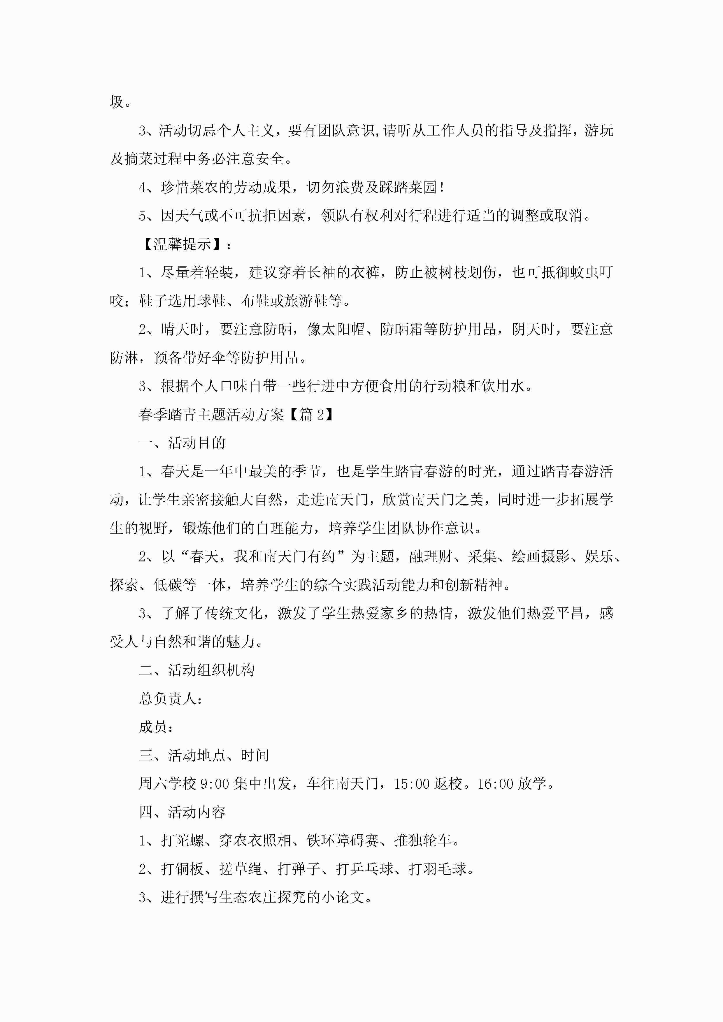 春季踏青主题活动方案(精选9篇)jugei3月23日 01:51发布关注296 春季踏青主题活动方案(精选9篇)此内容为付费资源,请付费后查看¥10.9 单篇文档限时特惠¥15个人会员开通企业会员开通立即下载无需登陆!可直接快捷下载单个模板付费资源© 版权声明THE ENDWord模板# 实用文档# 策划书# 策划方案# 春季踏青主题活动方案 如有问题,可点击最底部“联系我们”联系客服 分享QQ空间微博QQ好友海报分享复制链接收藏