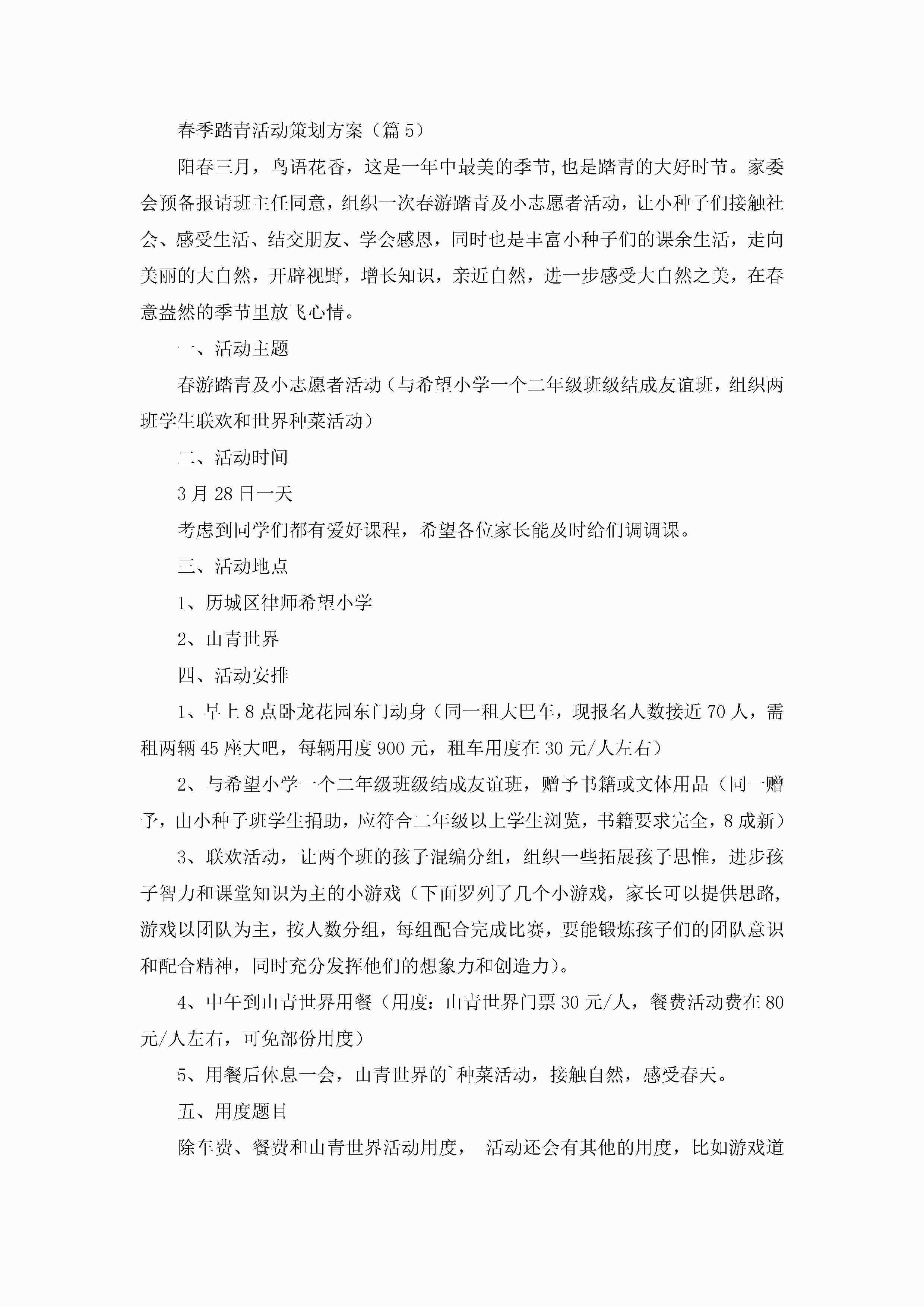 春季踏青活动策划方案精选(10篇)jugei3月23日 01:51发布关注452 春季踏青活动策划方案精选(10篇)此内容为付费资源,请付费后查看¥10.9 单篇文档限时特惠¥15个人会员开通企业会员开通立即下载无需登陆!可直接快捷下载单个模板付费资源© 版权声明THE ENDWord模板# 实用文档# 策划书# 策划方案# 春季踏青活动策划方案10篇 如有问题,可点击最底部“联系我们”联系客服 分享QQ空间微博QQ好友海报分享复制链接收藏