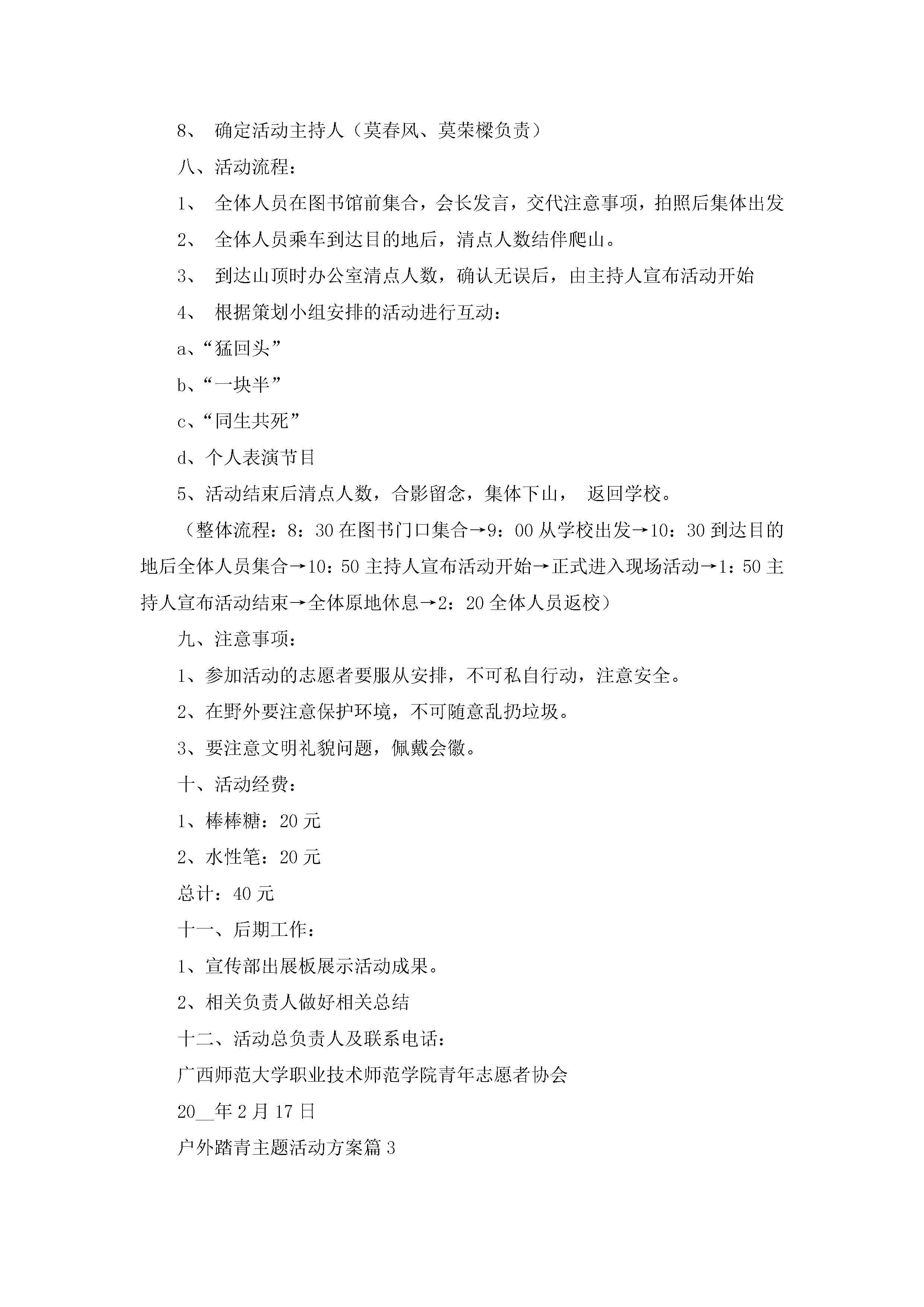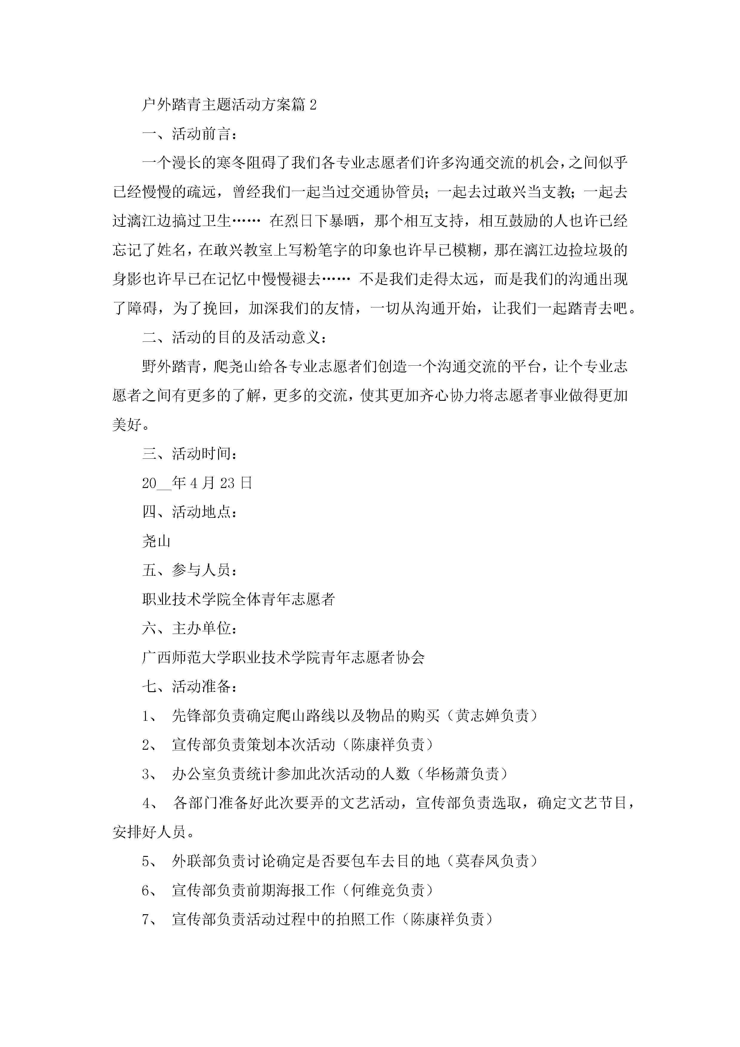 户外踏青主题活动方案(10篇精选)jugei3月23日 01:51发布关注232 户外踏青主题活动方案(10篇精选)此内容为付费资源,请付费后查看¥10.9 单篇文档限时特惠¥15个人会员开通企业会员开通立即下载无需登陆!可直接快捷下载单个模板付费资源© 版权声明THE ENDWord模板# 实用文档# 策划书# 策划方案# 户外踏青主题活动方案10篇 如有问题,可点击最底部“联系我们”联系客服 分享QQ空间微博QQ好友海报分享复制链接收藏