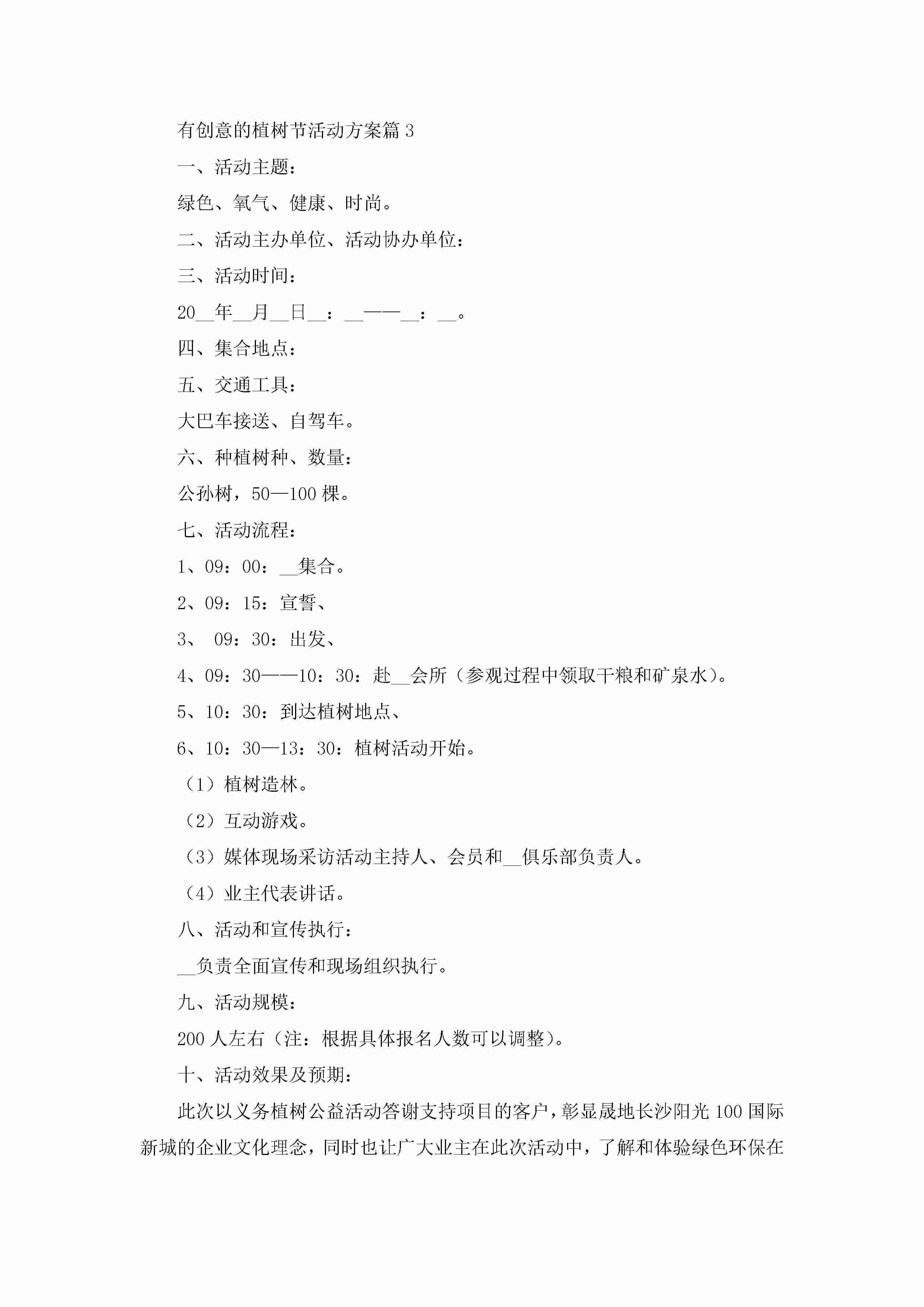 有创意的植树节活动方案(11篇)jugei3月23日 01:51发布关注256 有创意的植树节活动方案(11篇)此内容为付费资源,请付费后查看¥10.9 单篇文档限时特惠¥15个人会员开通企业会员开通立即下载无需登陆!可直接快捷下载单个模板付费资源© 版权声明THE ENDWord模板# 实用文档# 策划书# 策划方案# 有创意的植树节活动方案11篇 如有问题,可点击最底部“联系我们”联系客服 分享QQ空间微博QQ好友海报分享复制链接收藏