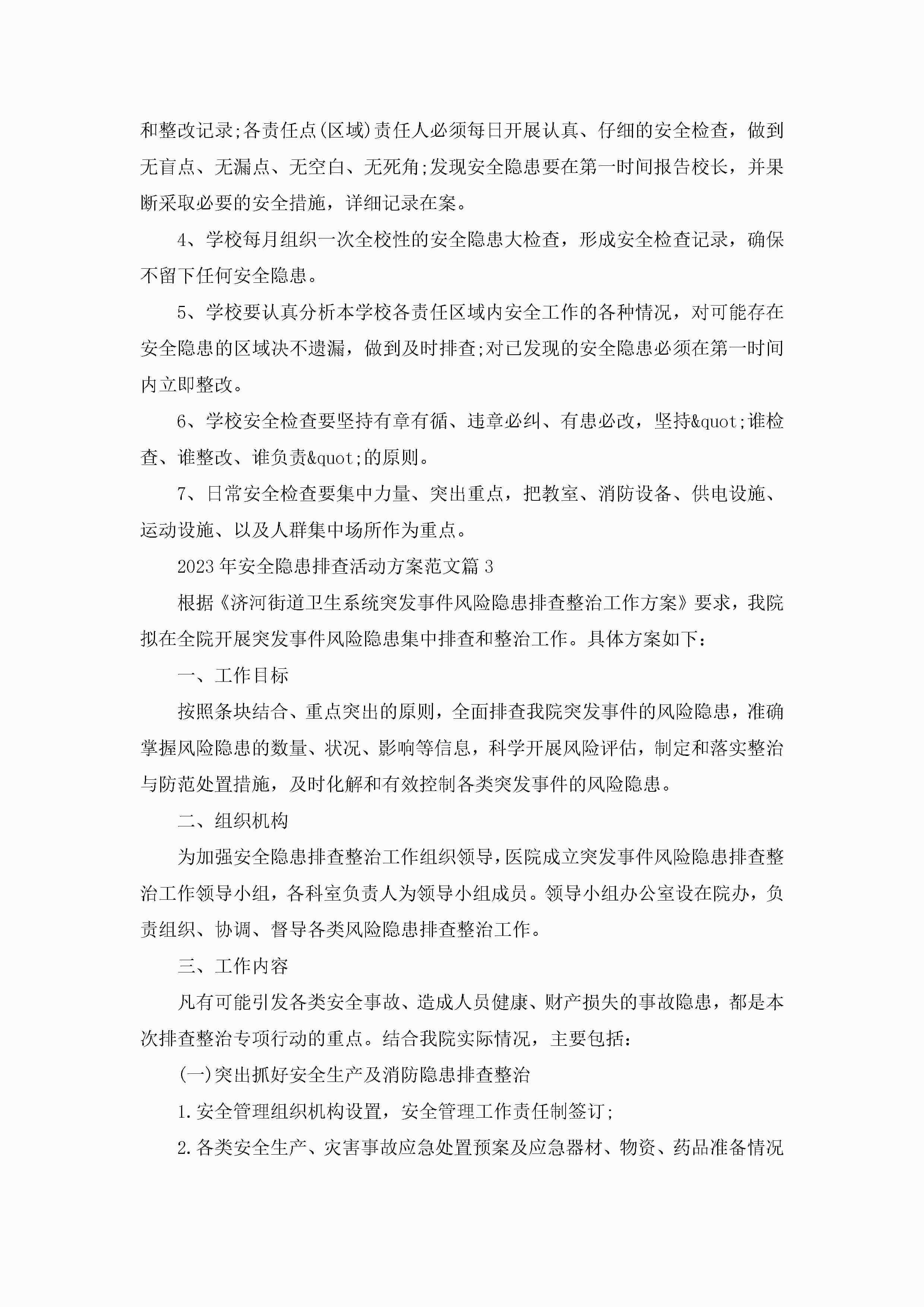 关于2023年安全隐患排查活动方案范文(10篇)jugei3月23日 01:51发布关注263 关于2023年安全隐患排查活动方案范文(10篇)此内容为付费资源,请付费后查看¥10.9 单篇文档限时特惠¥15个人会员开通企业会员开通立即下载无需登陆!可直接快捷下载单个模板付费资源© 版权声明THE ENDWord模板# 实用文档# 策划书# 策划方案# 2023年安全隐患排查活动方案范文(10篇) 如有问题,可点击最底部“联系我们”联系客服 分享QQ空间微博QQ好友海报分享复制链接收藏