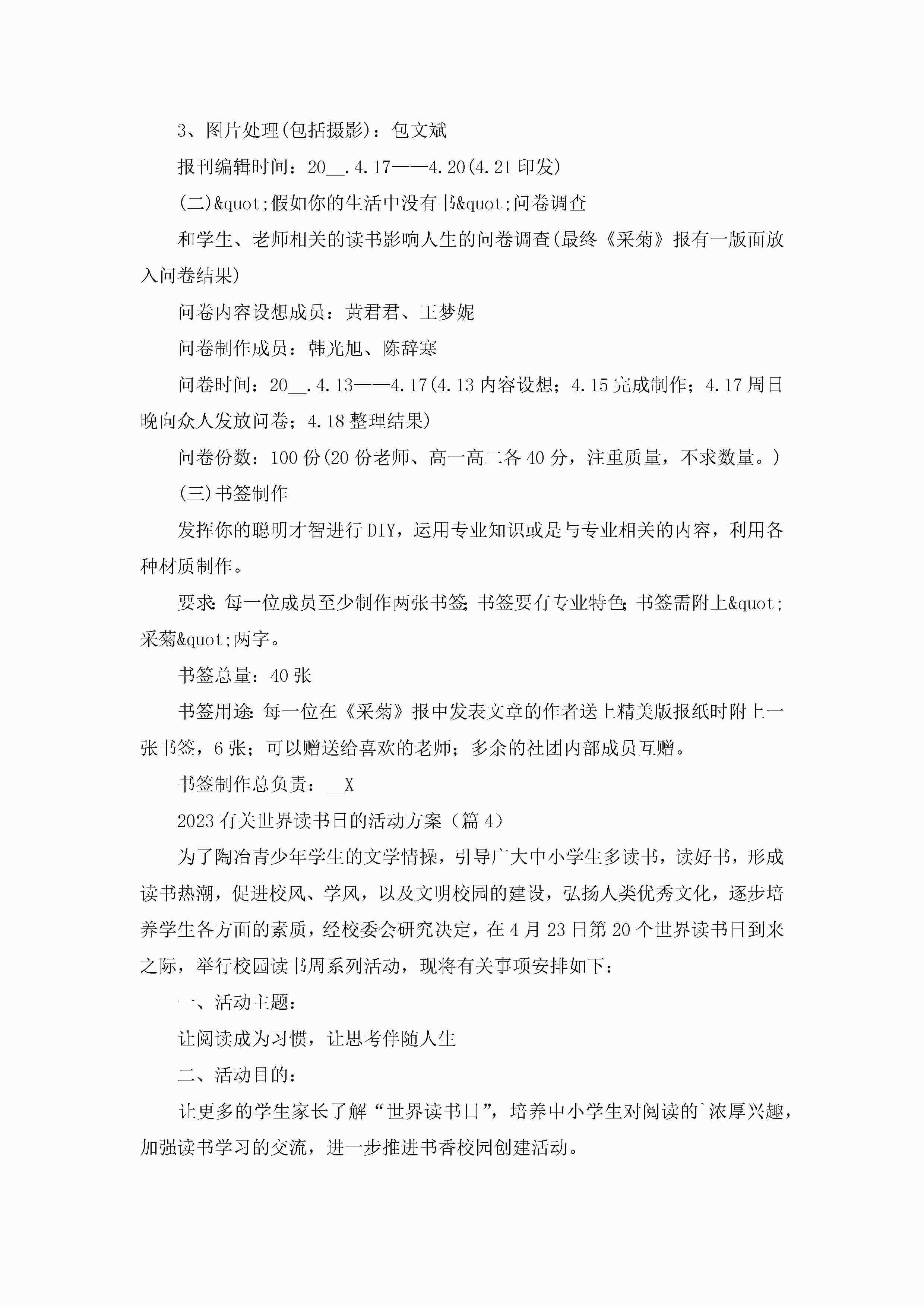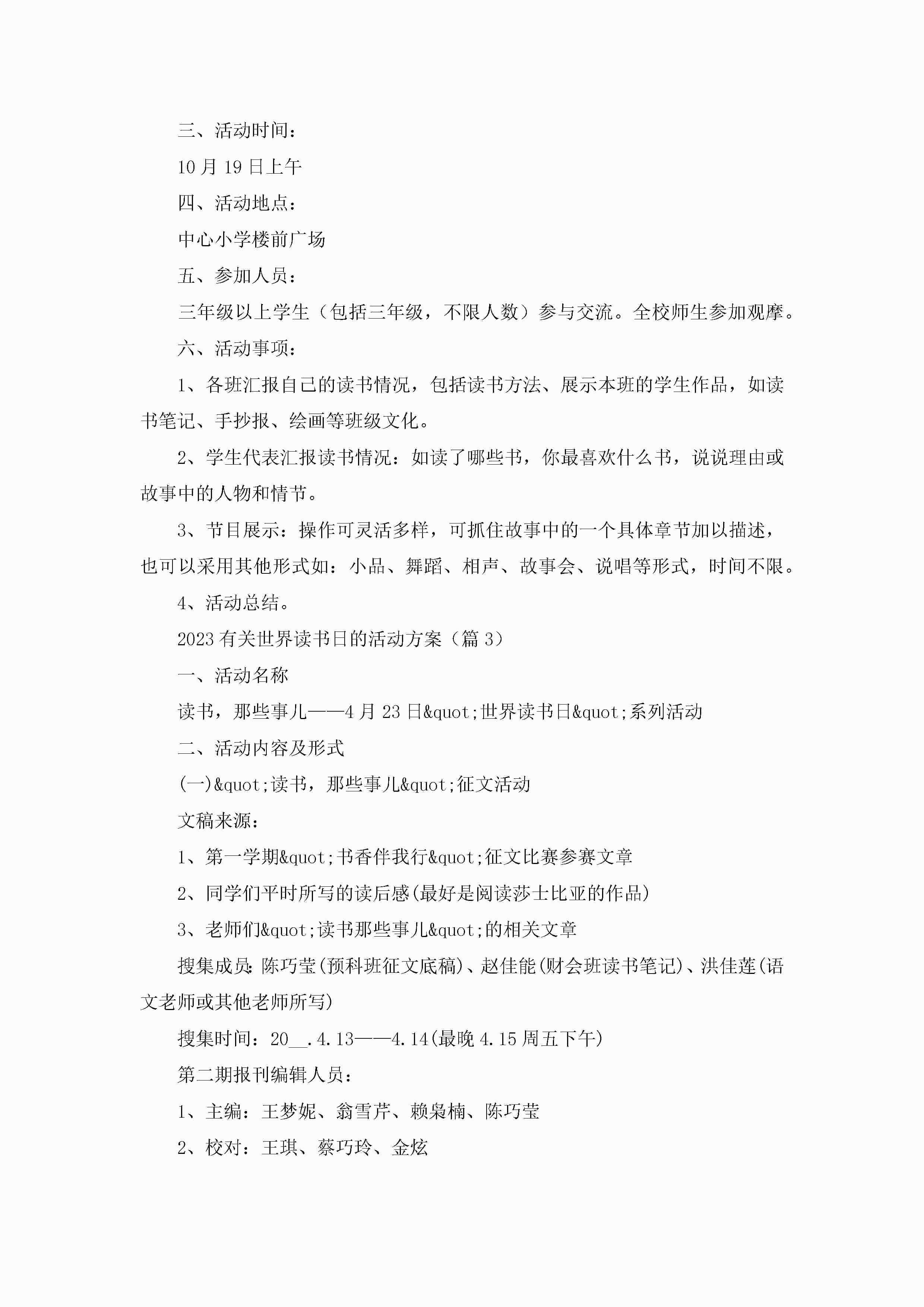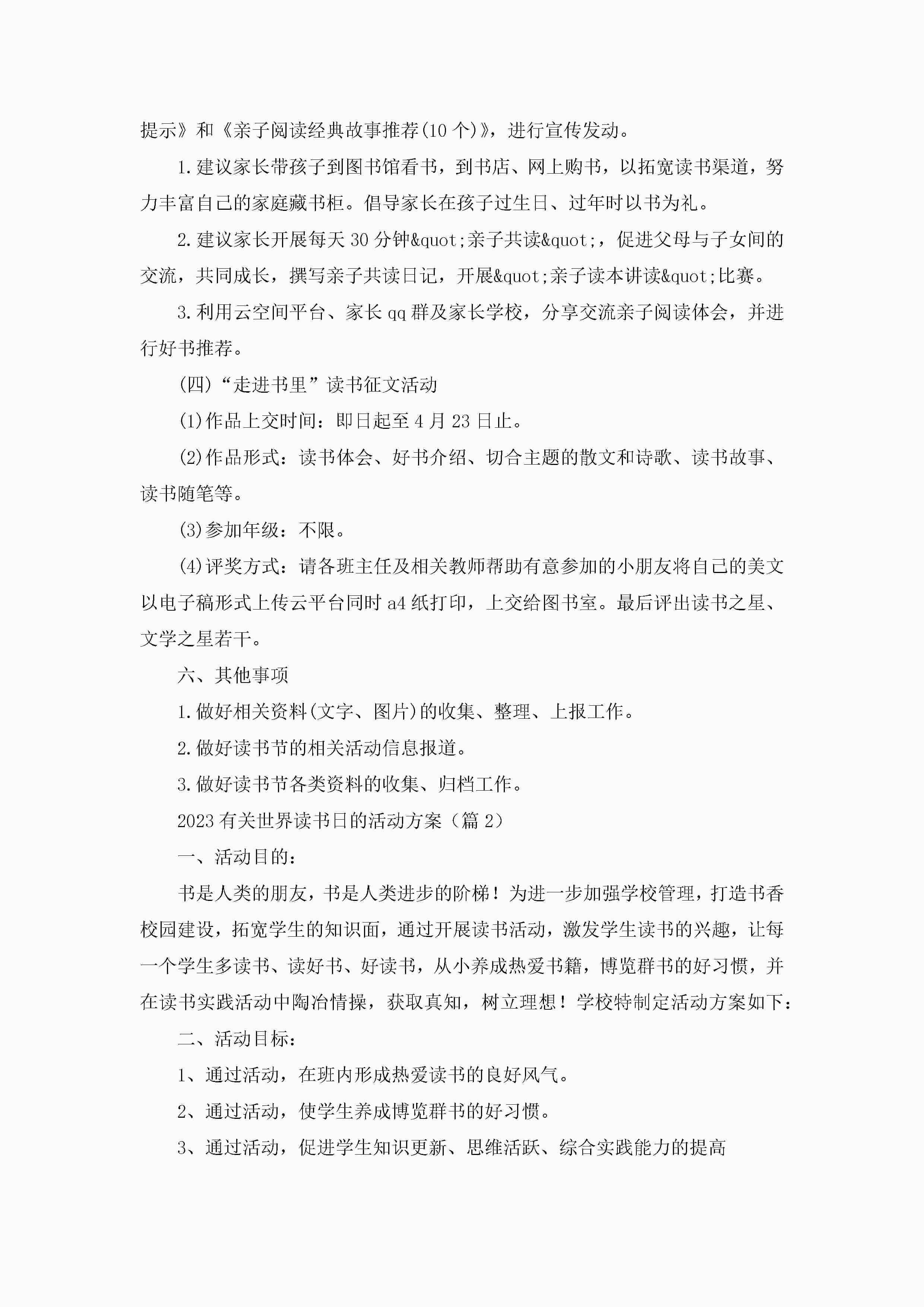 2023有关世界读书日的活动方案(通用8篇)jugei3月23日 01:51发布关注192 2023有关世界读书日的活动方案(通用8篇)此内容为付费资源,请付费后查看¥10.9 单篇文档限时特惠¥15个人会员开通企业会员开通立即下载无需登陆!可直接快捷下载单个模板付费资源© 版权声明THE ENDWord模板# 实用文档# 策划书# 策划方案# 2023有关世界读书日的活动方案 如有问题,可点击最底部“联系我们”联系客服 分享QQ空间微博QQ好友海报分享复制链接收藏
