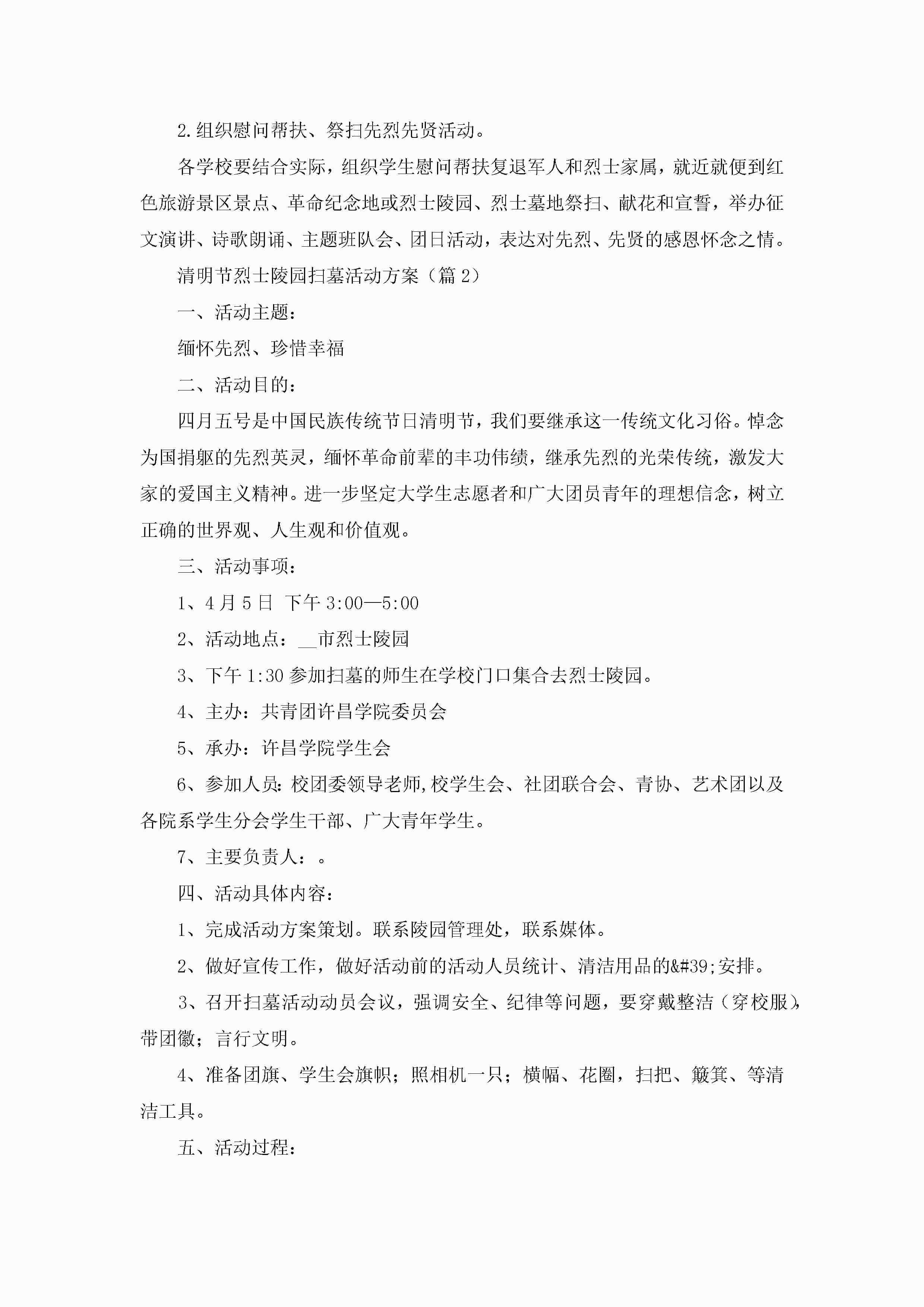 清明节烈士陵园扫墓活动方案(9篇)jugei3月23日 01:51发布关注209 清明节烈士陵园扫墓活动方案(9篇)此内容为付费资源,请付费后查看¥10.9 单篇文档限时特惠¥15个人会员开通企业会员开通立即下载无需登陆!可直接快捷下载单个模板付费资源© 版权声明THE ENDWord模板# 实用文档# 策划书# 策划方案# 清明节烈士陵园扫墓活动方案9篇 如有问题,可点击最底部“联系我们”联系客服 分享QQ空间微博QQ好友海报分享复制链接收藏