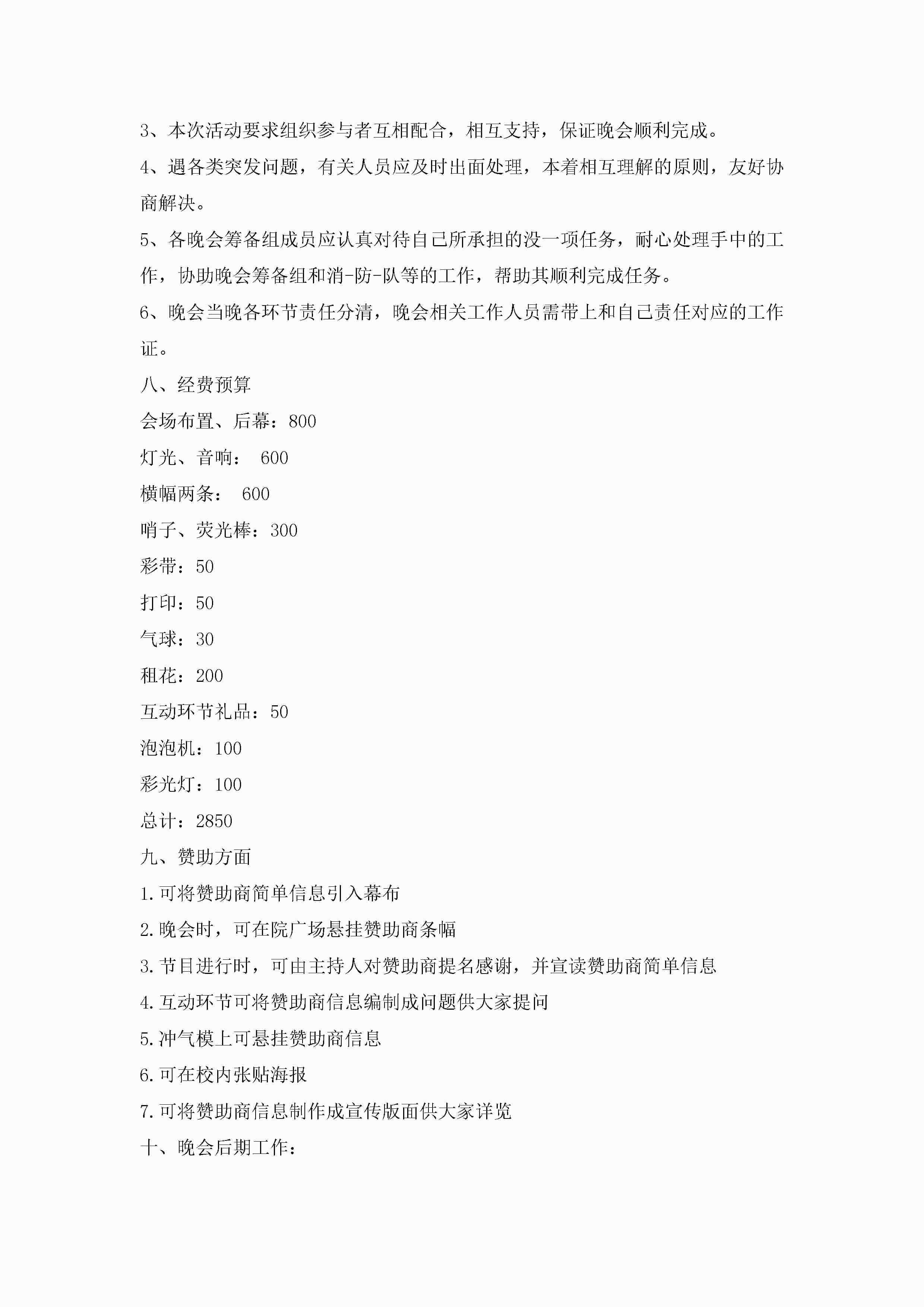 2022最新学生会文艺晚会策划书5篇jugei3月23日 01:51发布关注211 2022最新学生会文艺晚会策划书5篇此内容为付费资源,请付费后查看¥10.9 单篇文档限时特惠¥15个人会员开通企业会员开通立即下载无需登陆!可直接快捷下载单个模板付费资源© 版权声明THE ENDWord模板# 实用文档# 策划书# 工作文档# 晚会策划 如有问题,可点击最底部“联系我们”联系客服 分享QQ空间微博QQ好友海报分享复制链接收藏
