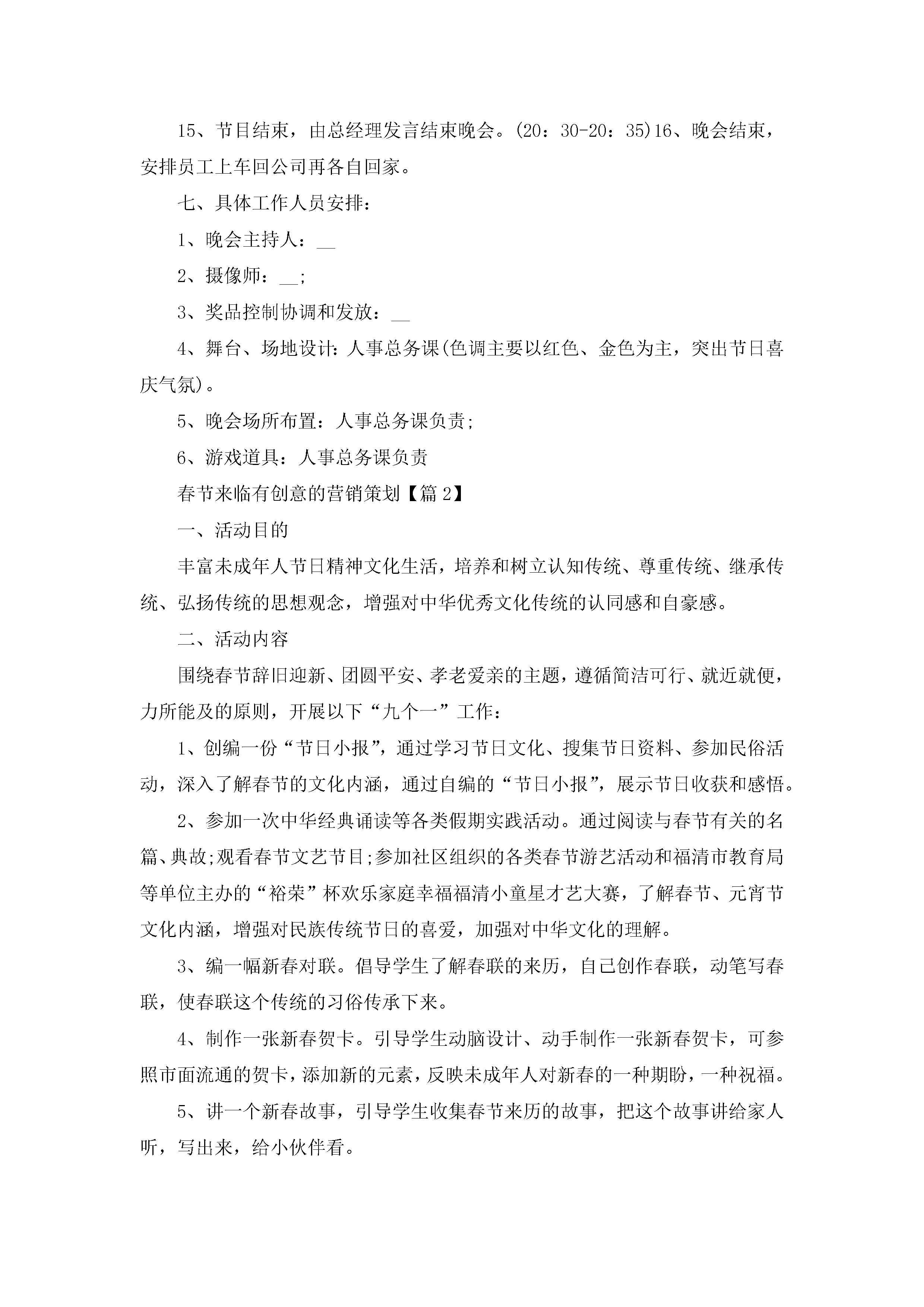 春节来临有创意的营销策划方案5篇jugei3月23日 01:51发布关注207 春节来临有创意的营销策划方案5篇此内容为付费资源,请付费后查看¥10.9 单篇文档限时特惠¥15个人会员开通企业会员开通立即下载无需登陆!可直接快捷下载单个模板付费资源© 版权声明THE ENDWord模板# 实用文档# 策划书# 营销策划# 春节来临有创意的营销策划 如有问题,可点击最底部“联系我们”联系客服 分享QQ空间微博QQ好友海报分享复制链接收藏