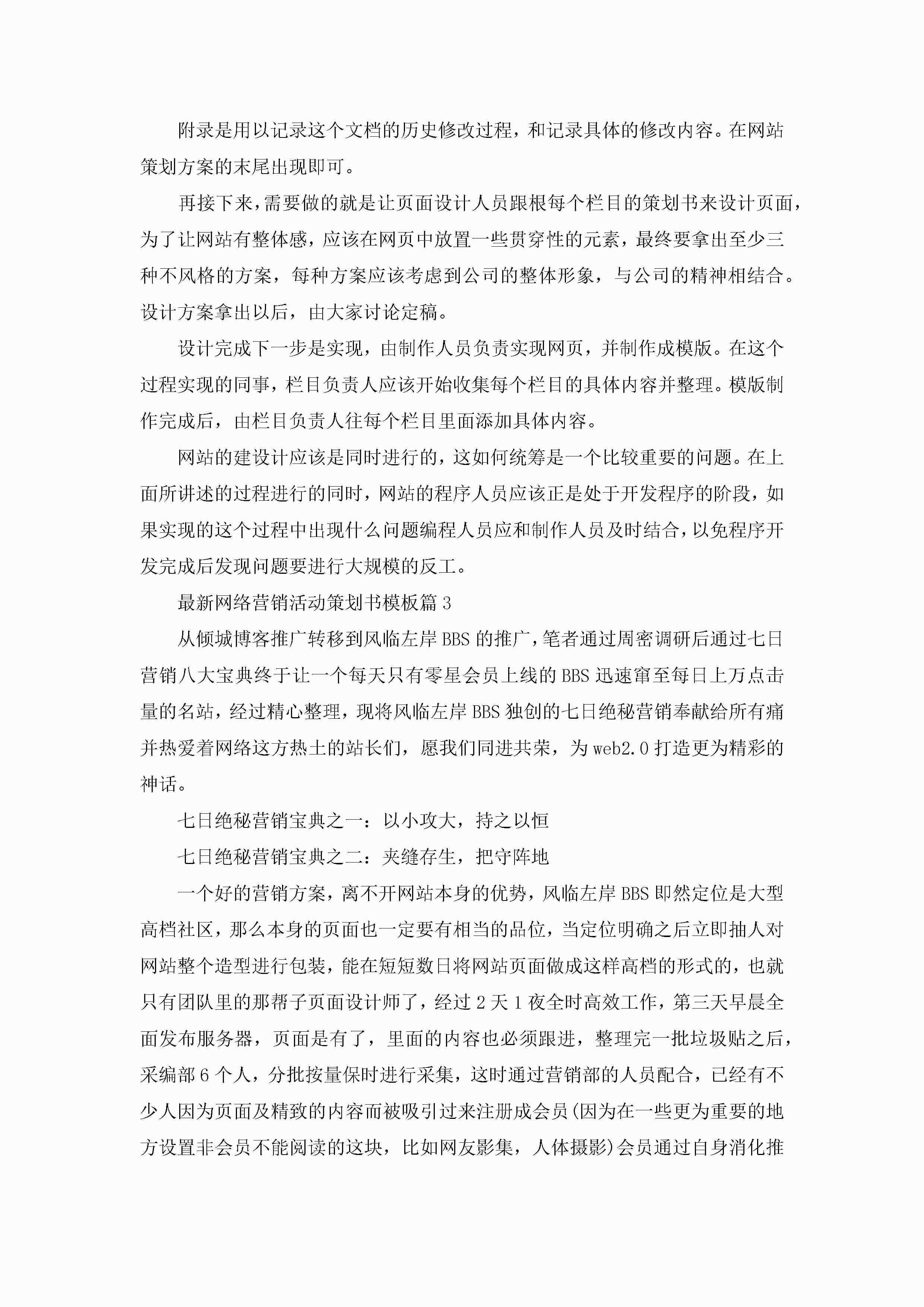 最新网络营销活动策划书模板【7篇】jugei3月23日 01:52发布关注398 最新网络营销活动策划书模板【7篇】此内容为付费资源,请付费后查看¥10.9 单篇文档限时特惠¥15个人会员开通企业会员开通立即下载无需登陆!可直接快捷下载单个模板付费资源© 版权声明THE ENDWord模板# 实用文档# 策划书# 营销策划# 最新网络营销活动策划书模板 如有问题,可点击最底部“联系我们”联系客服 分享QQ空间微博QQ好友海报分享复制链接收藏