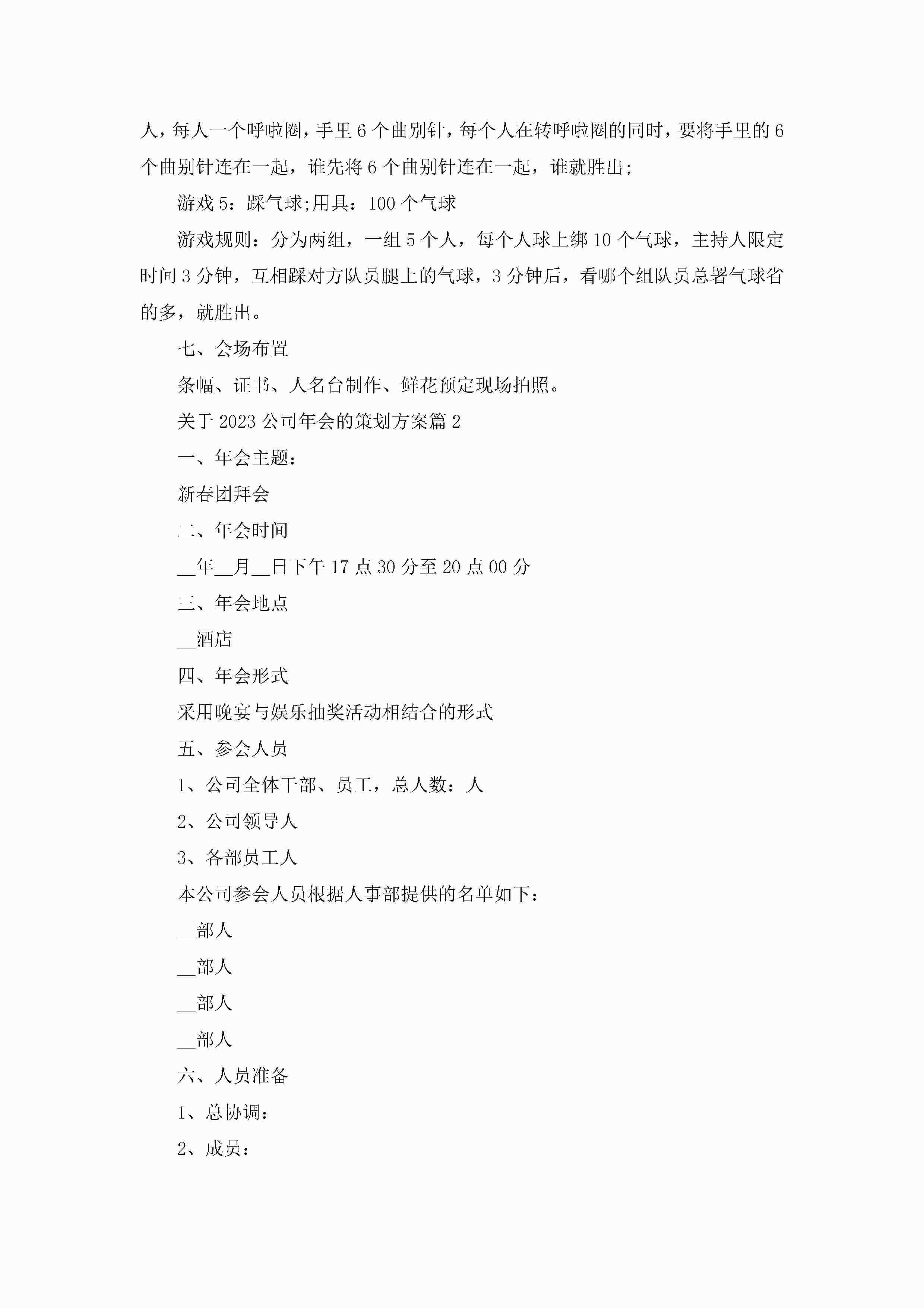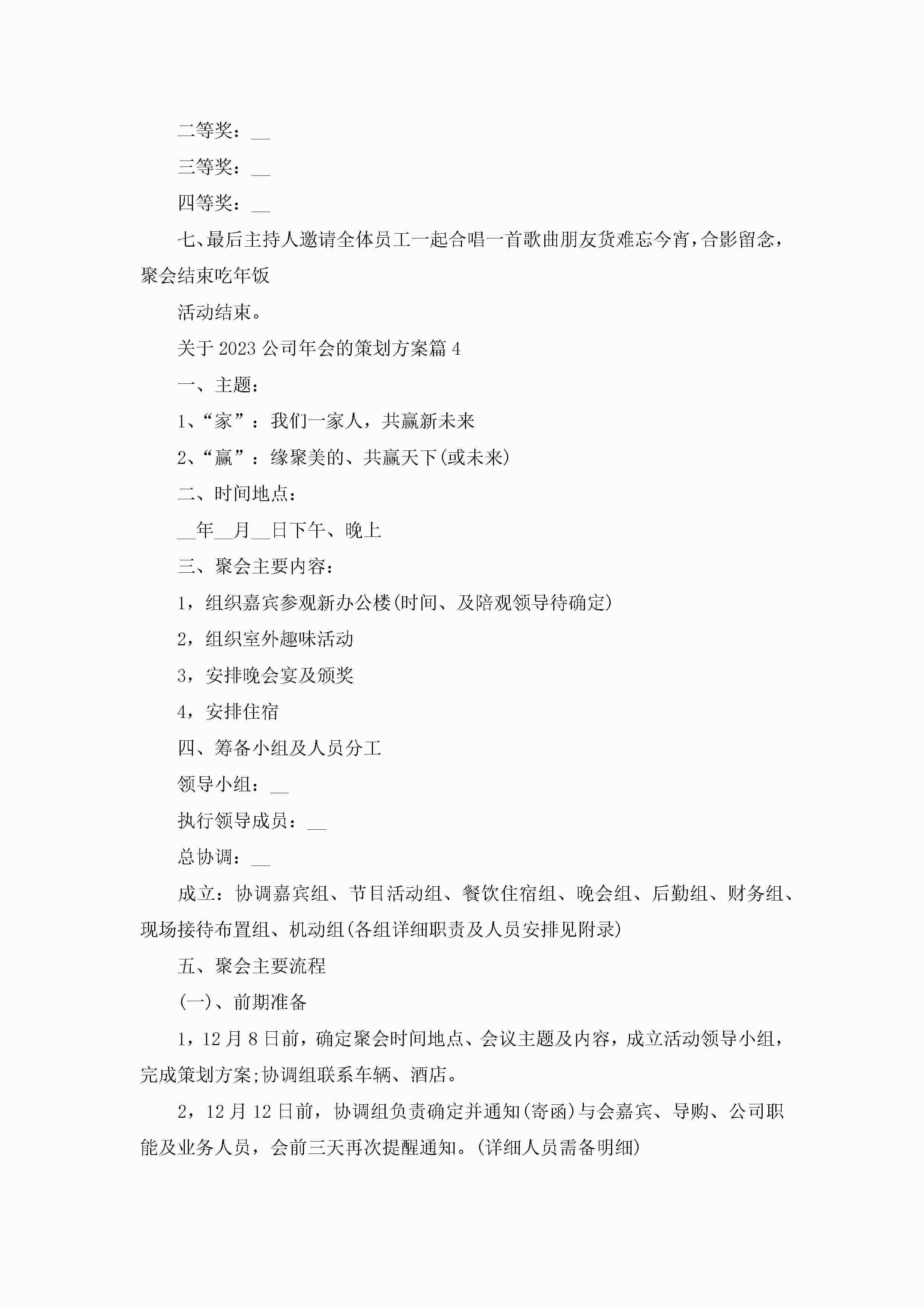 关于2023公司年会的策划方案5篇jugei3月23日 01:52发布关注431 关于2023公司年会的策划方案5篇此内容为付费资源,请付费后查看¥10.9 单篇文档限时特惠¥15个人会员开通企业会员开通立即下载无需登陆!可直接快捷下载单个模板付费资源© 版权声明THE ENDWord模板# 实用文档# 策划书# 工作文档# 晚会策划 如有问题,可点击最底部“联系我们”联系客服 分享QQ空间微博QQ好友海报分享复制链接收藏