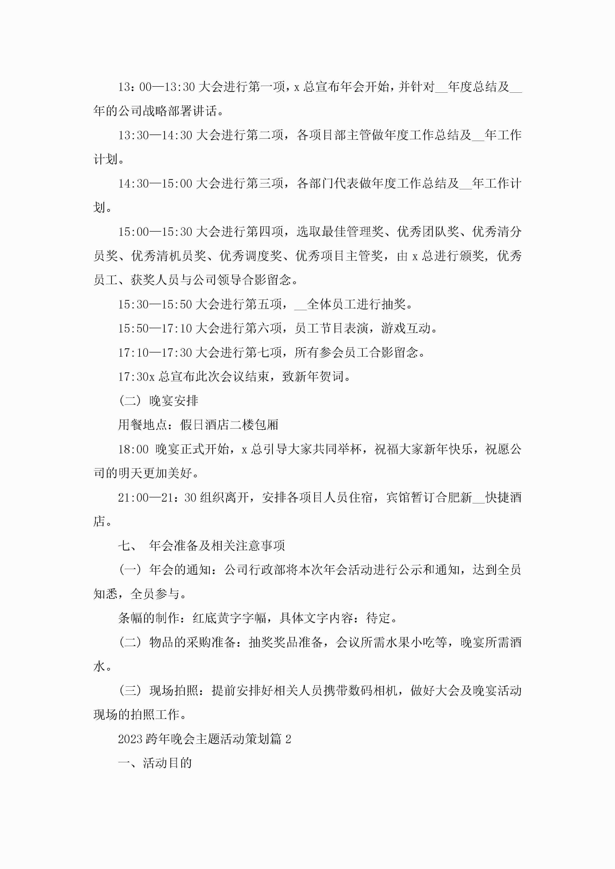 2023跨年晚会主题活动策划(精选5篇)jugei3月23日 01:52发布关注314 2023跨年晚会主题活动策划(精选5篇)此内容为付费资源,请付费后查看¥10.9 单篇文档限时特惠¥15个人会员开通企业会员开通立即下载无需登陆!可直接快捷下载单个模板付费资源© 版权声明THE ENDWord模板# 实用文档# 策划书# 工作文档# 晚会策划 如有问题,可点击最底部“联系我们”联系客服 分享QQ空间微博QQ好友海报分享复制链接收藏