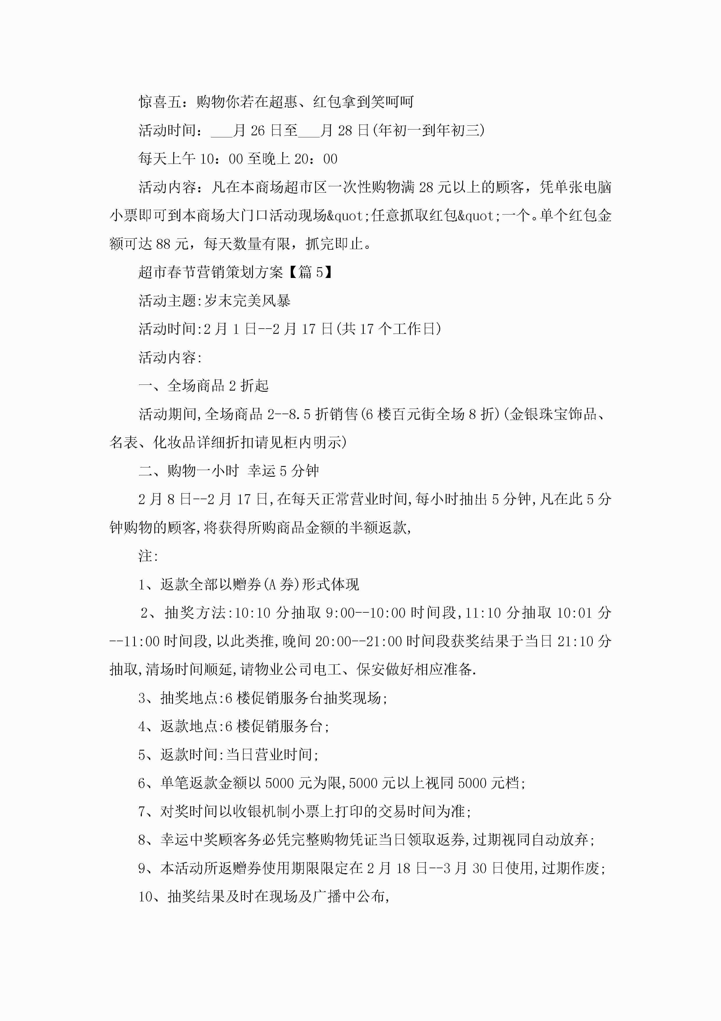 超市春节营销策划方案5篇jugei3月23日 01:52发布关注299 超市春节营销策划方案5篇此内容为付费资源,请付费后查看¥10.9 单篇文档限时特惠¥15个人会员开通企业会员开通立即下载无需登陆!可直接快捷下载单个模板付费资源© 版权声明THE ENDWord模板# 实用文档# 策划书# 营销策划# 超市春节营销策划方案 如有问题,可点击最底部“联系我们”联系客服 分享QQ空间微博QQ好友海报分享复制链接收藏