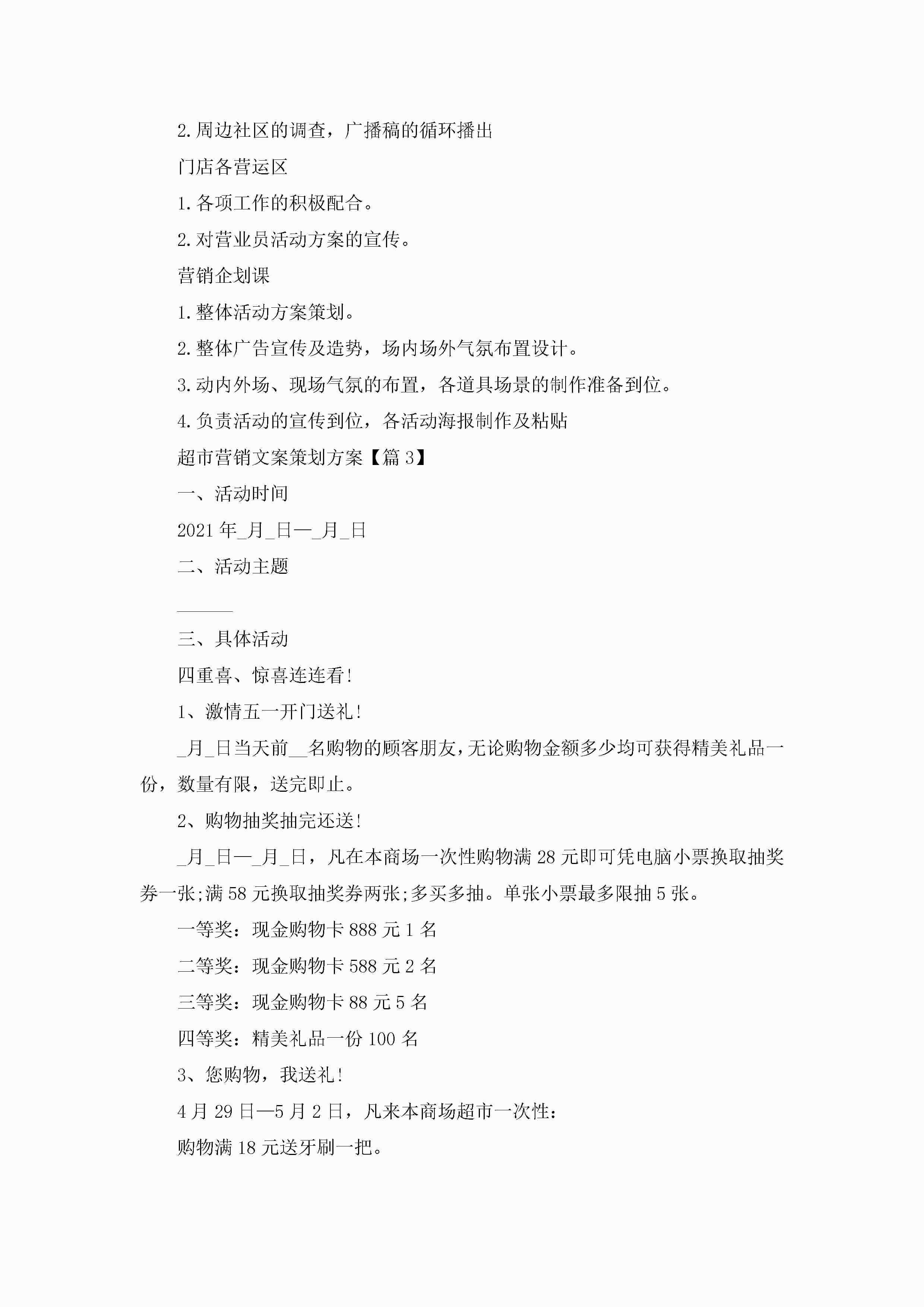 超市的营销文案策划方案jugei3月23日 01:52发布关注277 超市的营销文案策划方案此内容为付费资源,请付费后查看¥10.9 单篇文档限时特惠¥15个人会员开通企业会员开通立即下载无需登陆!可直接快捷下载单个模板付费资源© 版权声明THE ENDWord模板# 实用文档# 策划书# 工作文档# 营销策划 如有问题,可点击最底部“联系我们”联系客服 分享QQ空间微博QQ好友海报分享复制链接收藏