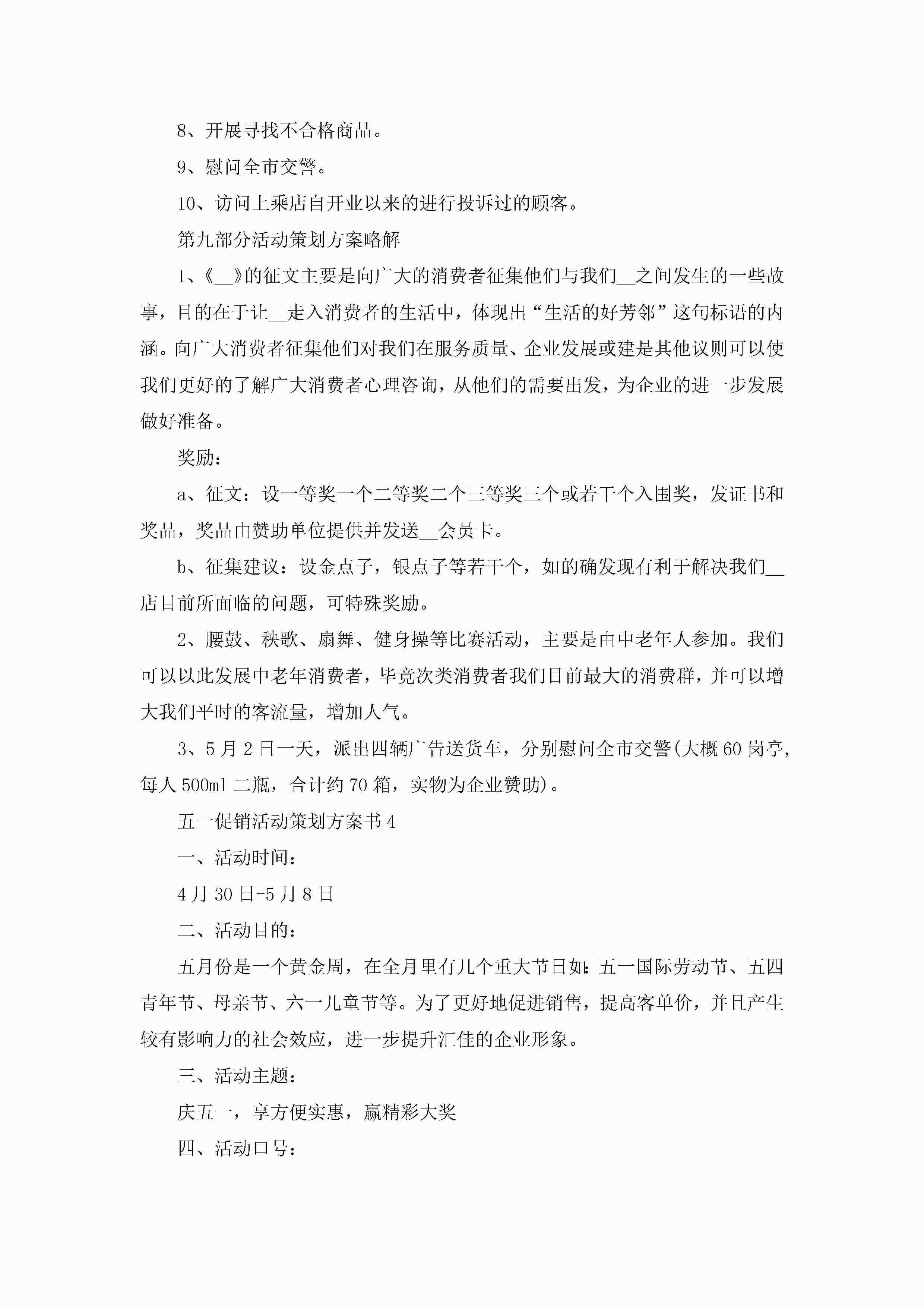 五一促销活动策划方案书5篇jugei3月23日 01:52发布关注242 五一促销活动策划方案书5篇此内容为付费资源,请付费后查看¥10.9 单篇文档限时特惠¥15个人会员开通企业会员开通立即下载无需登陆!可直接快捷下载单个模板付费资源© 版权声明THE ENDWord模板# 实用文档# 策划书# 工作文档# 营销策划 如有问题,可点击最底部“联系我们”联系客服 分享QQ空间微博QQ好友海报分享复制链接收藏