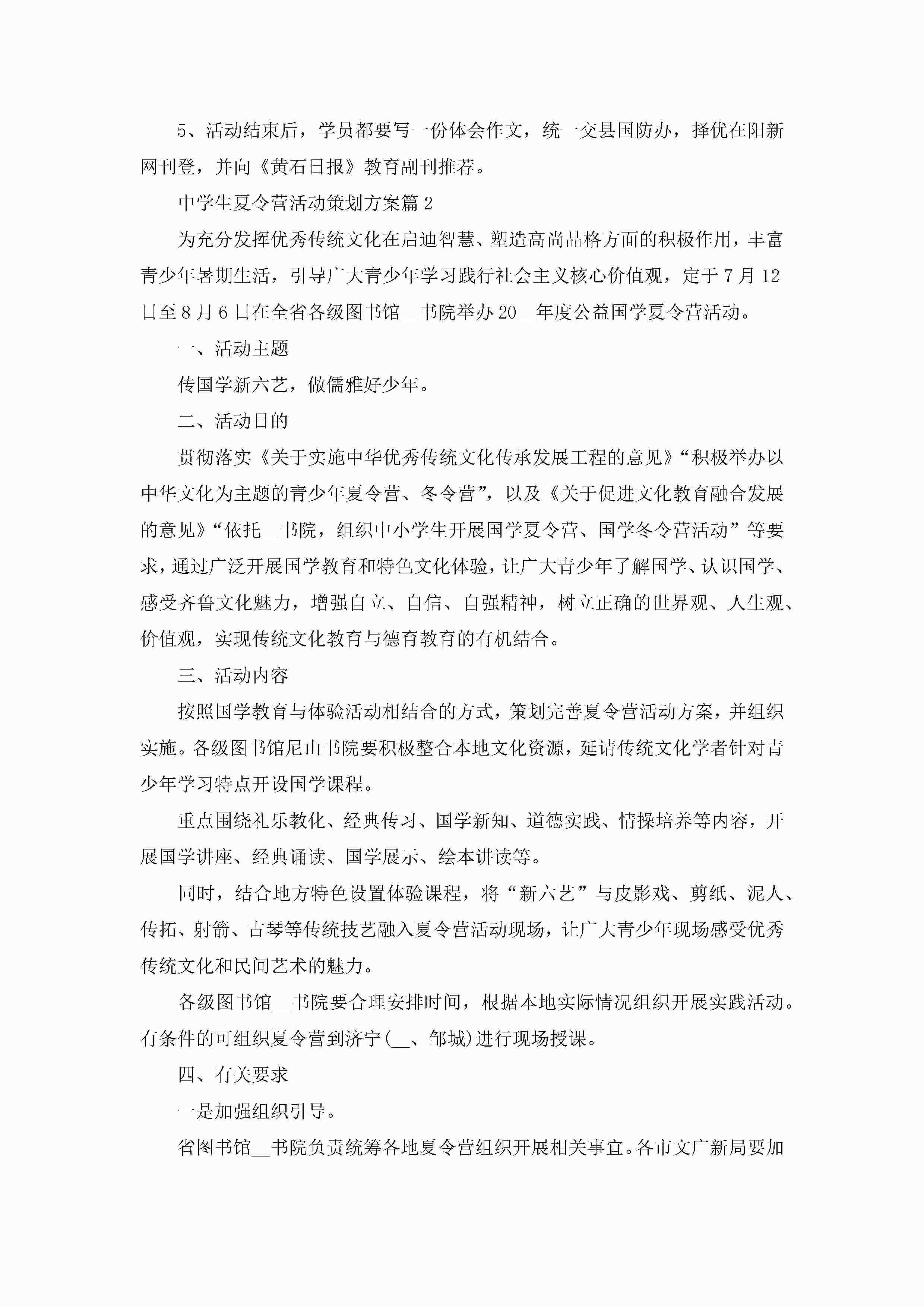 中学生夏令营活动策划方案jugei3月23日 01:52发布关注265 中学生夏令营活动策划方案此内容为付费资源,请付费后查看¥10.9 单篇文档限时特惠¥15个人会员开通企业会员开通立即下载无需登陆!可直接快捷下载单个模板付费资源© 版权声明THE ENDWord模板# 实用文档# 策划书# 工作文档# 聚会策划 如有问题,可点击最底部“联系我们”联系客服 分享QQ空间微博QQ好友海报分享复制链接收藏