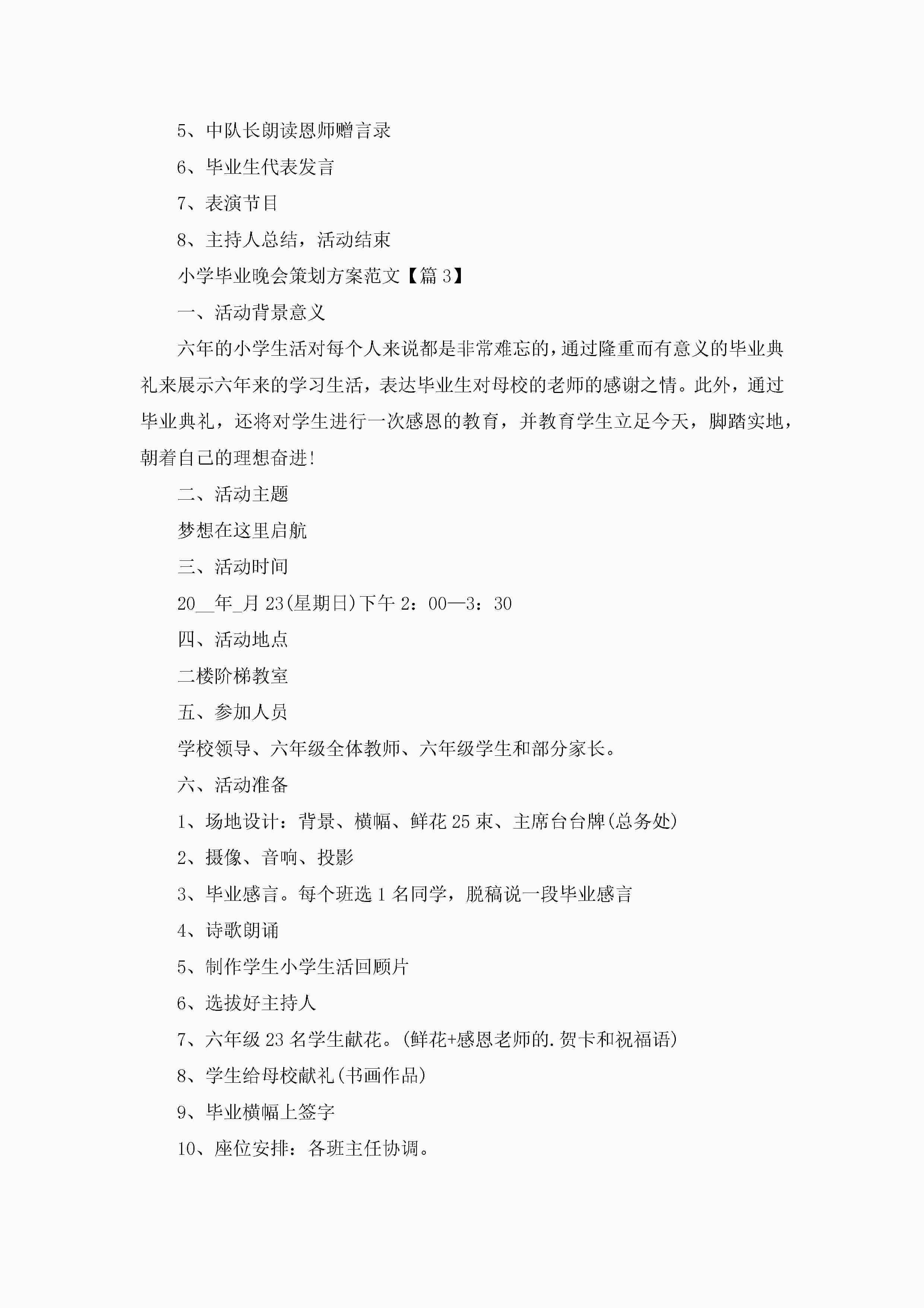 小学毕业晚会策划方案范文5篇jugei3月23日 01:52发布关注229 小学毕业晚会策划方案范文5篇此内容为付费资源,请付费后查看¥10.9 单篇文档限时特惠¥15个人会员开通企业会员开通立即下载无需登陆!可直接快捷下载单个模板付费资源© 版权声明THE ENDWord模板# 实用文档# 策划书# 工作文档# 聚会策划 如有问题,可点击最底部“联系我们”联系客服 分享QQ空间微博QQ好友海报分享复制链接收藏