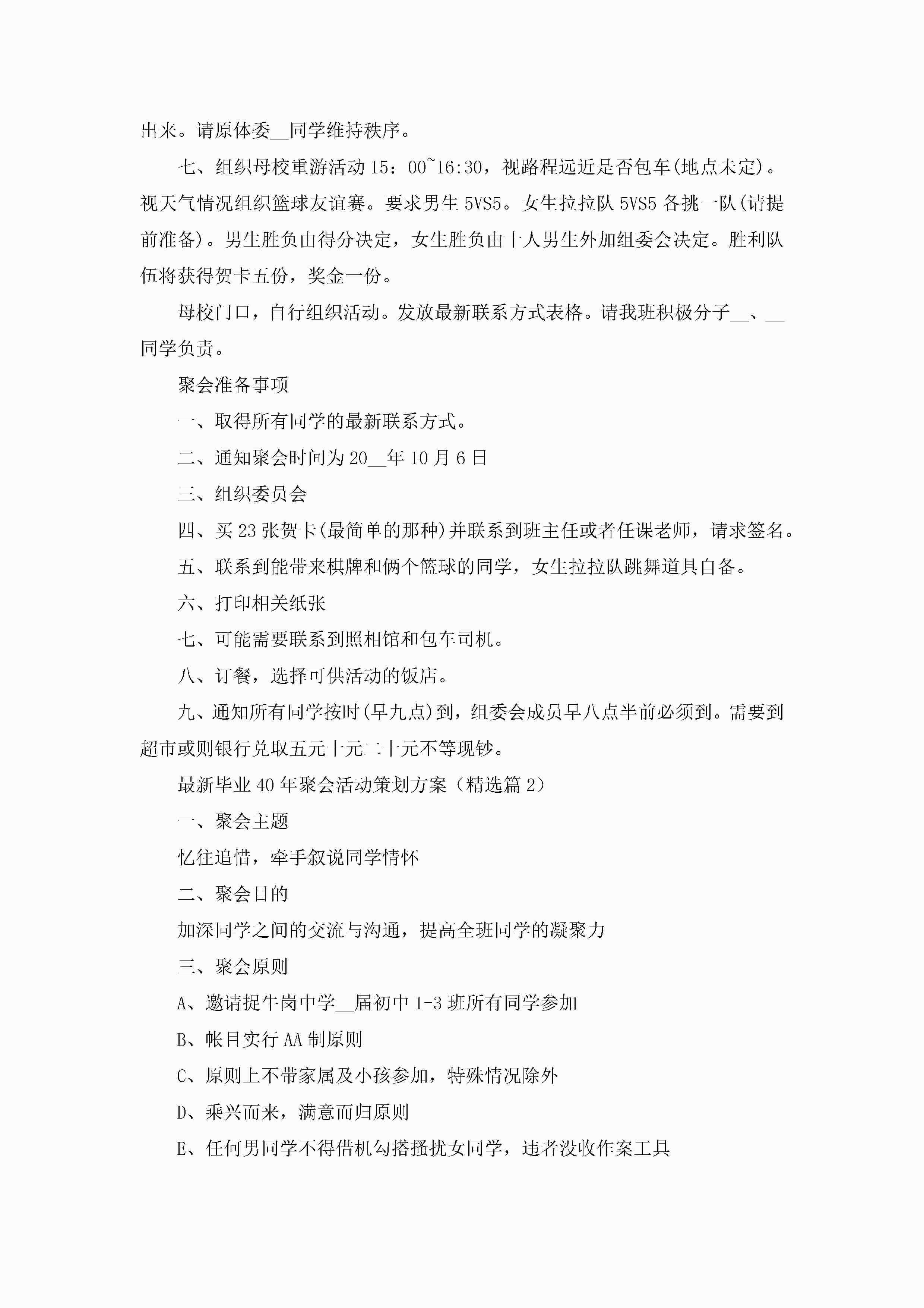 最新毕业40年聚会活动策划方案5篇jugei3月23日 01:52发布关注204 最新毕业40年聚会活动策划方案5篇此内容为付费资源,请付费后查看¥10.9 单篇文档限时特惠¥15个人会员开通企业会员开通立即下载无需登陆!可直接快捷下载单个模板付费资源© 版权声明THE ENDWord模板# 实用文档# 策划书# 工作文档# 聚会策划 如有问题,可点击最底部“联系我们”联系客服 分享QQ空间微博QQ好友海报分享复制链接收藏