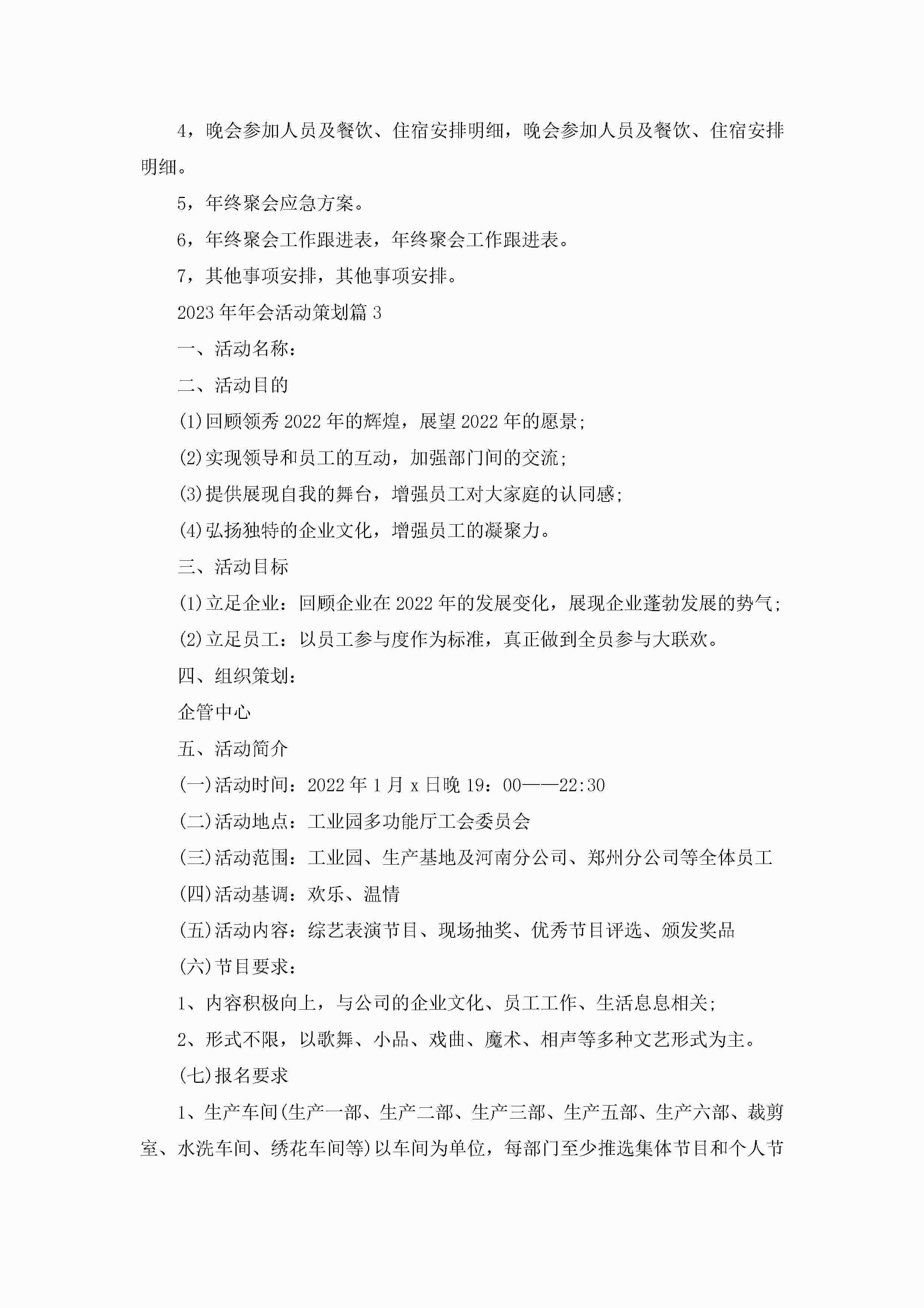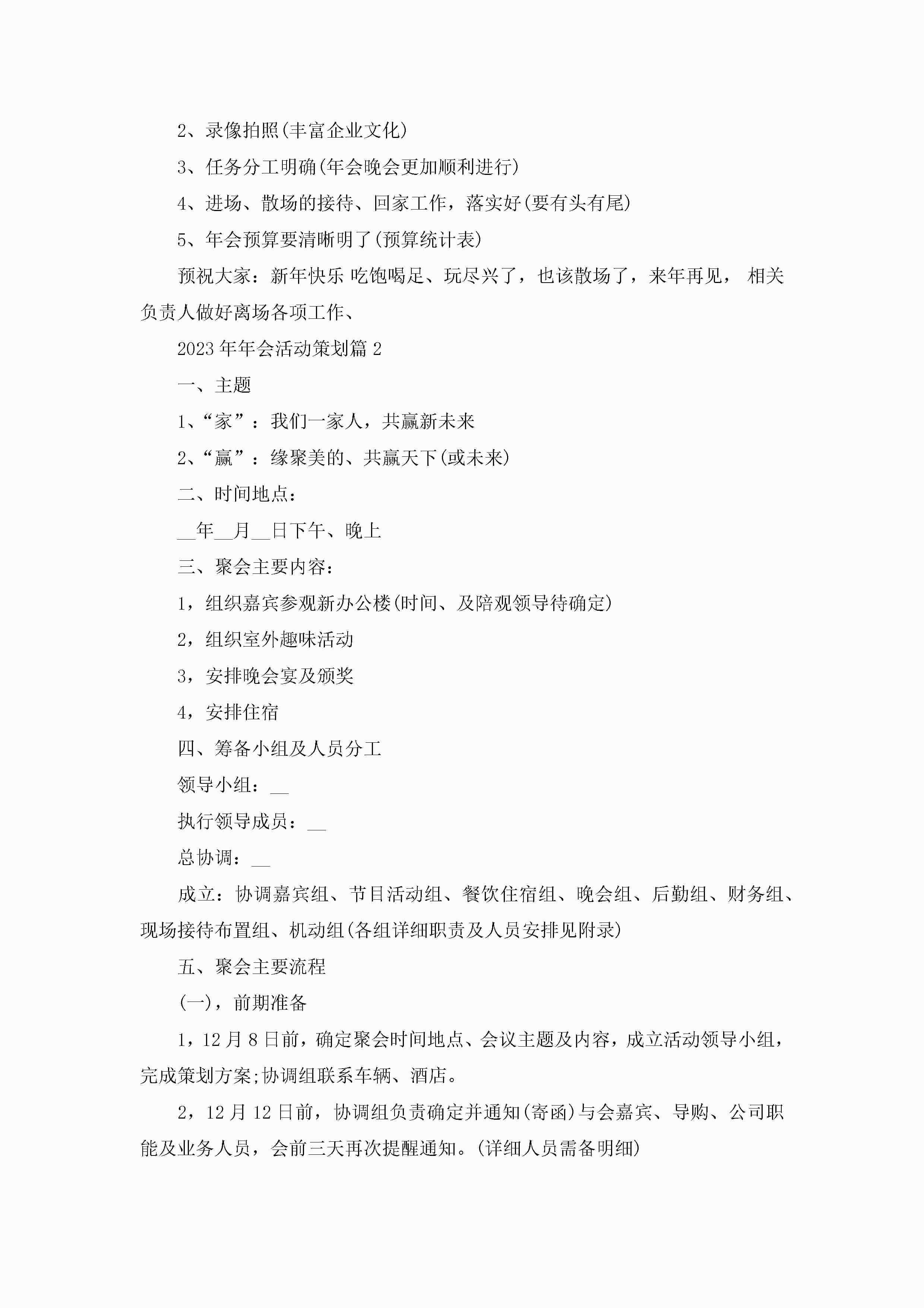 2023年年会活动策划(5篇)jugei3月23日 01:52发布关注372 2023年年会活动策划(5篇)此内容为付费资源,请付费后查看¥10.9 单篇文档限时特惠¥15个人会员开通企业会员开通立即下载无需登陆!可直接快捷下载单个模板付费资源© 版权声明THE ENDWord模板# 实用文档# 策划书# 工作文档# 聚会策划 如有问题,可点击最底部“联系我们”联系客服 分享QQ空间微博QQ好友海报分享复制链接收藏