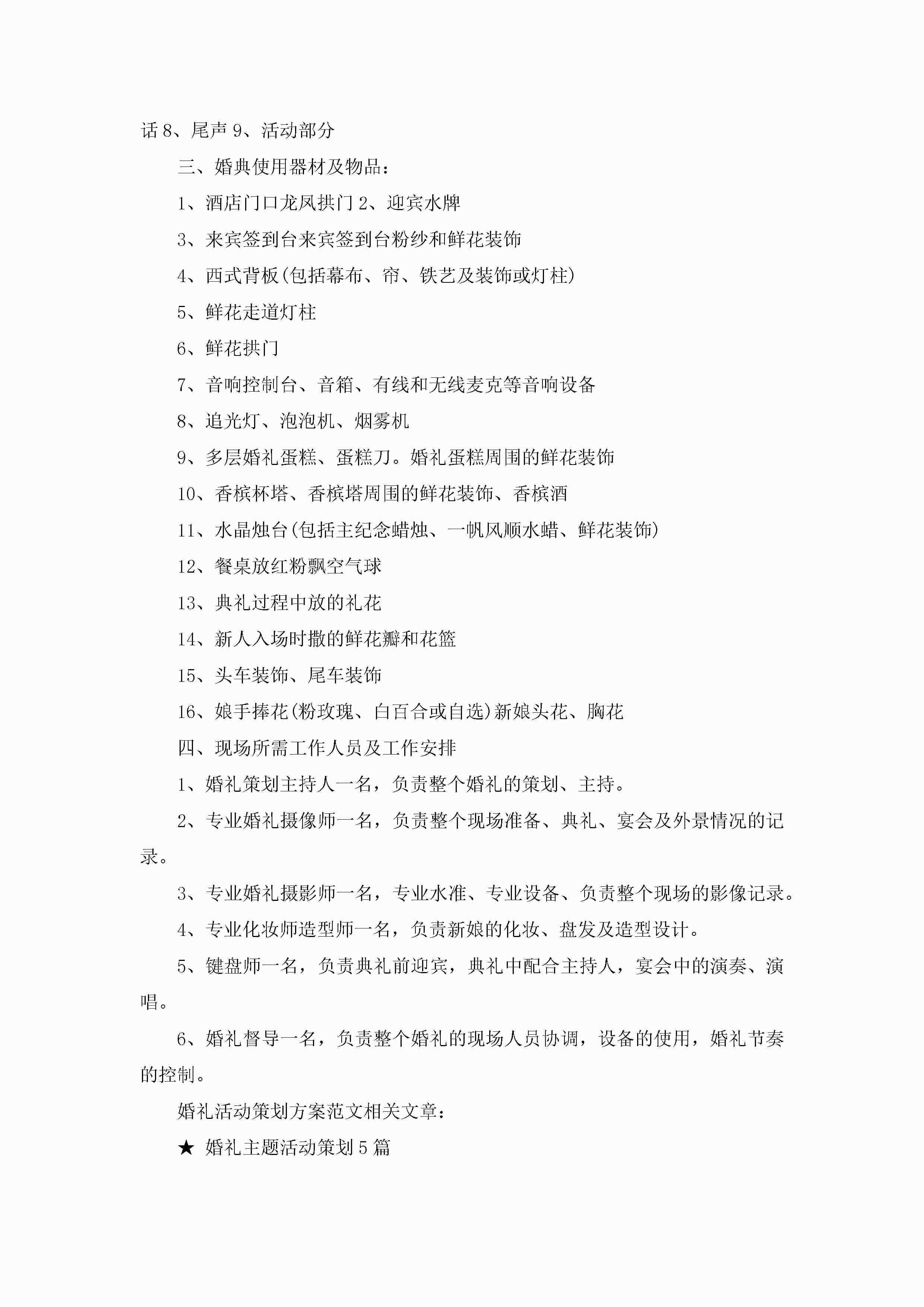 结婚典礼活动策划方案范文5篇jugei3月23日 01:52发布关注317 结婚典礼活动策划方案范文5篇此内容为付费资源,请付费后查看¥10.9 单篇文档限时特惠¥15个人会员开通企业会员开通立即下载无需登陆!可直接快捷下载单个模板付费资源© 版权声明THE ENDWord模板# 实用文档# 策划书# 工作文档# 婚礼策划 如有问题,可点击最底部“联系我们”联系客服 分享QQ空间微博QQ好友海报分享复制链接收藏