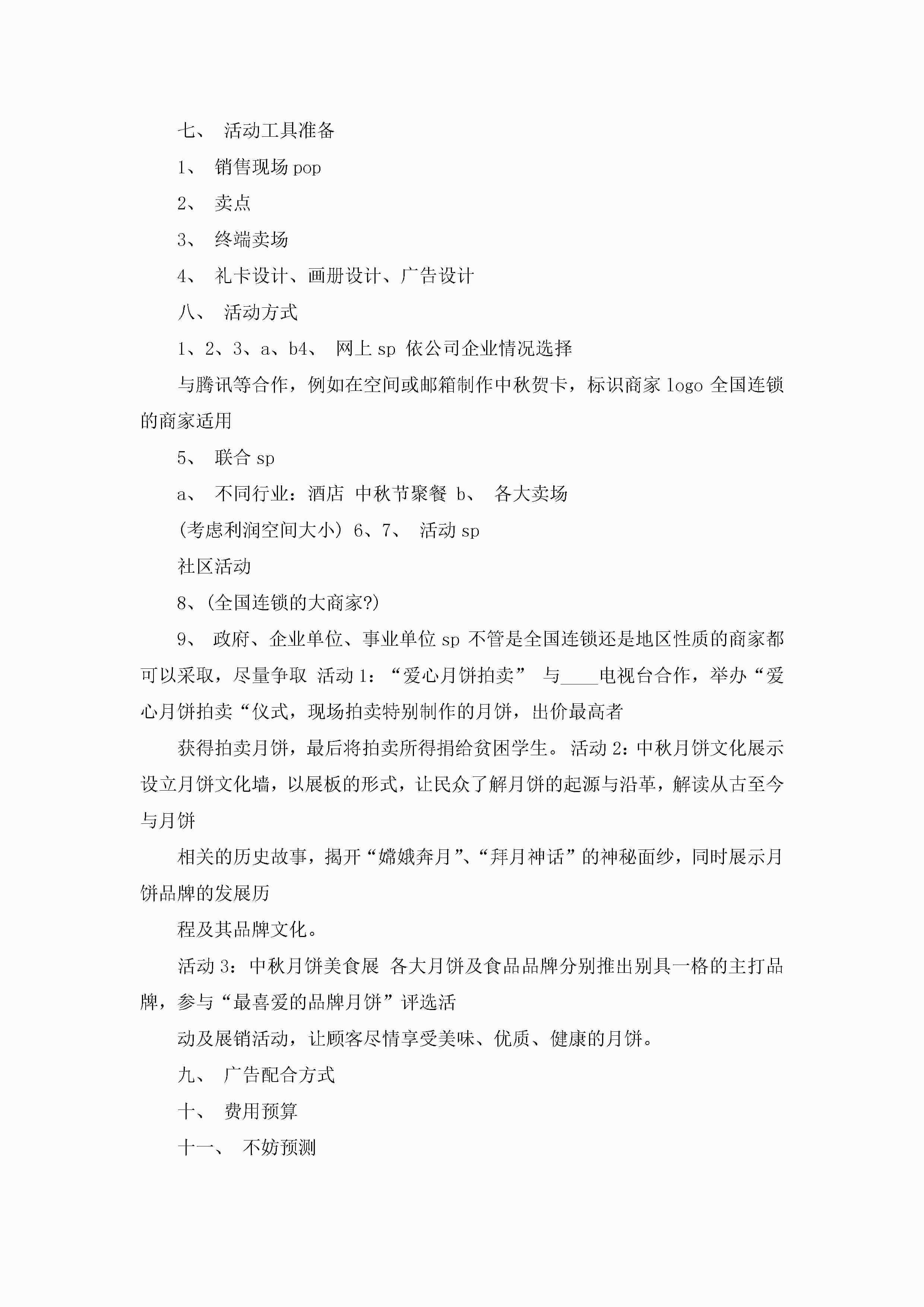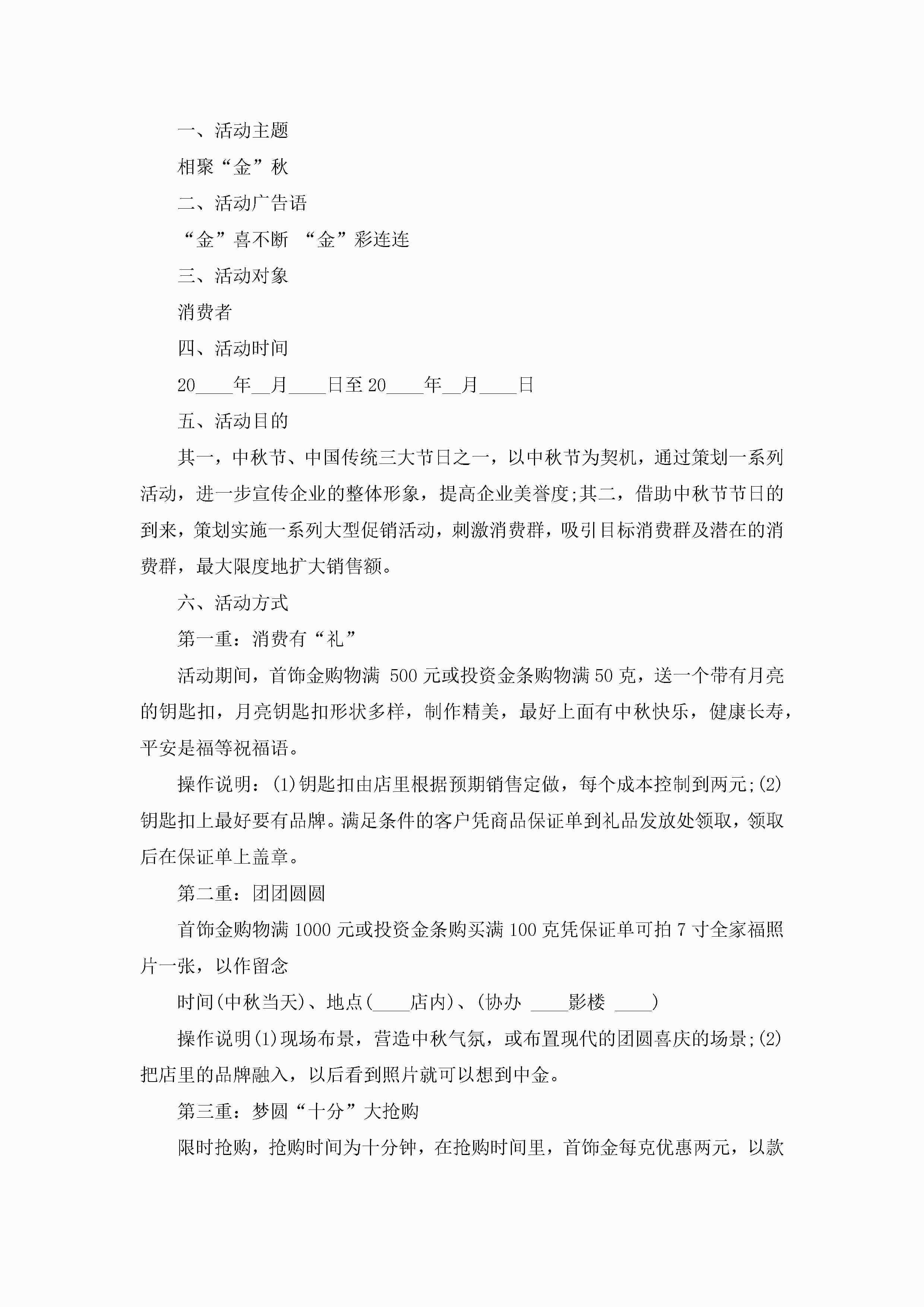 中秋节营销活动策划方案5篇jugei3月23日 01:52发布关注271 中秋节营销活动策划方案5篇此内容为付费资源,请付费后查看¥10.9 单篇文档限时特惠¥15个人会员开通企业会员开通立即下载无需登陆!可直接快捷下载单个模板付费资源© 版权声明THE ENDWord模板# 实用文档# 策划书# 工作文档# 营销策划 如有问题,可点击最底部“联系我们”联系客服 分享QQ空间微博QQ好友海报分享复制链接收藏
