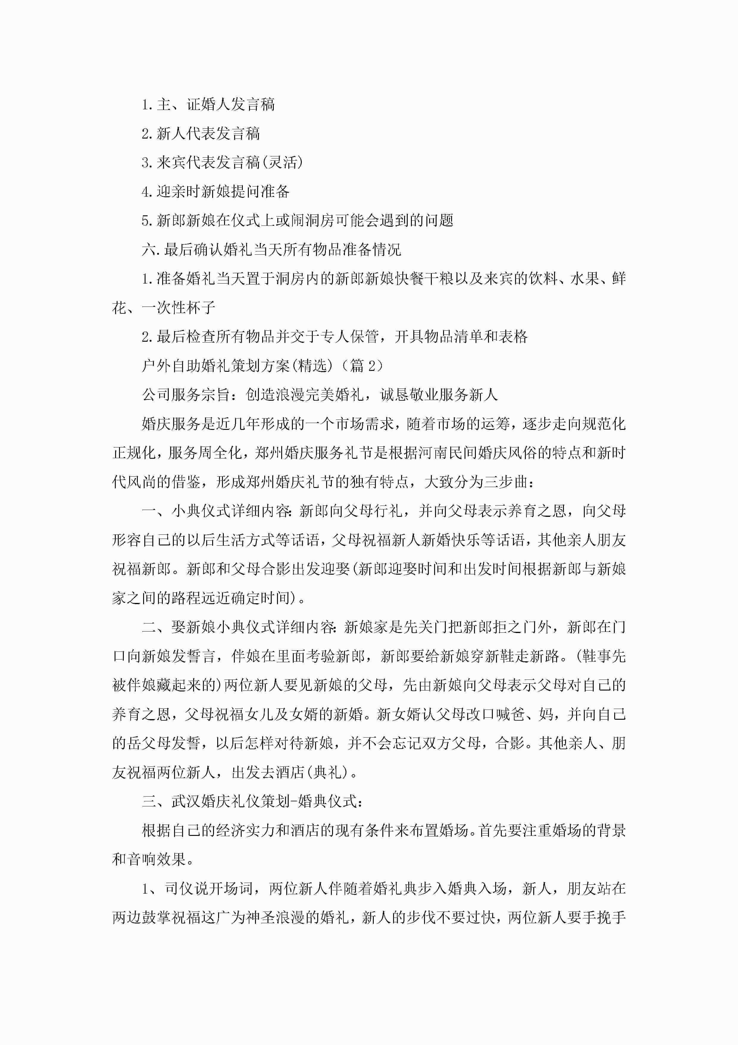户外自助结婚典礼策划方案(精选5篇)jugei3月23日 01:53发布关注492 户外自助结婚典礼策划方案(精选5篇)此内容为付费资源,请付费后查看¥10.9 单篇文档限时特惠¥15个人会员开通企业会员开通立即下载无需登陆!可直接快捷下载单个模板付费资源© 版权声明THE ENDWord模板# 实用文档# 策划书# 工作文档# 婚礼策划 如有问题,可点击最底部“联系我们”联系客服 分享QQ空间微博QQ好友海报分享复制链接收藏