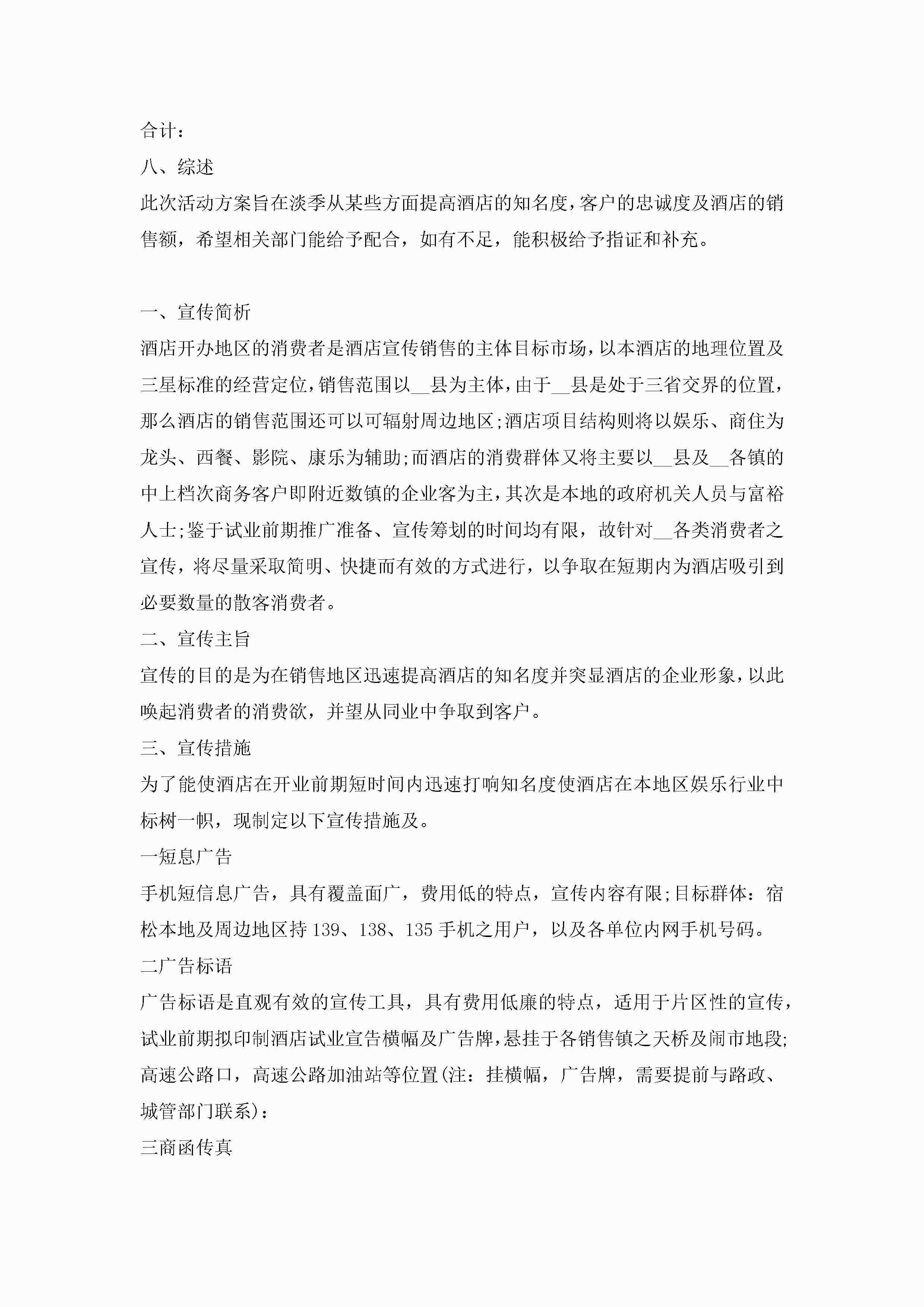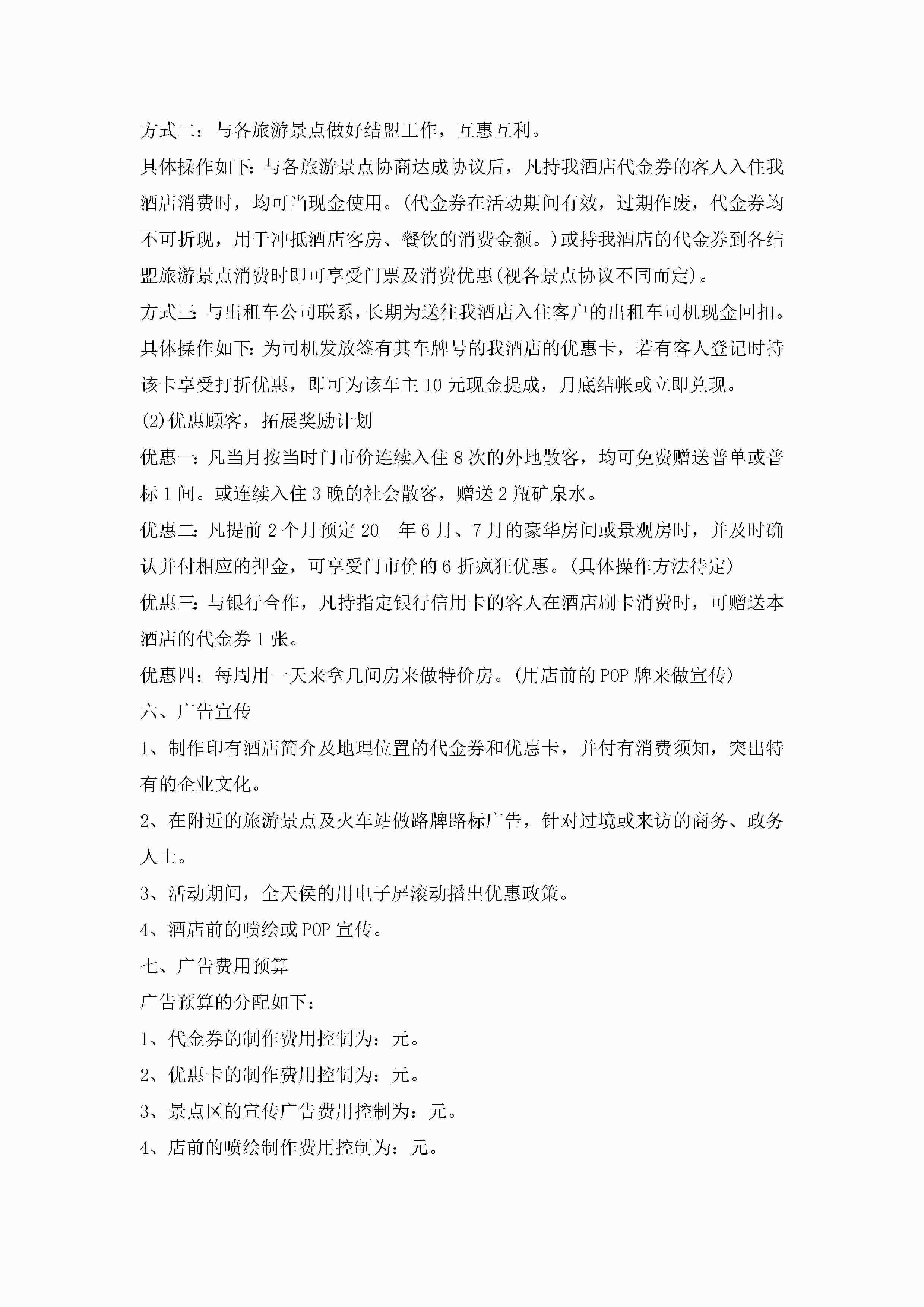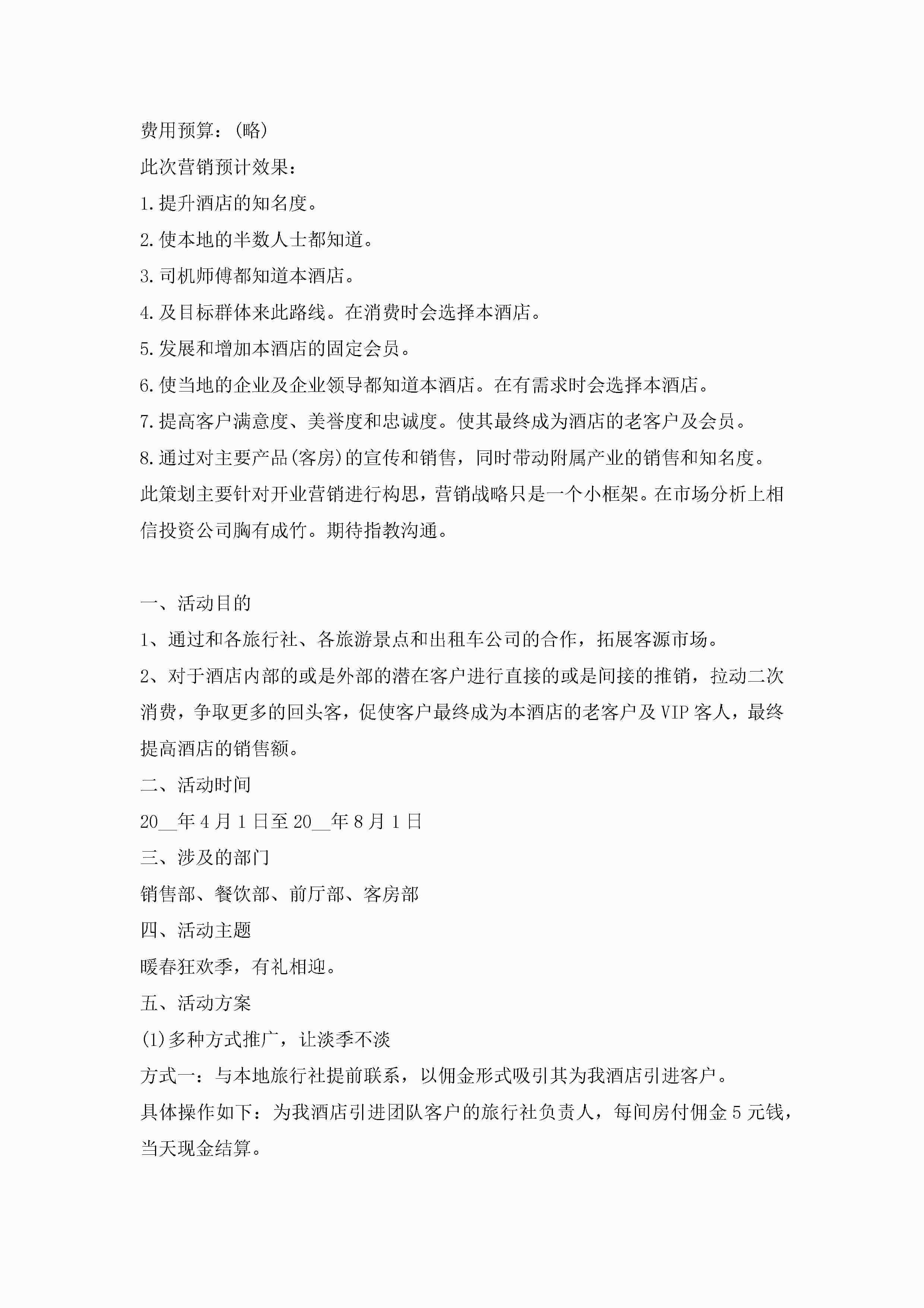 最新小型酒店开业营销策划5篇jugei3月23日 01:53发布关注235 最新小型酒店开业营销策划5篇此内容为付费资源,请付费后查看¥10.9 单篇文档限时特惠¥15个人会员开通企业会员开通立即下载无需登陆!可直接快捷下载单个模板付费资源© 版权声明THE ENDWord模板# 实用文档# 策划书# 工作文档# 营销策划 如有问题,可点击最底部“联系我们”联系客服 分享QQ空间微博QQ好友海报分享复制链接收藏