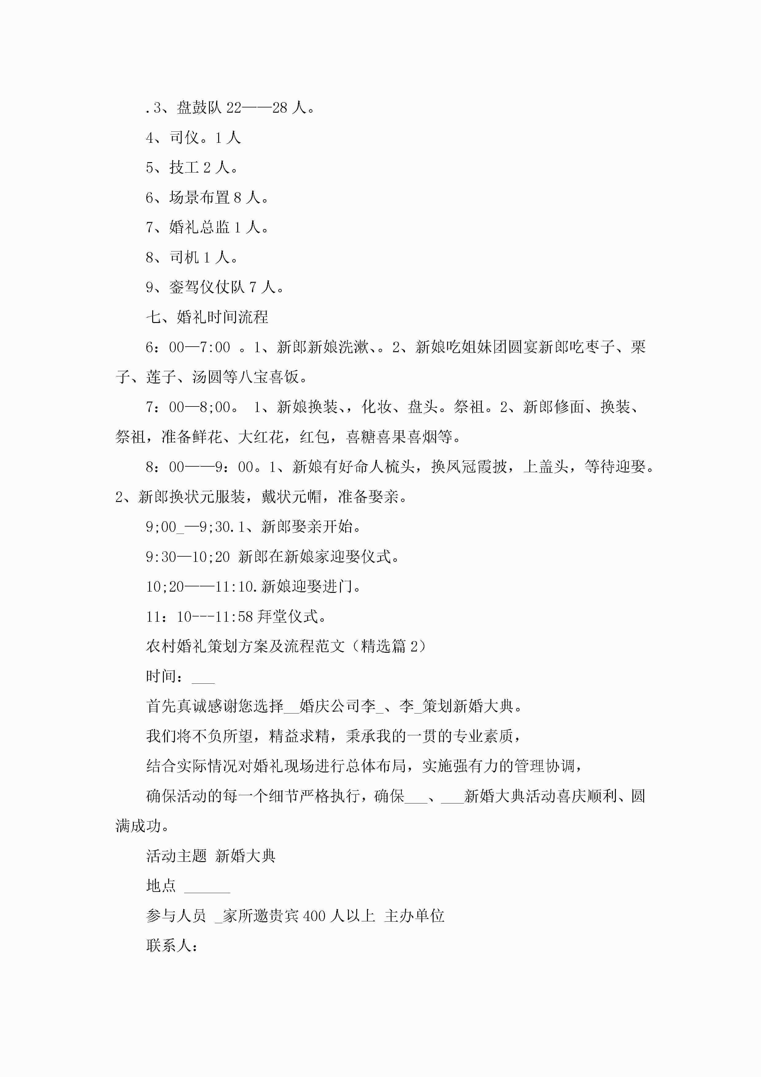 农村结婚典礼策划方案及流程范文5篇jugei3月23日 01:53发布关注214 农村结婚典礼策划方案及流程范文5篇此内容为付费资源,请付费后查看¥10.9 单篇文档限时特惠¥15个人会员开通企业会员开通立即下载无需登陆!可直接快捷下载单个模板付费资源© 版权声明THE ENDWord模板# 实用文档# 策划书# 工作文档# 婚礼策划 如有问题,可点击最底部“联系我们”联系客服 分享QQ空间微博QQ好友海报分享复制链接收藏