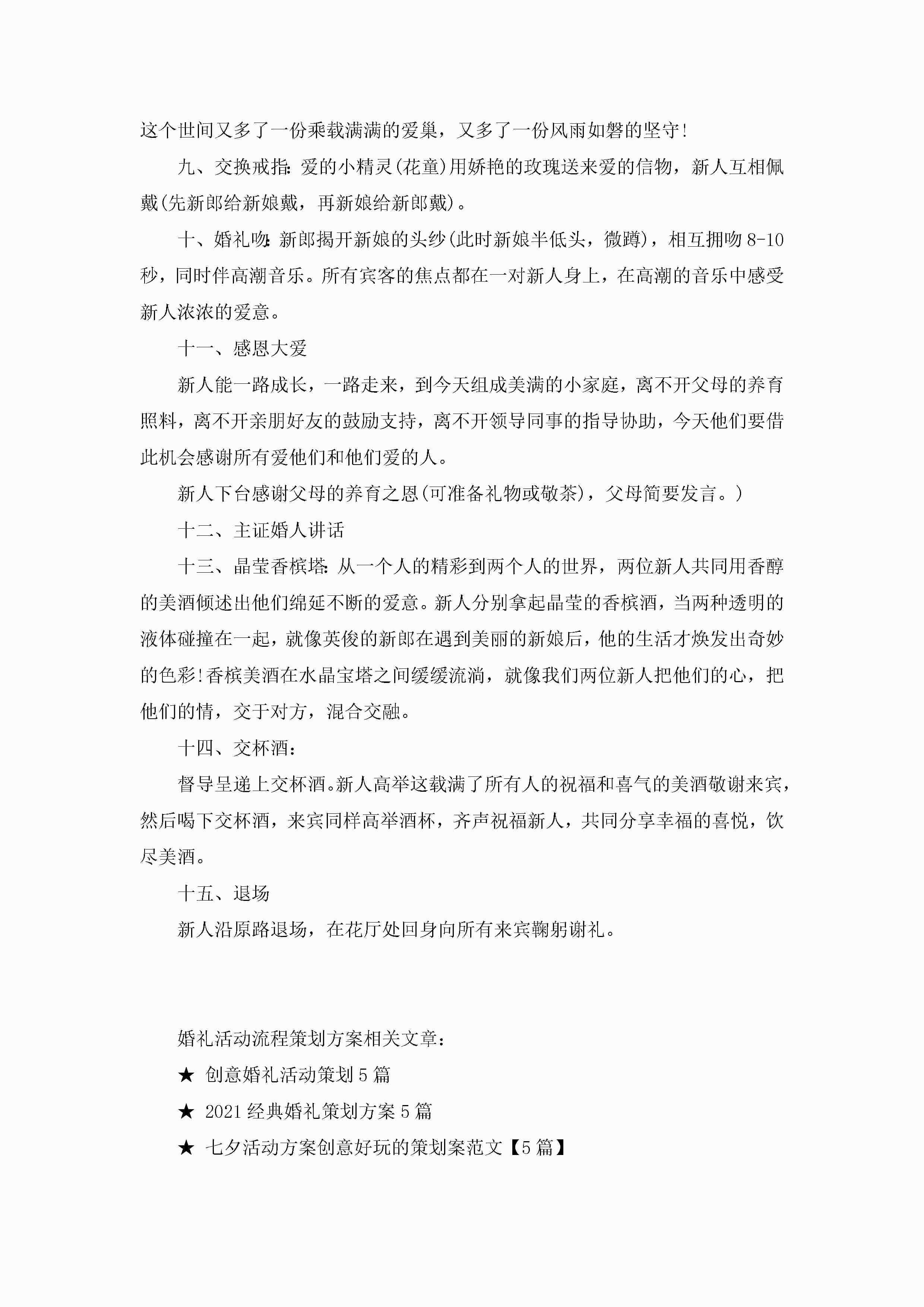 结婚典礼活动流程策划方案5篇jugei3月23日 01:53发布关注453 结婚典礼活动流程策划方案5篇此内容为付费资源,请付费后查看¥10.9 单篇文档限时特惠¥15个人会员开通企业会员开通立即下载无需登陆!可直接快捷下载单个模板付费资源© 版权声明THE ENDWord模板# 实用文档# 策划书# 工作文档# 婚礼策划 如有问题,可点击最底部“联系我们”联系客服 分享QQ空间微博QQ好友海报分享复制链接收藏