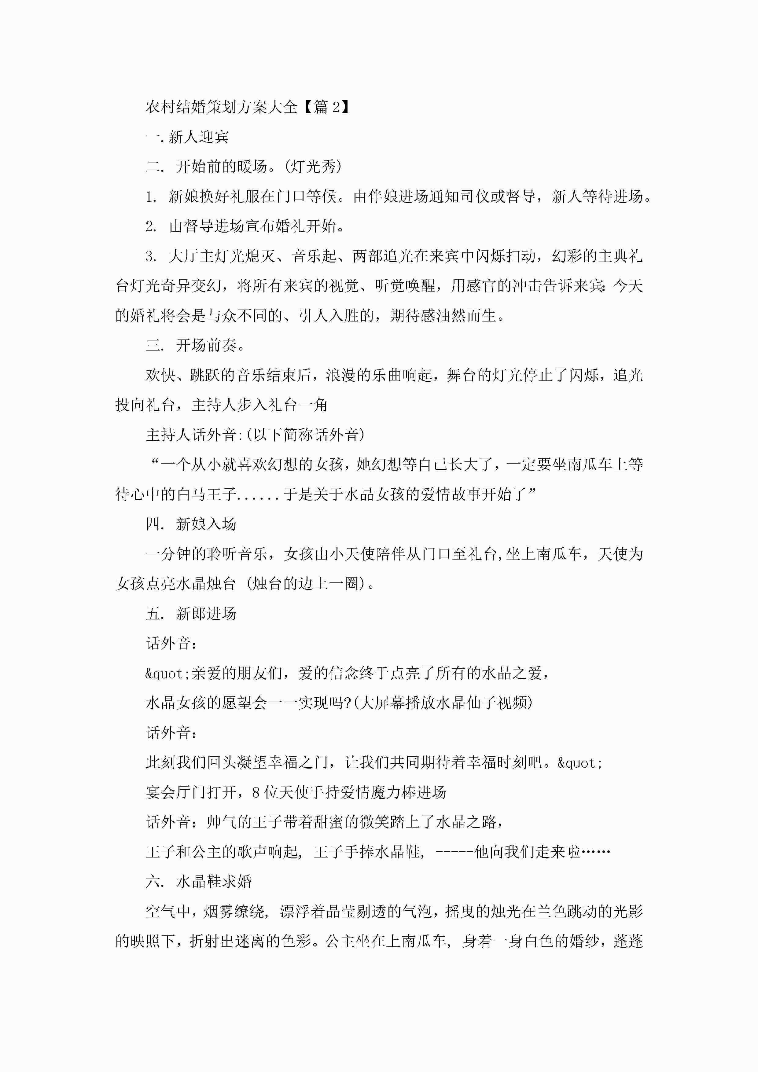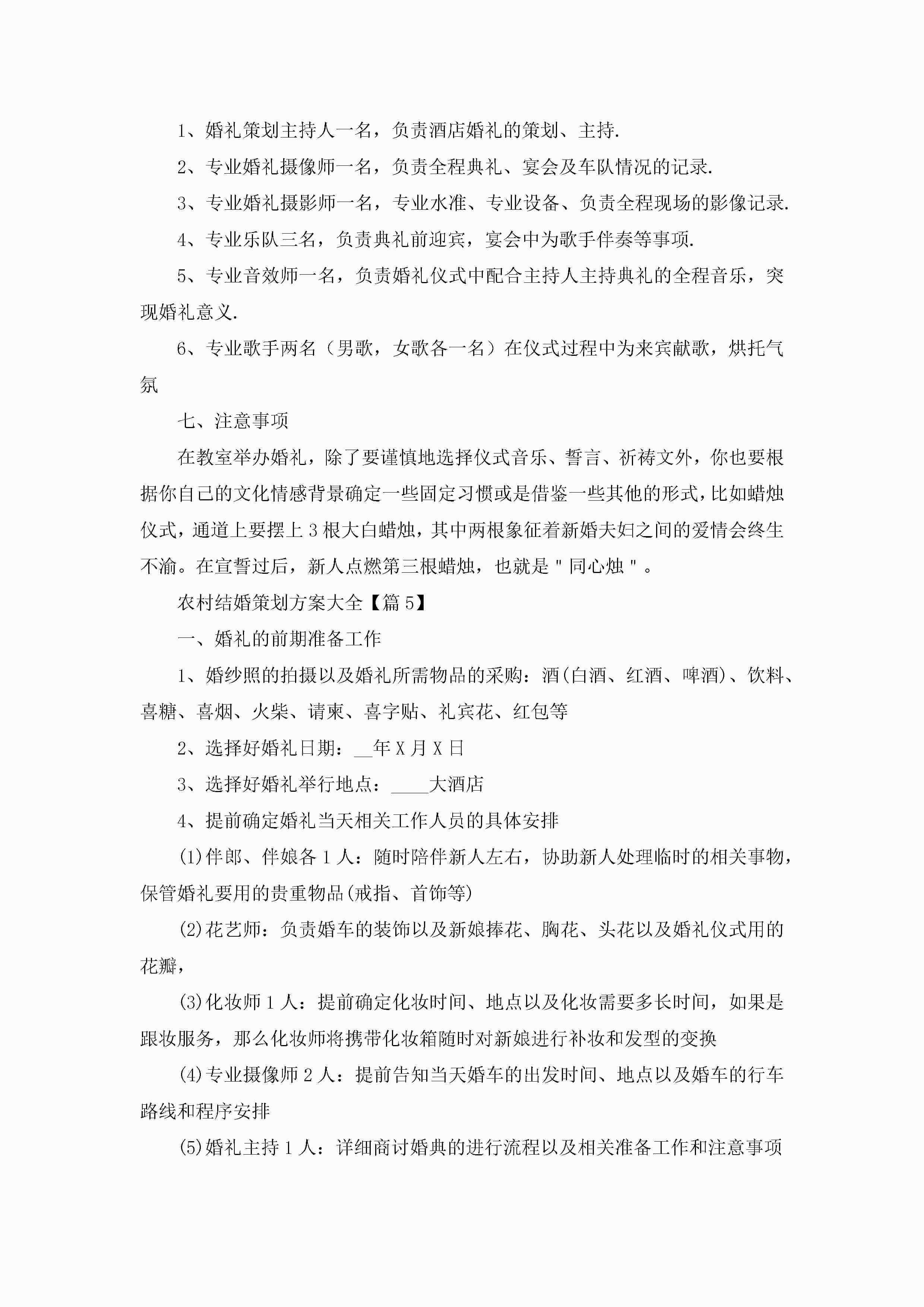 农村结婚策划方案大全5篇jugei3月23日 01:53发布关注245 农村结婚策划方案大全5篇此内容为付费资源,请付费后查看¥10.9 单篇文档限时特惠¥15个人会员开通企业会员开通立即下载无需登陆!可直接快捷下载单个模板付费资源© 版权声明THE ENDWord模板# 实用文档# 策划书# 工作文档# 婚礼策划 如有问题,可点击最底部“联系我们”联系客服 分享QQ空间微博QQ好友海报分享复制链接收藏