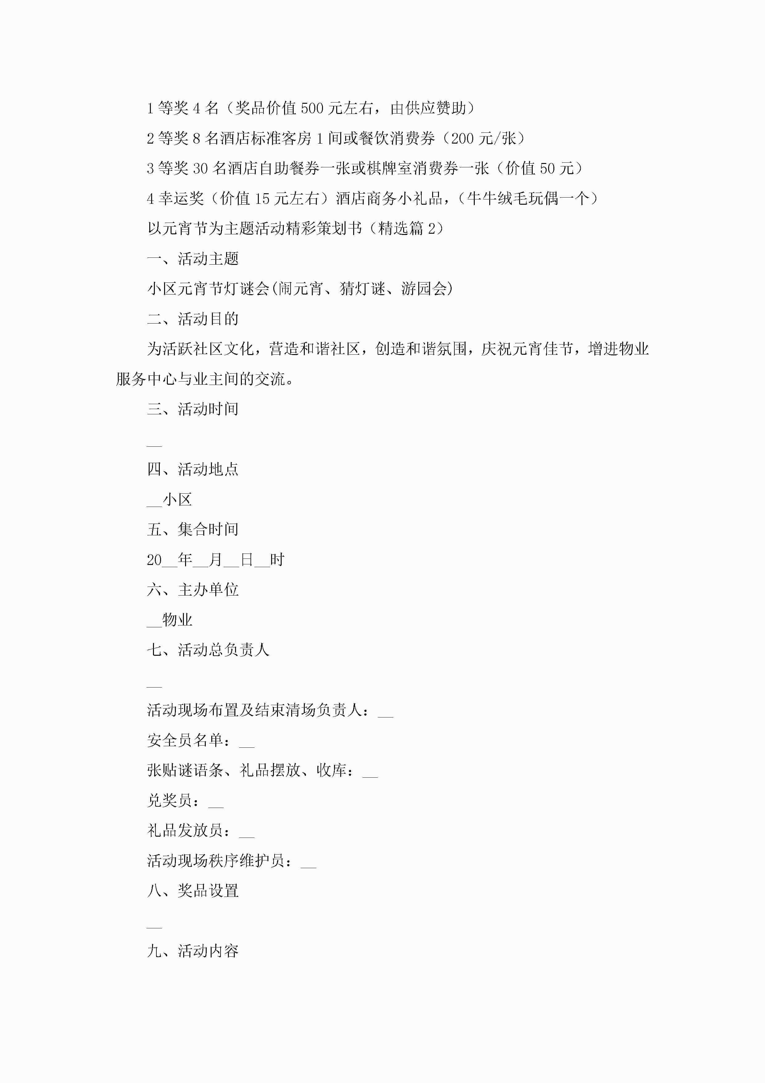 2023以元宵节为主题活动精彩策划书(七篇)jugei3月23日 01:53发布关注270 2023以元宵节为主题活动精彩策划书(七篇)此内容为付费资源,请付费后查看¥10.9 单篇文档限时特惠¥15个人会员开通企业会员开通立即下载无需登陆!可直接快捷下载单个模板付费资源© 版权声明THE ENDWord模板# 实用文档# 策划书# 工作文档# 活动策划 如有问题,可点击最底部“联系我们”联系客服 分享QQ空间微博QQ好友海报分享复制链接收藏