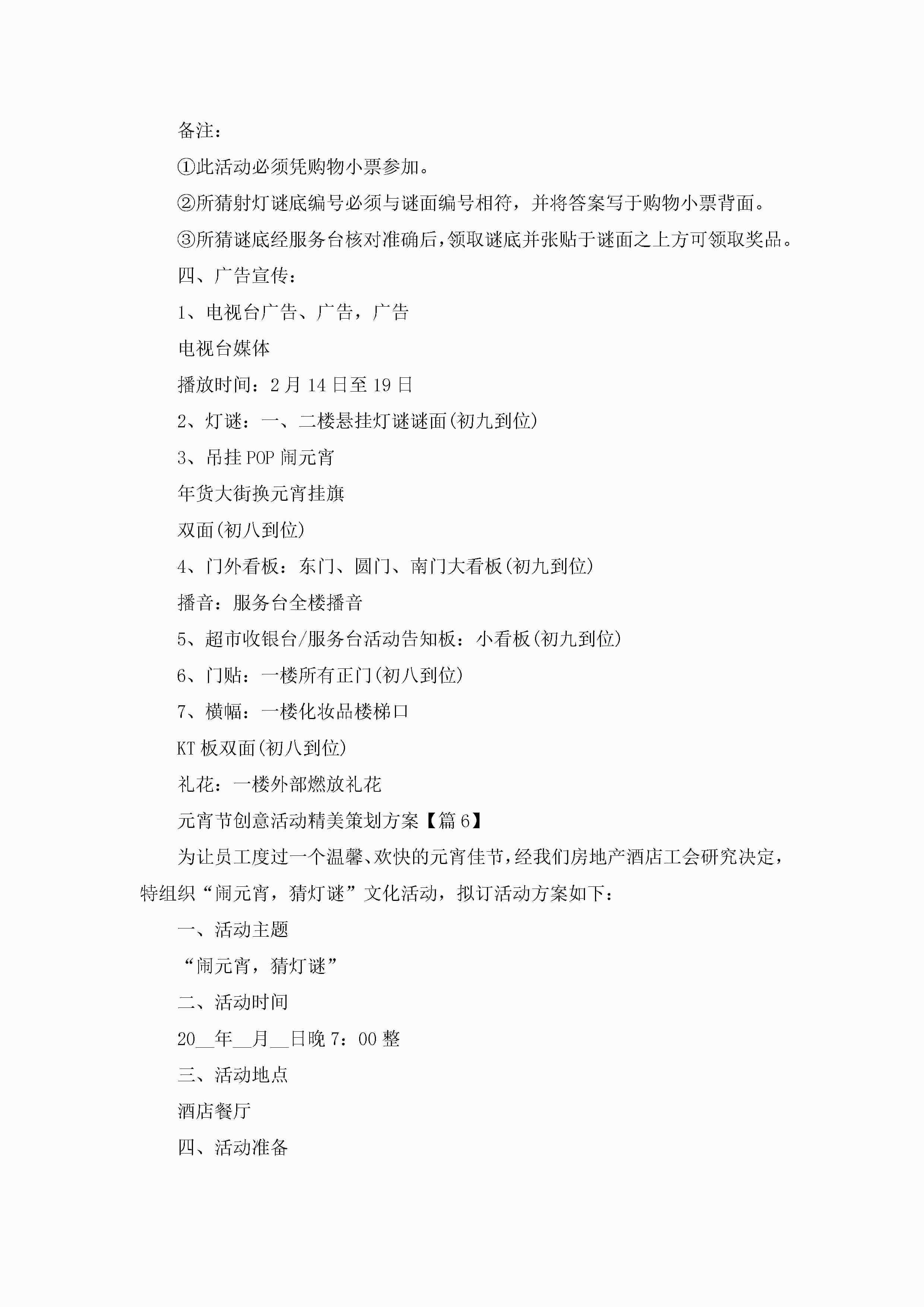 2023元宵节创意活动精美策划方案(6篇)jugei3月23日 01:53发布关注201 2023元宵节创意活动精美策划方案(6篇)此内容为付费资源,请付费后查看¥10.9 单篇文档限时特惠¥15个人会员开通企业会员开通立即下载无需登陆!可直接快捷下载单个模板付费资源© 版权声明THE ENDWord模板# 实用文档# 策划书# 工作文档# 活动策划 如有问题,可点击最底部“联系我们”联系客服 分享QQ空间微博QQ好友海报分享复制链接收藏