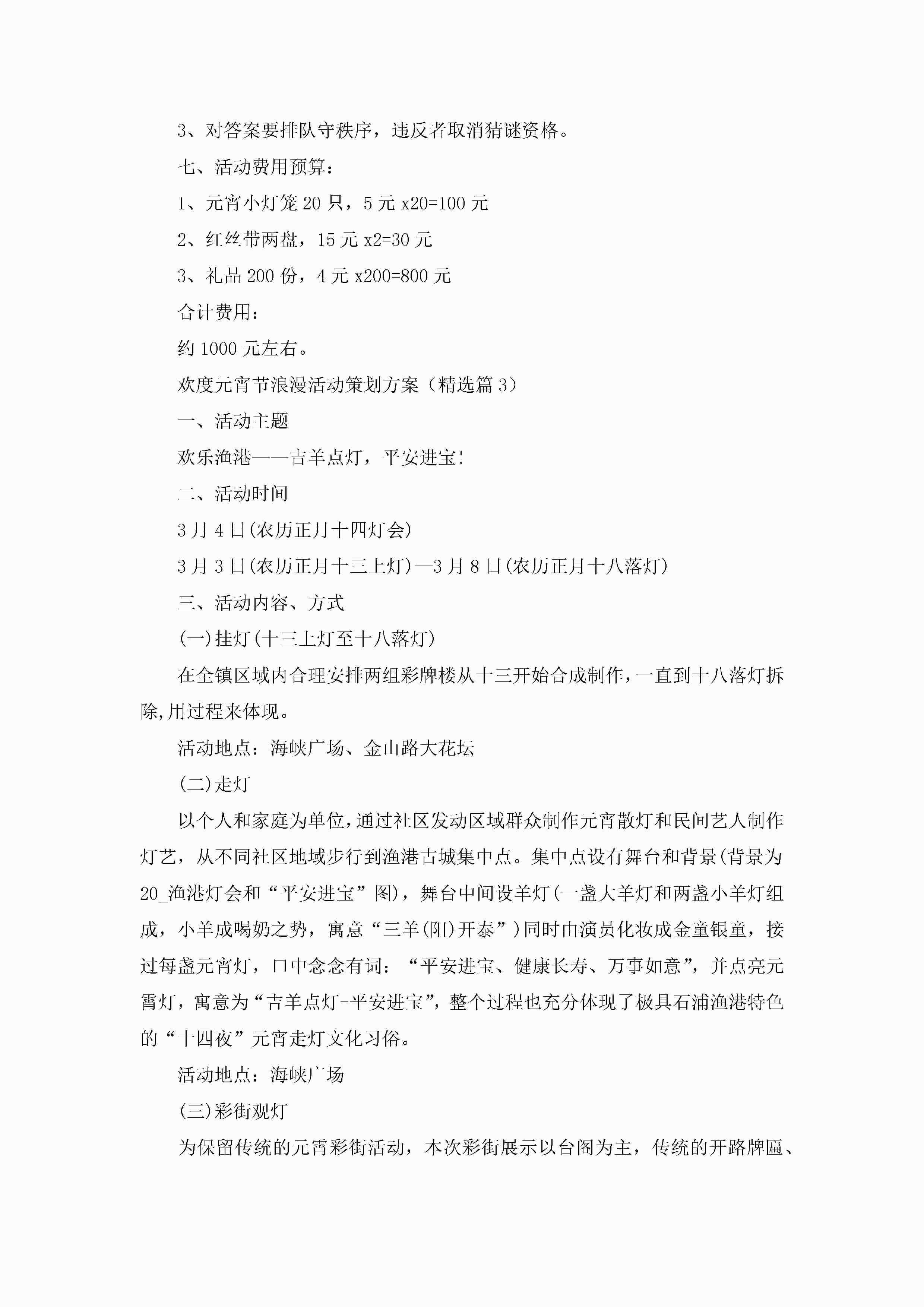 2023欢度元宵节浪漫活动策划方案(6篇)jugei3月23日 01:53发布关注262 2023欢度元宵节浪漫活动策划方案(6篇)此内容为付费资源,请付费后查看¥10.9 单篇文档限时特惠¥15个人会员开通企业会员开通立即下载无需登陆!可直接快捷下载单个模板付费资源© 版权声明THE ENDWord模板# 实用文档# 策划书# 工作文档# 活动策划 如有问题,可点击最底部“联系我们”联系客服 分享QQ空间微博QQ好友海报分享复制链接收藏