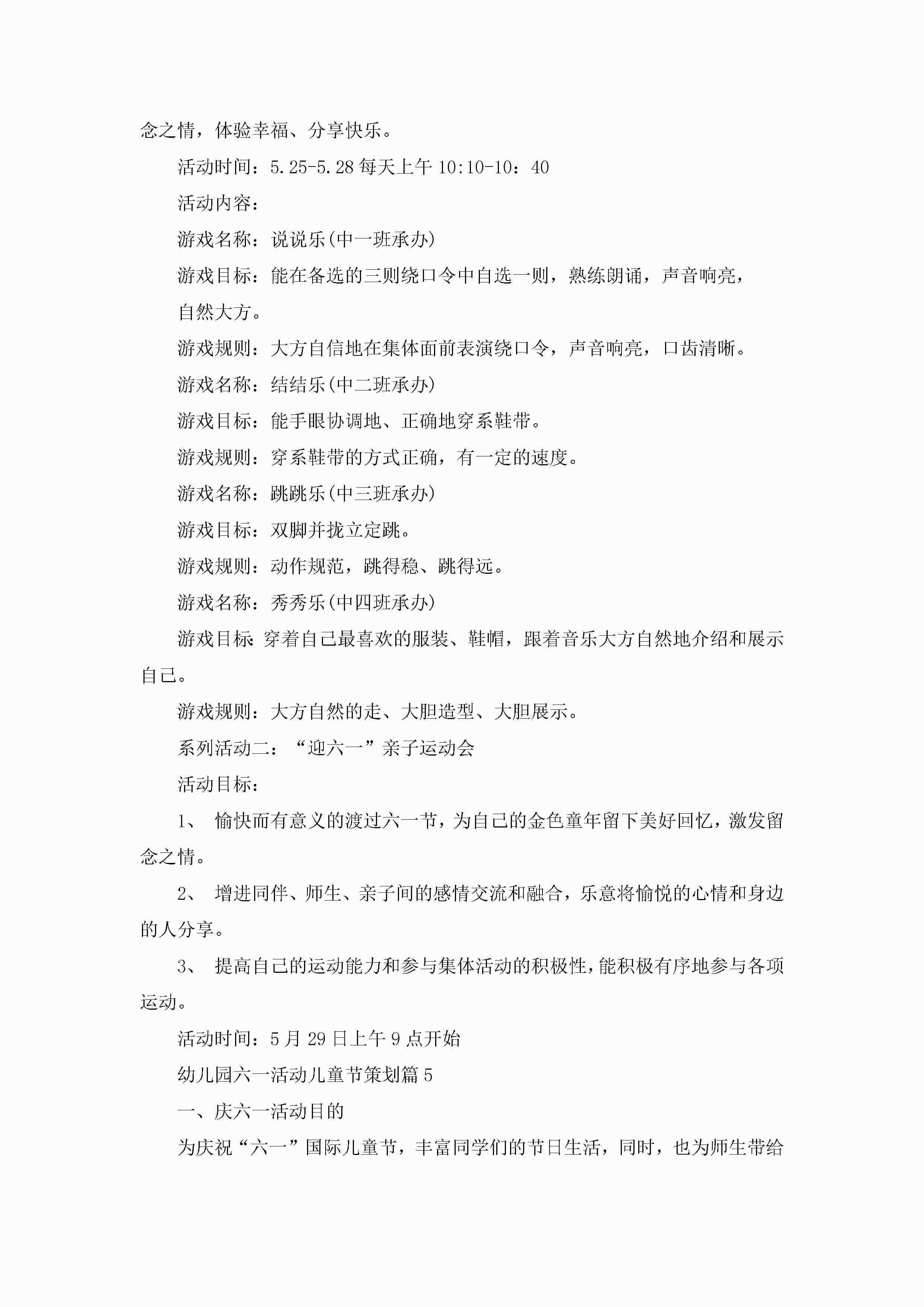 幼儿园六一活动儿童节策划5篇jugei3月23日 01:53发布关注228 幼儿园六一活动儿童节策划5篇此内容为付费资源,请付费后查看¥10.9 单篇文档限时特惠¥15个人会员开通企业会员开通立即下载无需登陆!可直接快捷下载单个模板付费资源© 版权声明THE ENDWord模板# 实用文档# 策划书# 活动策划# 幼儿园六一活动儿童节策划 如有问题,可点击最底部“联系我们”联系客服 分享QQ空间微博QQ好友海报分享复制链接收藏