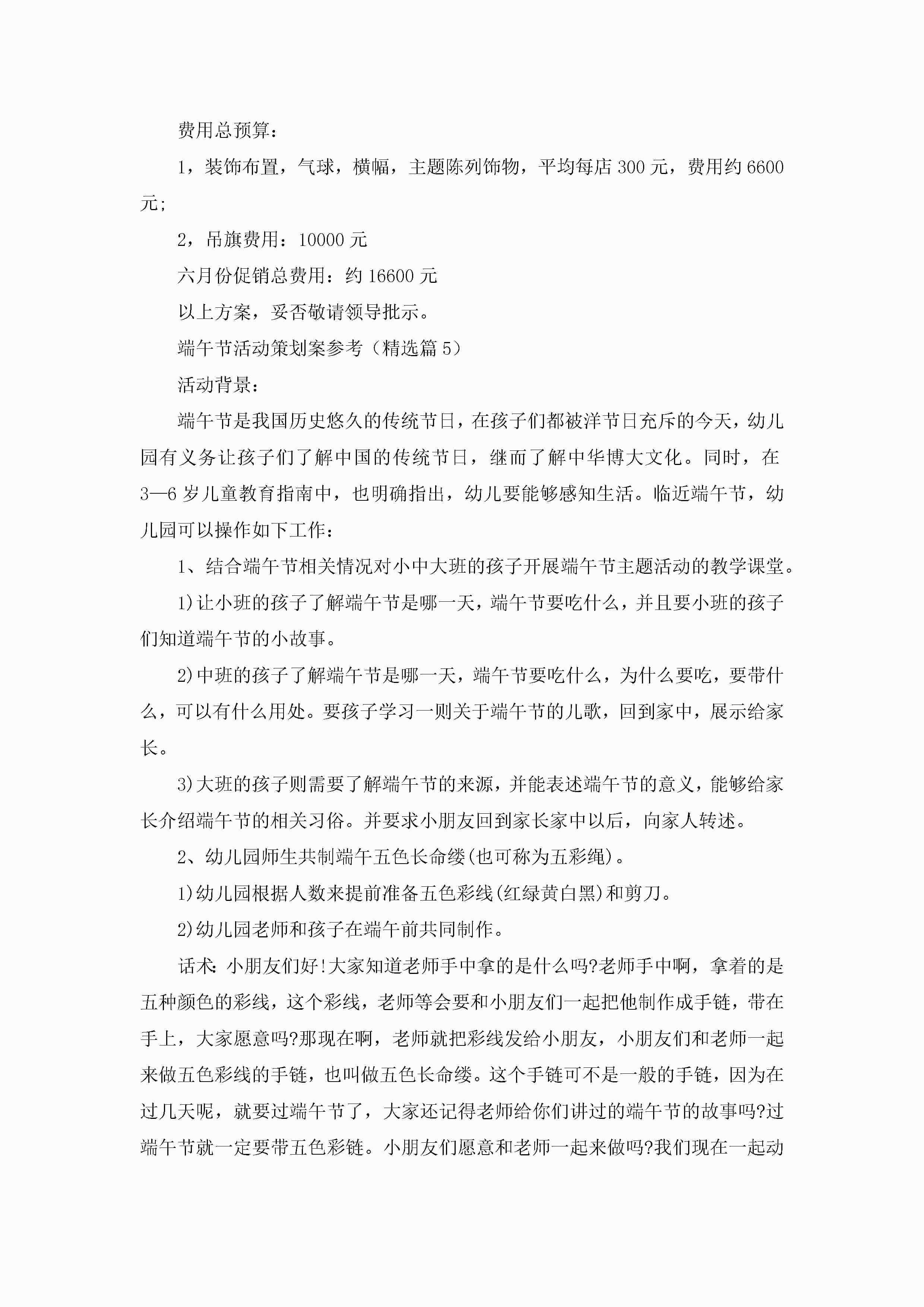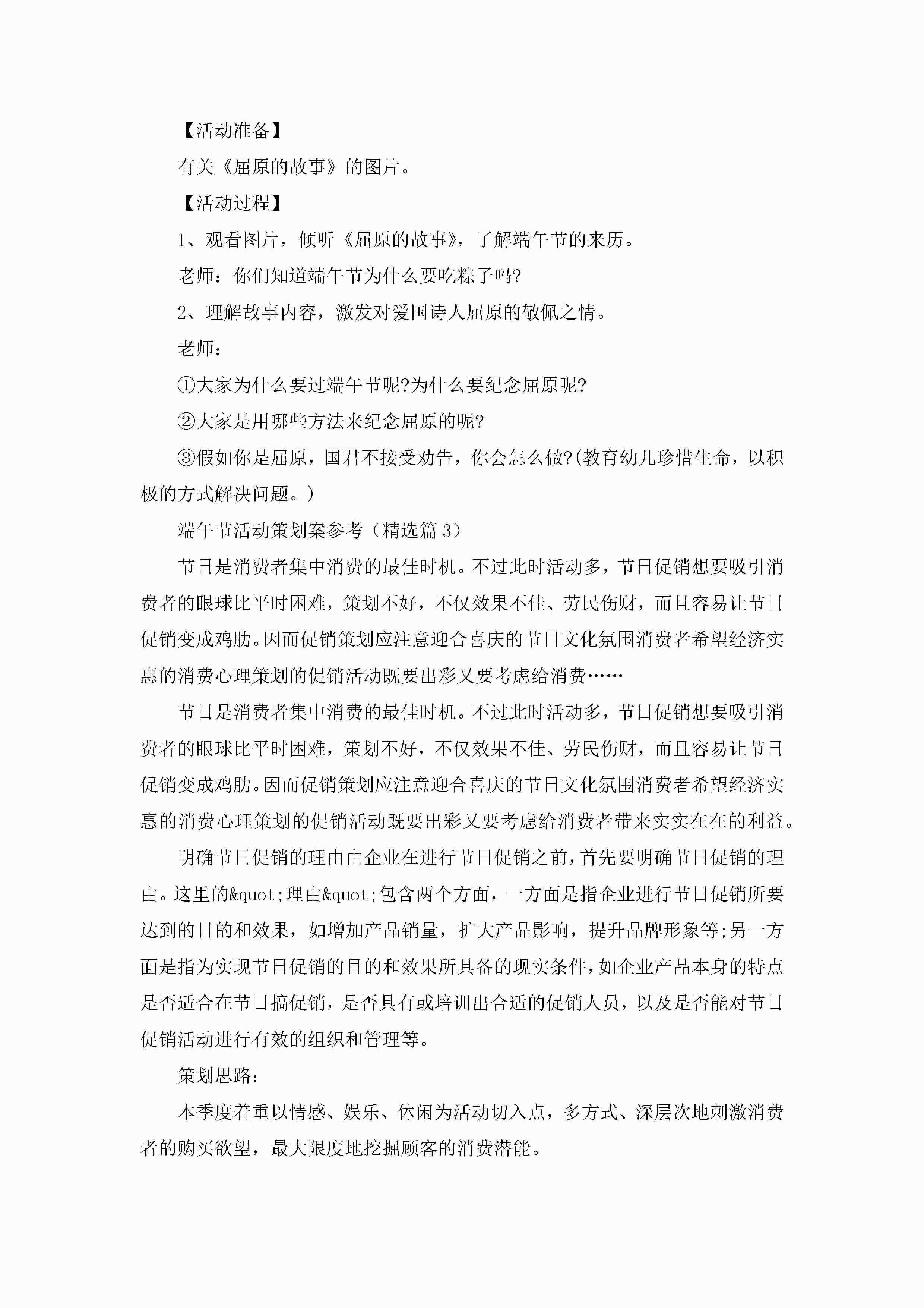 端午节活动策划案参考5篇jugei3月23日 01:53发布关注195 端午节活动策划案参考5篇此内容为付费资源,请付费后查看¥10.9 单篇文档限时特惠¥15个人会员开通企业会员开通立即下载无需登陆!可直接快捷下载单个模板付费资源© 版权声明THE ENDWord模板# 实用文档# 策划书# 活动策划# 端午节活动策划案参考 如有问题,可点击最底部“联系我们”联系客服 分享QQ空间微博QQ好友海报分享复制链接收藏
