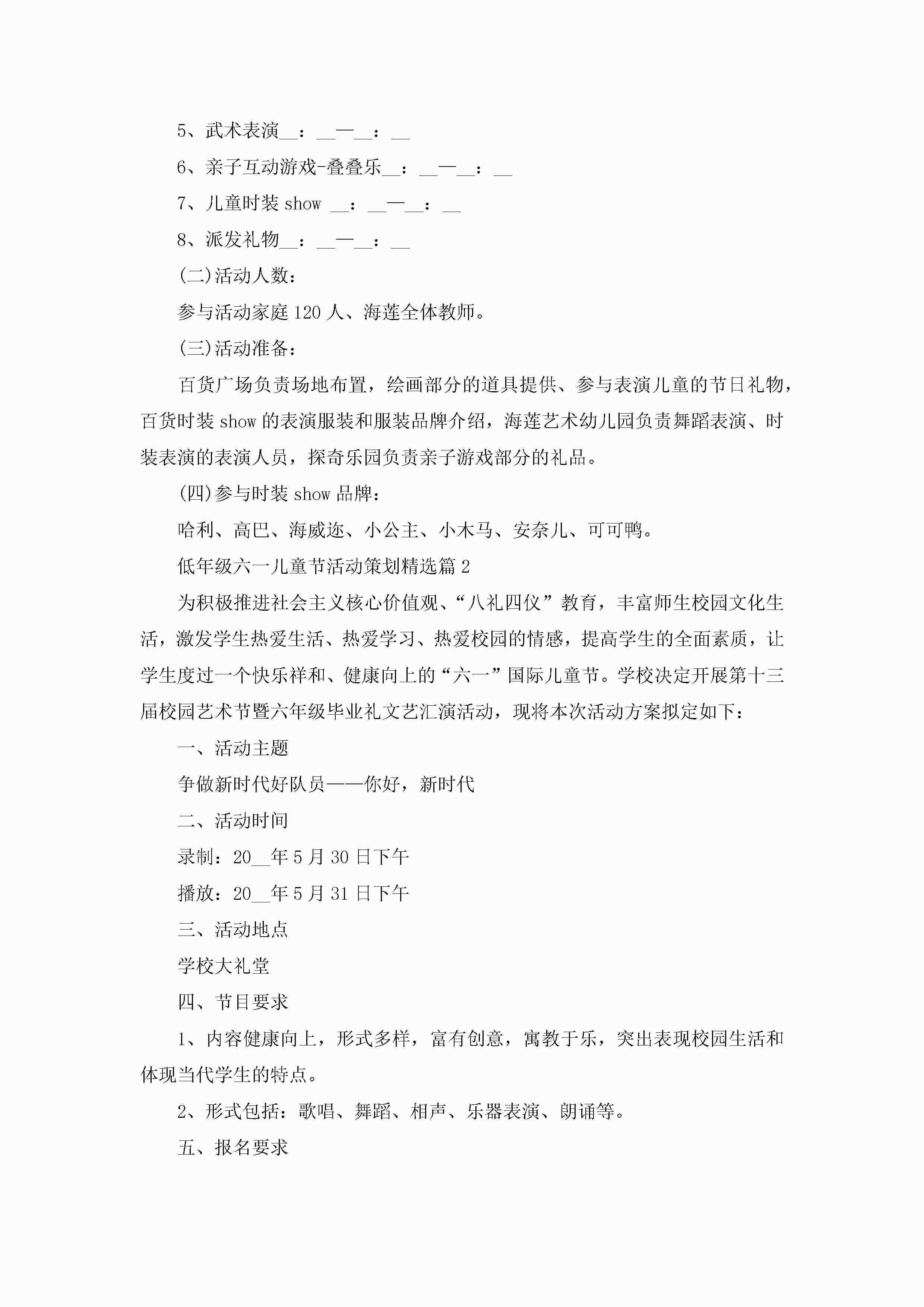 低年级六一儿童节活动策划5篇jugei3月23日 01:53发布关注324 低年级六一儿童节活动策划5篇此内容为付费资源,请付费后查看¥10.9 单篇文档限时特惠¥15个人会员开通企业会员开通立即下载无需登陆!可直接快捷下载单个模板付费资源© 版权声明THE ENDWord模板# 实用文档# 策划书# 工作文档# 活动策划 如有问题,可点击最底部“联系我们”联系客服 分享QQ空间微博QQ好友海报分享复制链接收藏