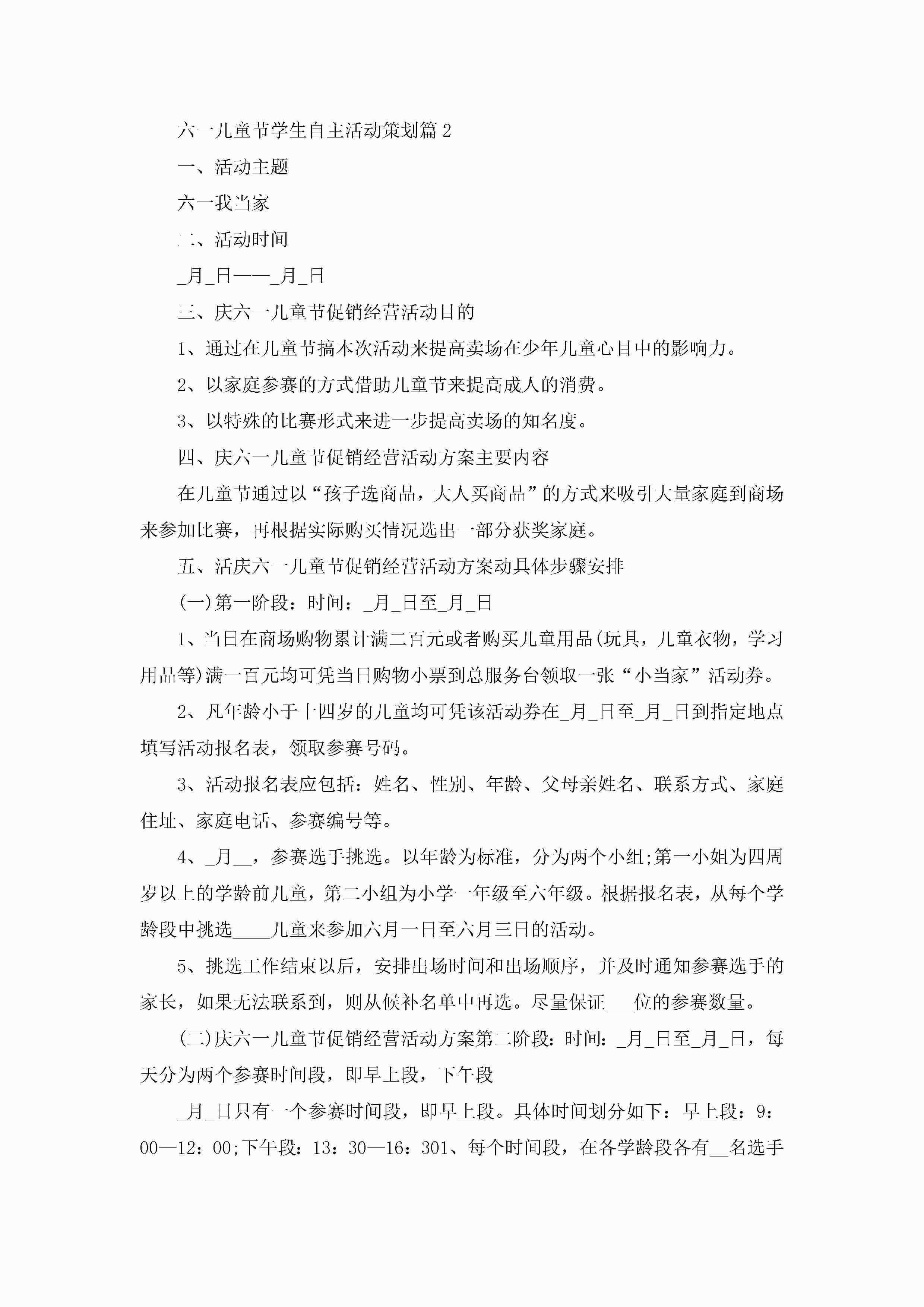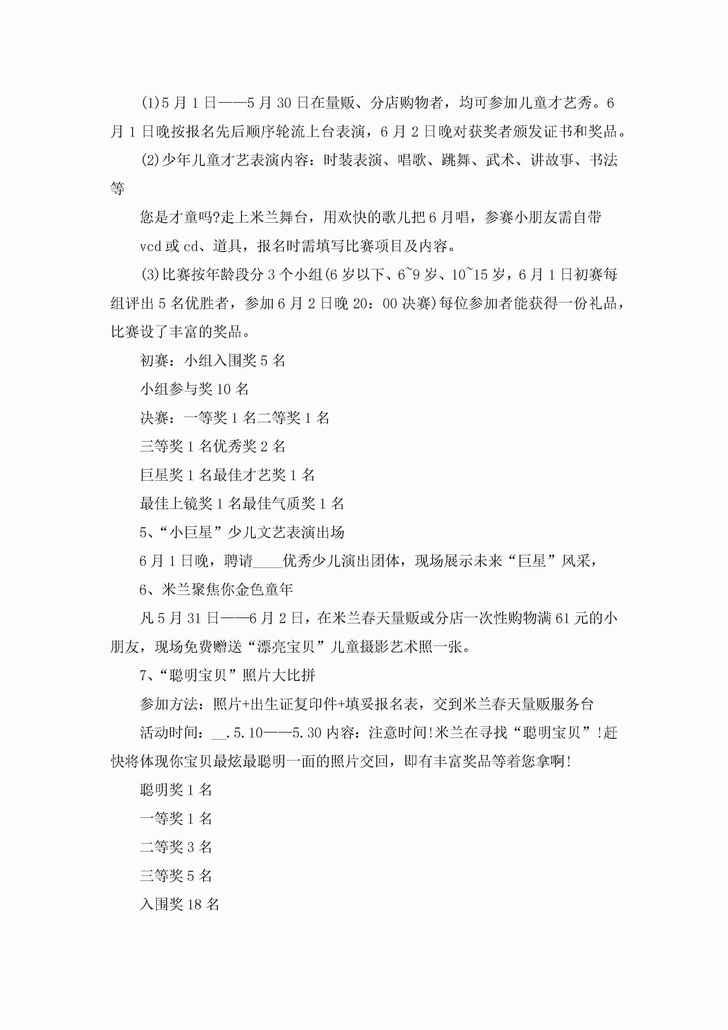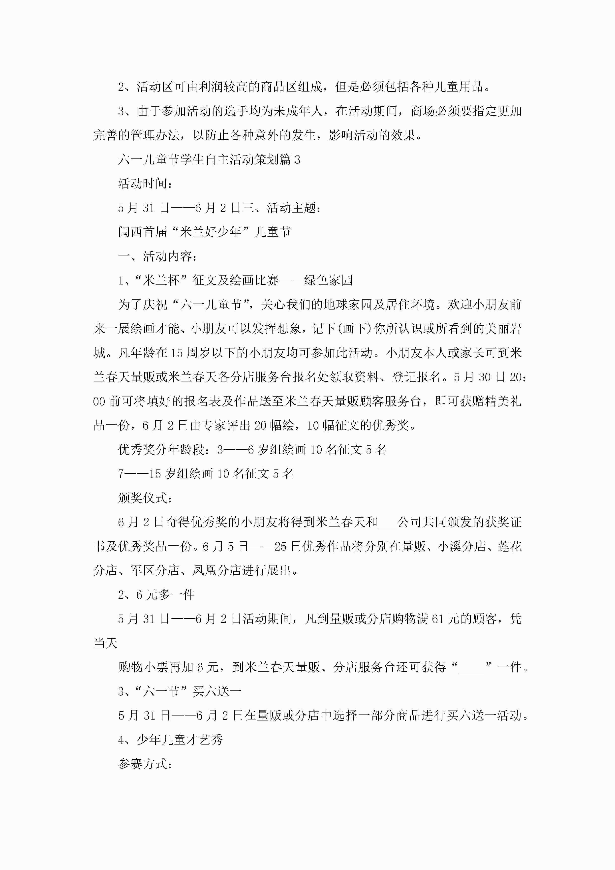 六一儿童节学生自主活动策划5篇jugei3月23日 01:53发布关注256 六一儿童节学生自主活动策划5篇此内容为付费资源,请付费后查看¥10.9 单篇文档限时特惠¥15个人会员开通企业会员开通立即下载无需登陆!可直接快捷下载单个模板付费资源© 版权声明THE ENDWord模板# 实用文档# 策划书# 工作文档# 活动策划 如有问题,可点击最底部“联系我们”联系客服 分享QQ空间微博QQ好友海报分享复制链接收藏