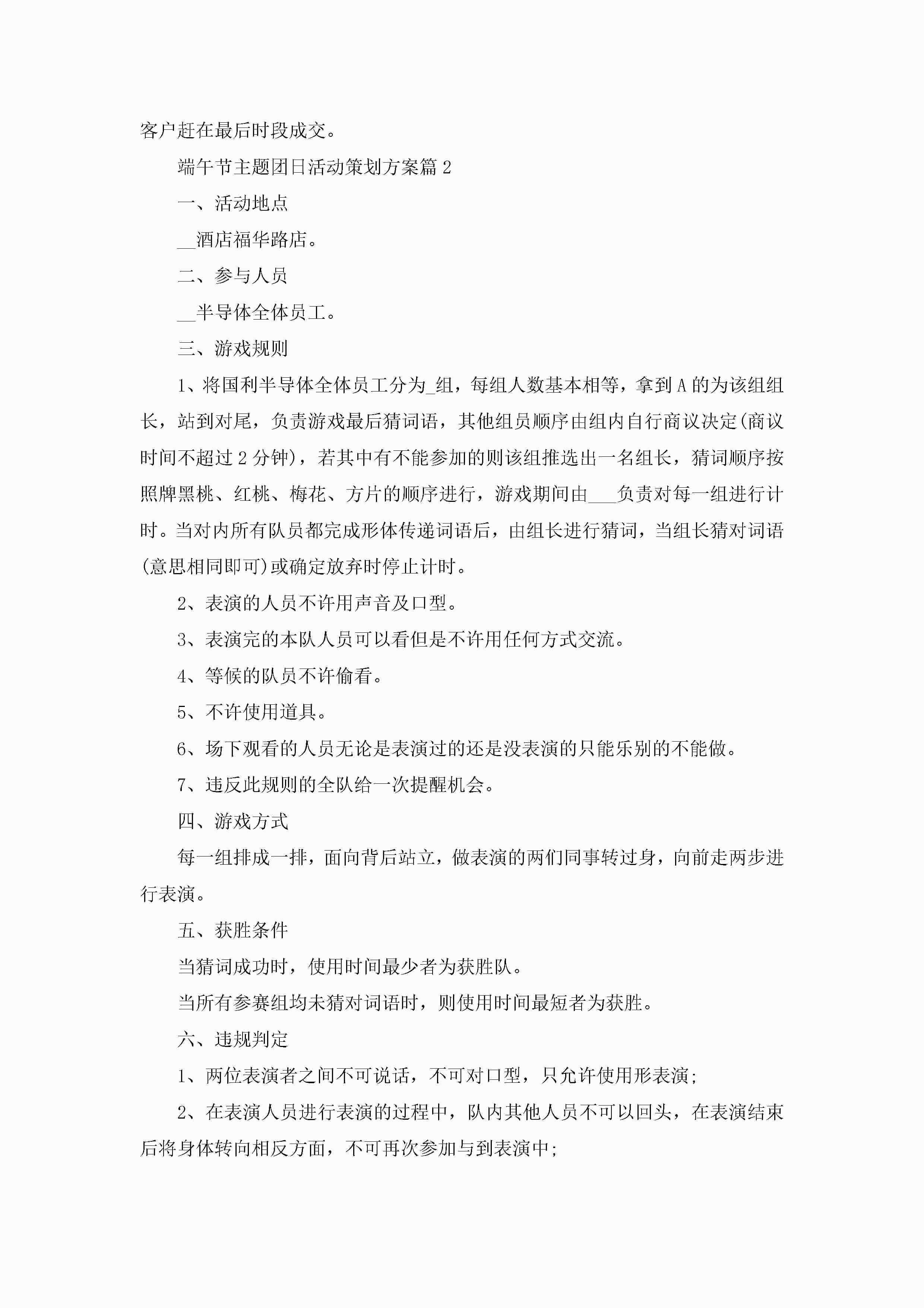 端午节主题团日活动策划方案5篇jugei3月23日 01:53发布关注287 端午节主题团日活动策划方案5篇此内容为付费资源,请付费后查看¥10.9 单篇文档限时特惠¥15个人会员开通企业会员开通立即下载无需登陆!可直接快捷下载单个模板付费资源© 版权声明THE ENDWord模板# 实用文档# 策划书# 活动策划# 端午节主题团日活动策划方案 如有问题,可点击最底部“联系我们”联系客服 分享QQ空间微博QQ好友海报分享复制链接收藏