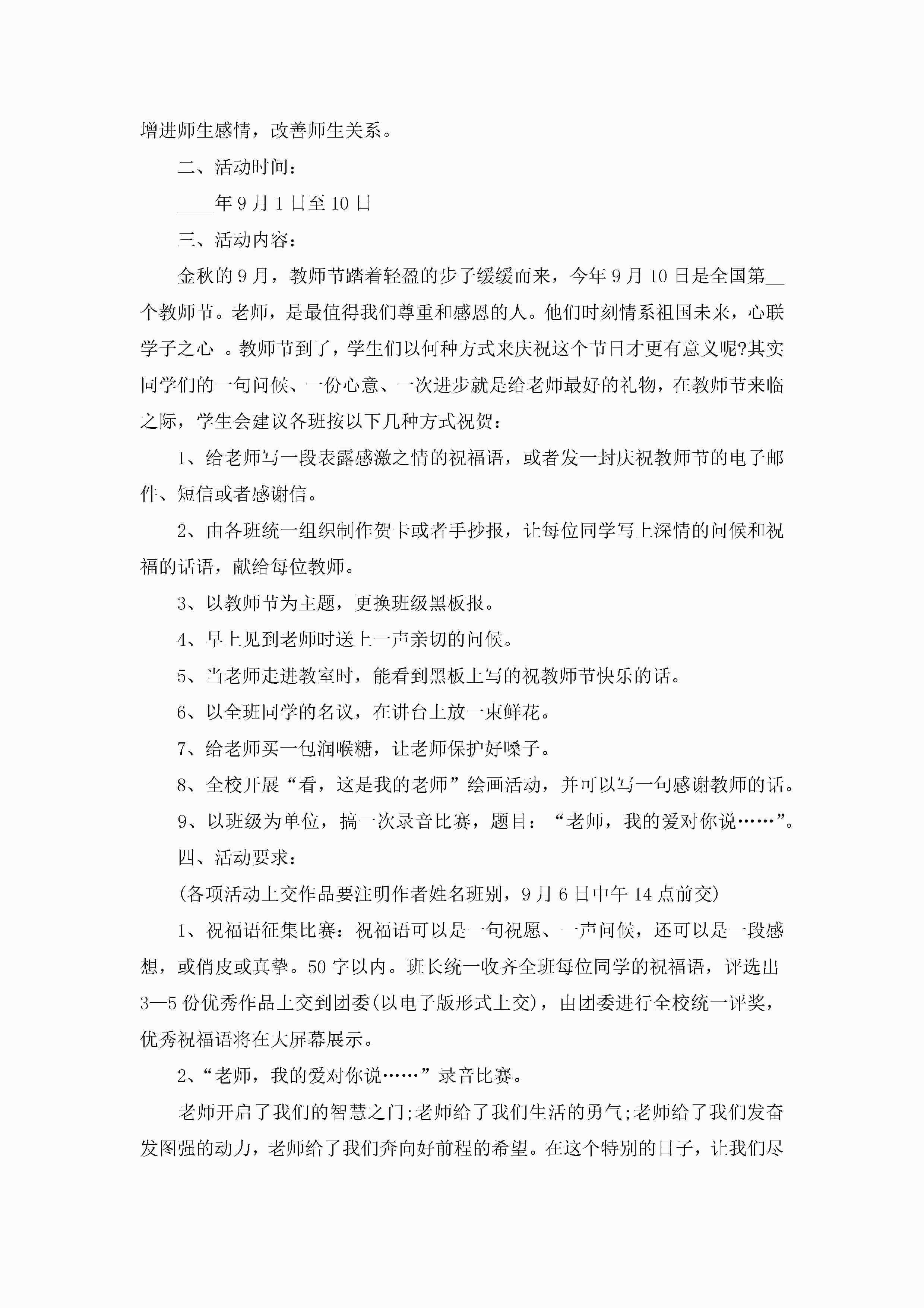 教师节风采活动策划书7篇jugei3月23日 01:53发布关注374 教师节风采活动策划书7篇此内容为付费资源,请付费后查看¥10.9 单篇文档限时特惠¥15个人会员开通企业会员开通立即下载无需登陆!可直接快捷下载单个模板付费资源© 版权声明THE ENDWord模板# 实用文档# 策划书# 工作文档# 活动策划# 教师节风采活动策划书 如有问题,可点击最底部“联系我们”联系客服 分享QQ空间微博QQ好友海报分享复制链接收藏