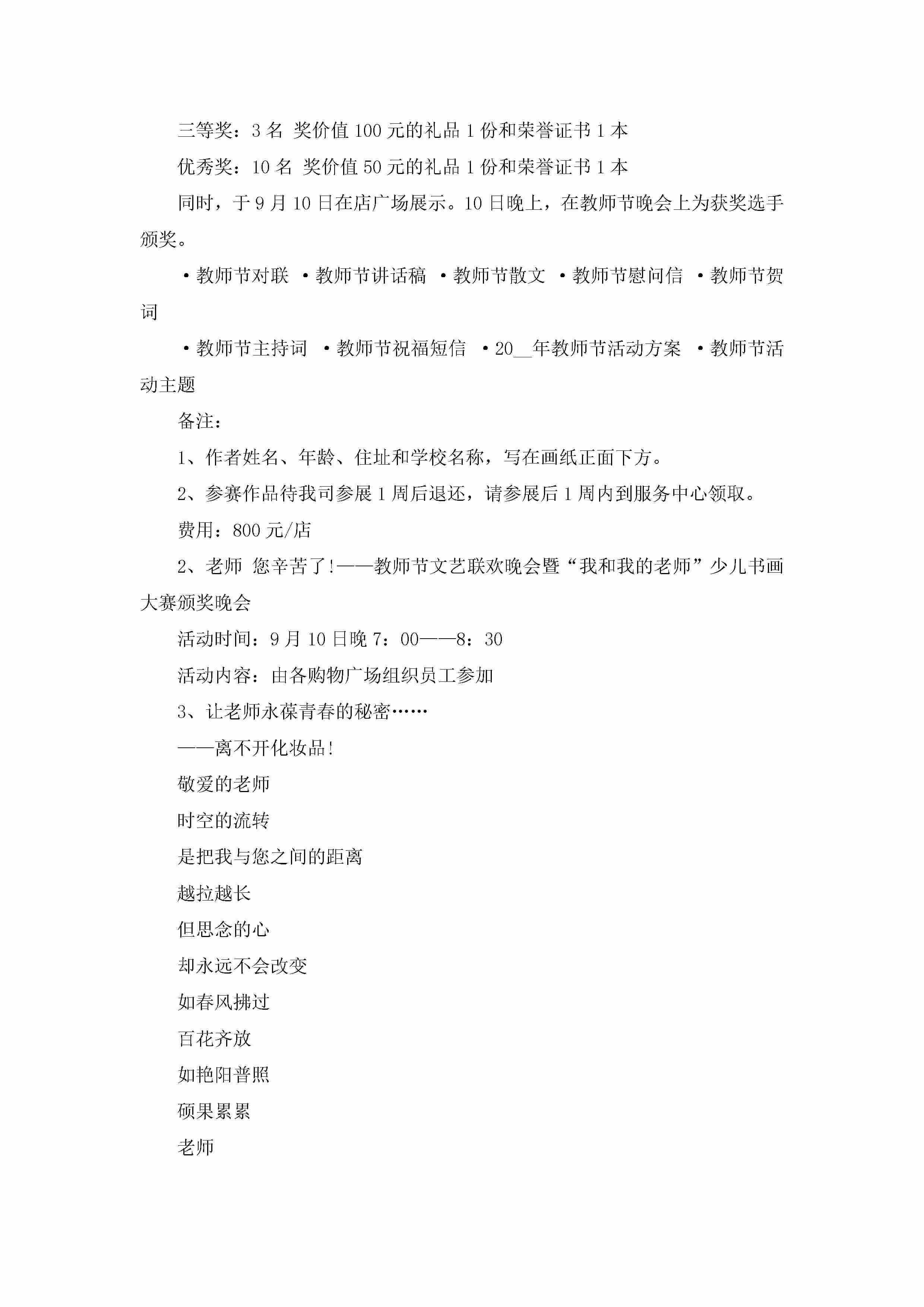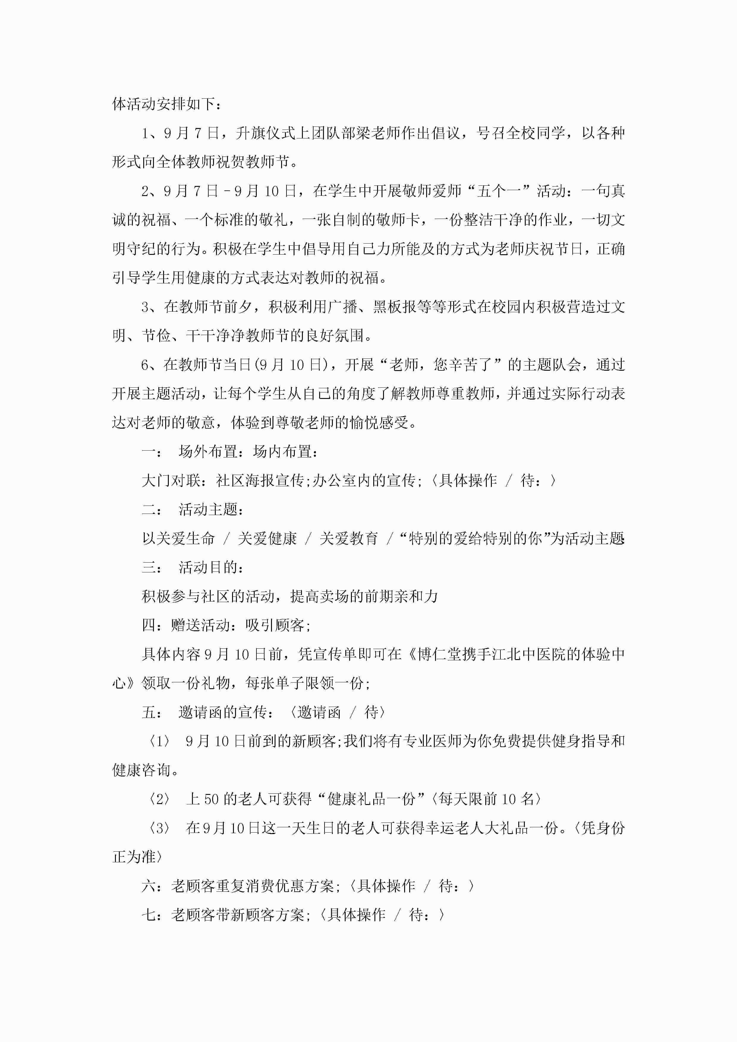 教师节庆活动策划方案7篇jugei3月23日 01:53发布关注206 教师节庆活动策划方案7篇此内容为付费资源,请付费后查看¥10.9 单篇文档限时特惠¥15个人会员开通企业会员开通立即下载无需登陆!可直接快捷下载单个模板付费资源© 版权声明THE ENDWord模板# 实用文档# 策划书# 活动策划# 教师节庆活动策划方案 如有问题,可点击最底部“联系我们”联系客服 分享QQ空间微博QQ好友海报分享复制链接收藏