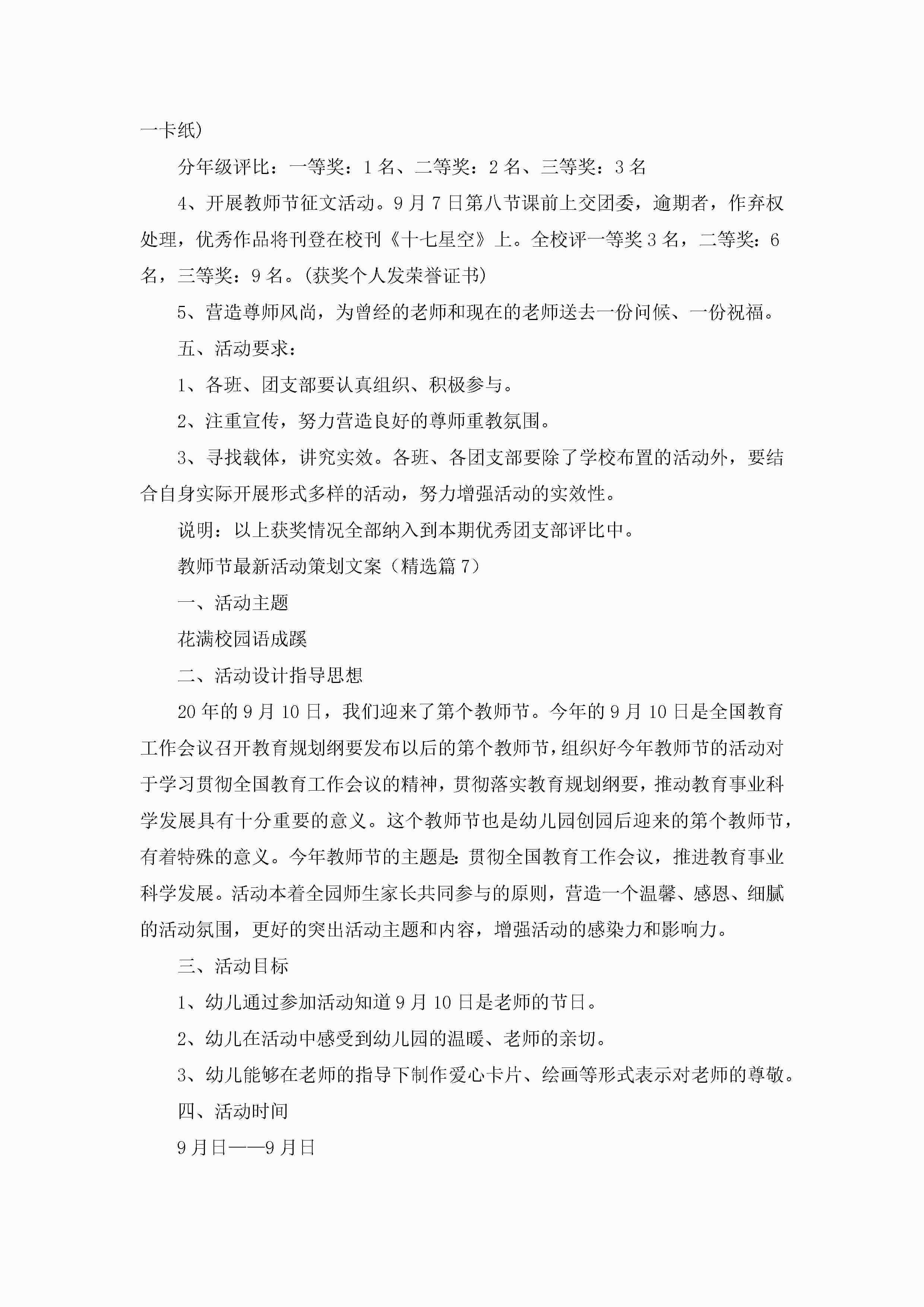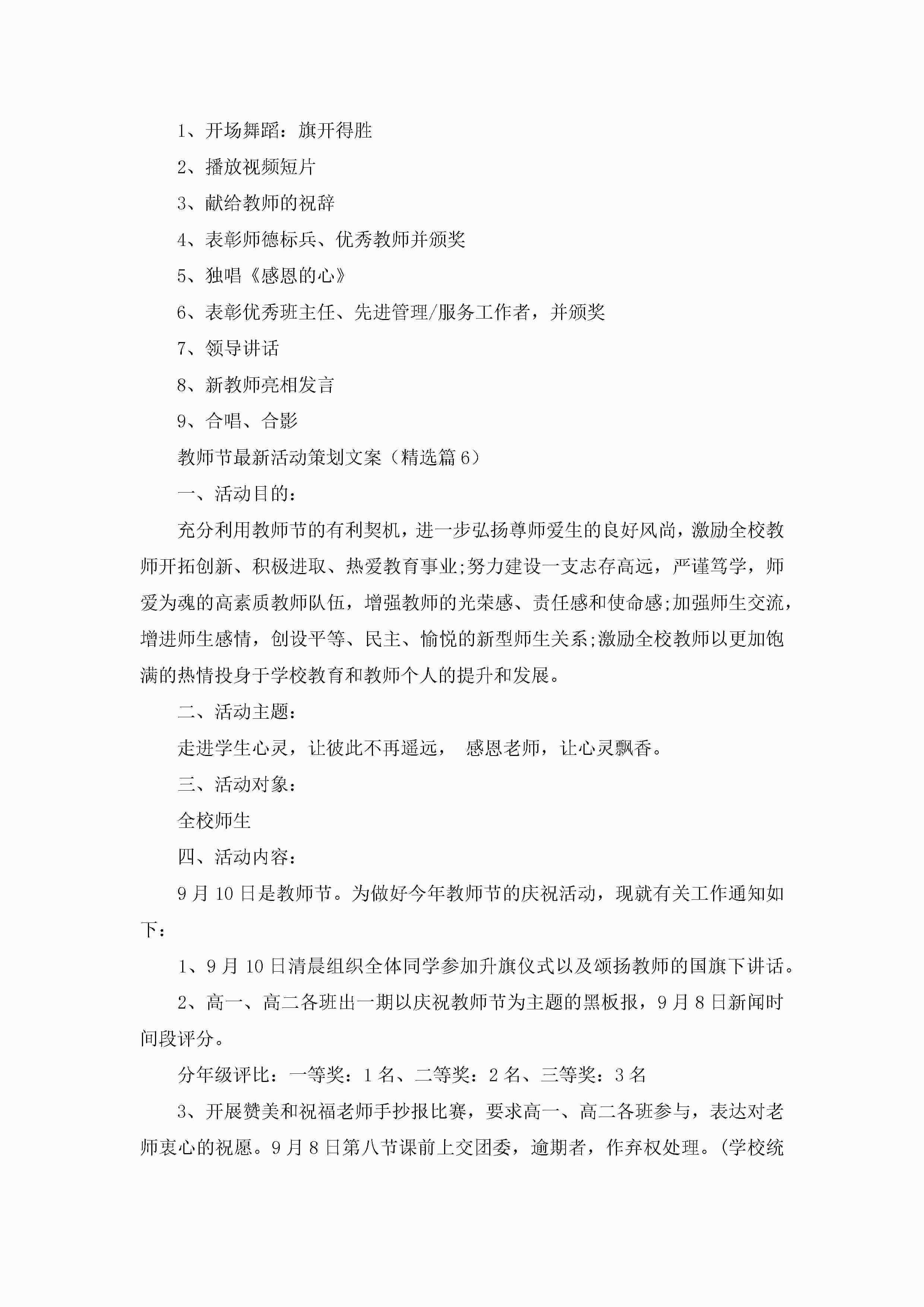 教师节最新活动策划文案7篇jugei3月23日 01:53发布关注236 教师节最新活动策划文案7篇此内容为付费资源,请付费后查看¥10.9 单篇文档限时特惠¥15个人会员开通企业会员开通立即下载无需登陆!可直接快捷下载单个模板付费资源© 版权声明THE ENDWord模板# 实用文档# 策划书# 活动策划# 教师节活动策划文案 如有问题,可点击最底部“联系我们”联系客服 分享QQ空间微博QQ好友海报分享复制链接收藏