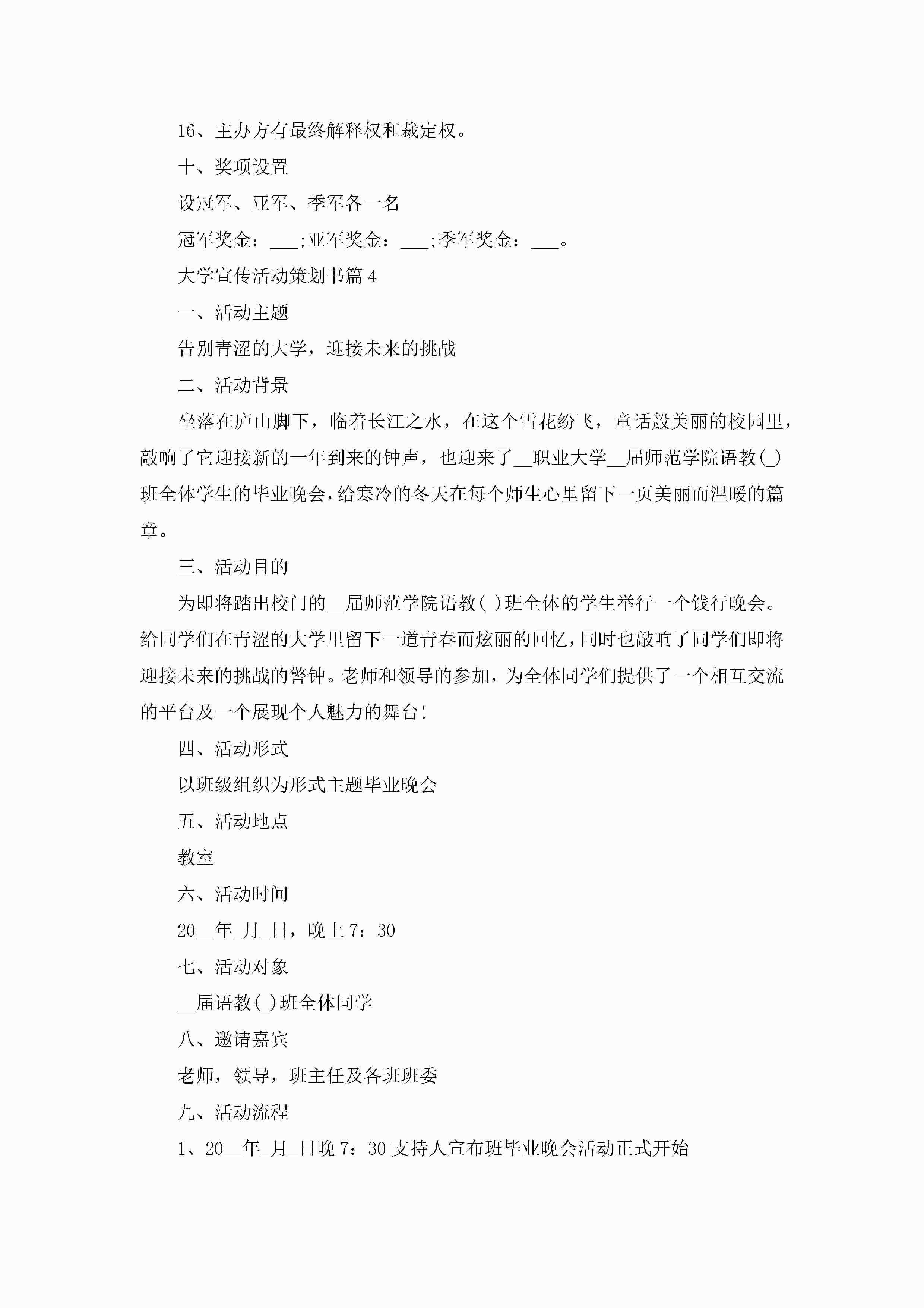 大学宣传活动策划书5篇jugei3月23日 01:54发布关注263 大学宣传活动策划书5篇此内容为付费资源,请付费后查看¥10.9 单篇文档限时特惠¥15个人会员开通企业会员开通立即下载无需登陆!可直接快捷下载单个模板付费资源© 版权声明THE ENDWord模板# 实用文档# 策划书# 工作文档# 活动策划 如有问题,可点击最底部“联系我们”联系客服 分享QQ空间微博QQ好友海报分享复制链接收藏