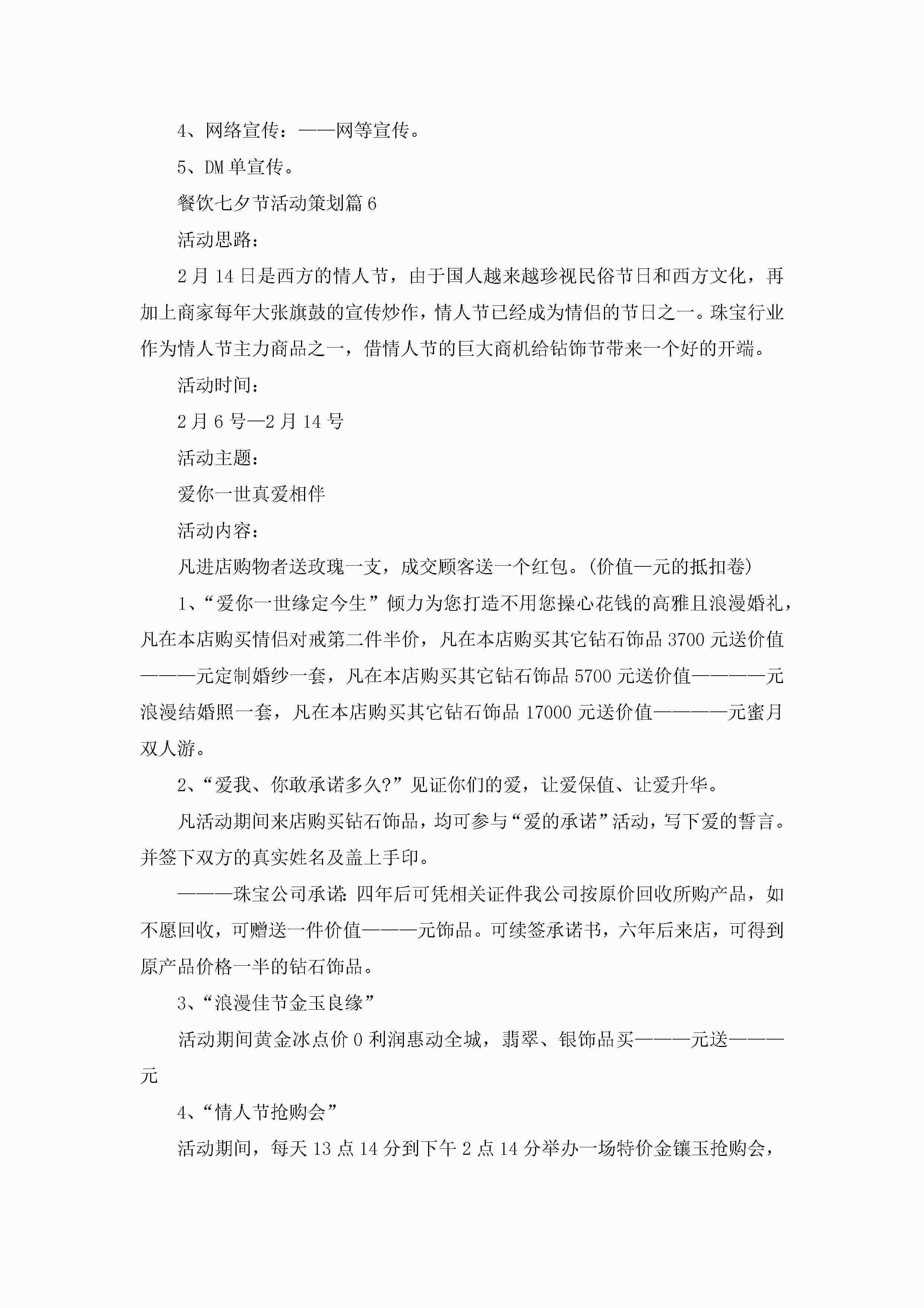 餐饮七夕节活动策划7篇jugei3月23日 01:54发布关注209 餐饮七夕节活动策划7篇此内容为付费资源,请付费后查看¥10.9 单篇文档限时特惠¥15个人会员开通企业会员开通立即下载无需登陆!可直接快捷下载单个模板付费资源© 版权声明THE ENDWord模板# 实用文档# 策划书# 活动策划# 餐饮七夕节活动策划 如有问题,可点击最底部“联系我们”联系客服 分享QQ空间微博QQ好友海报分享复制链接收藏