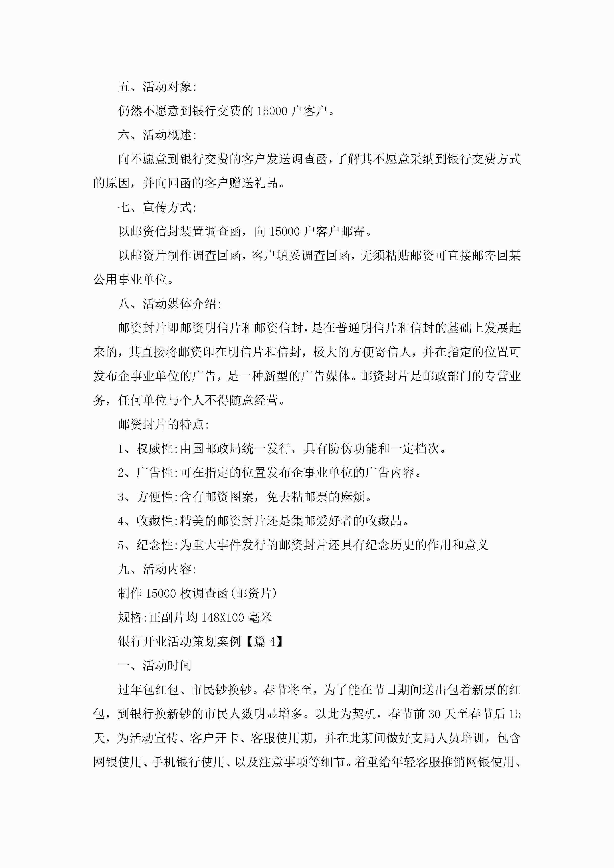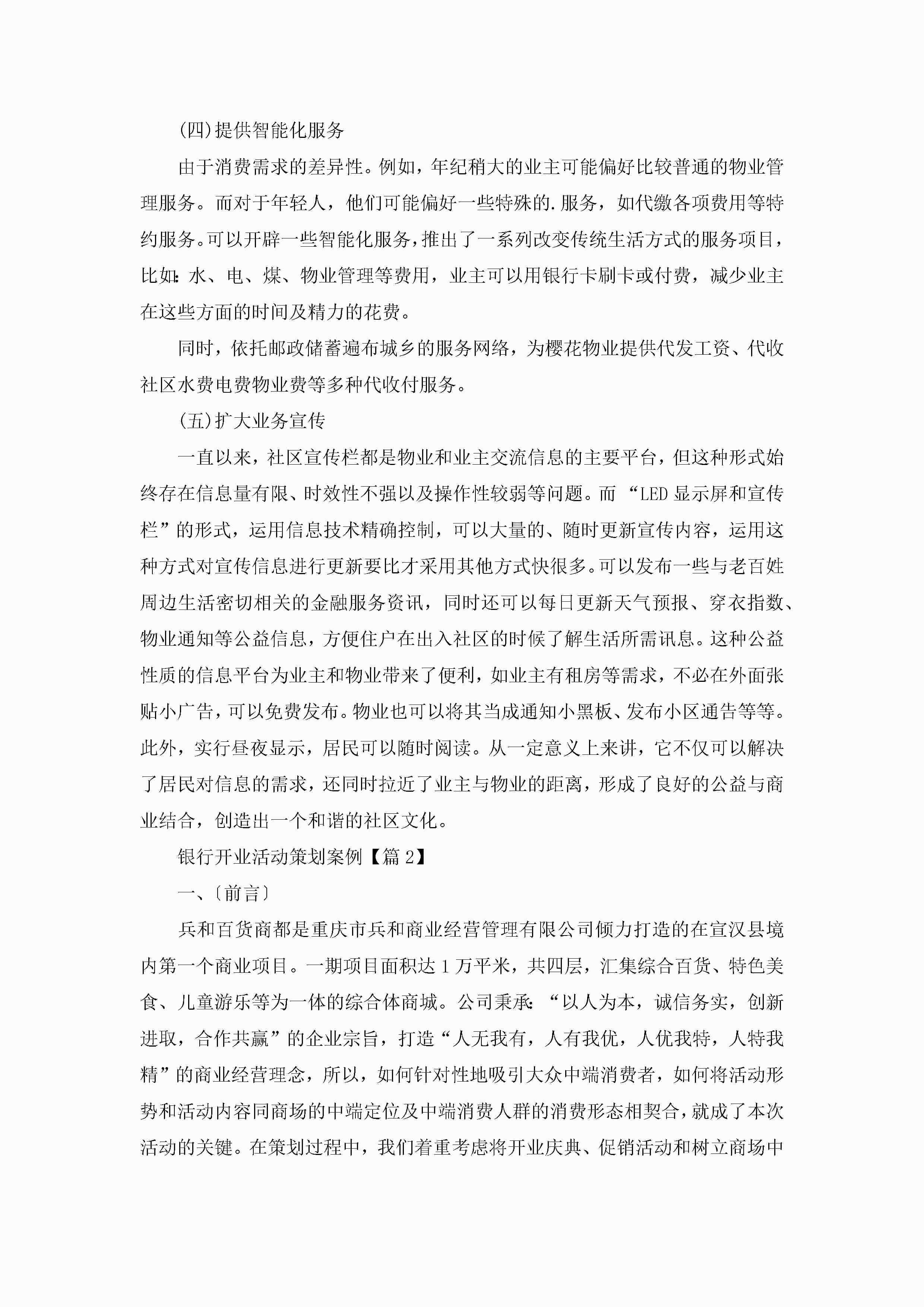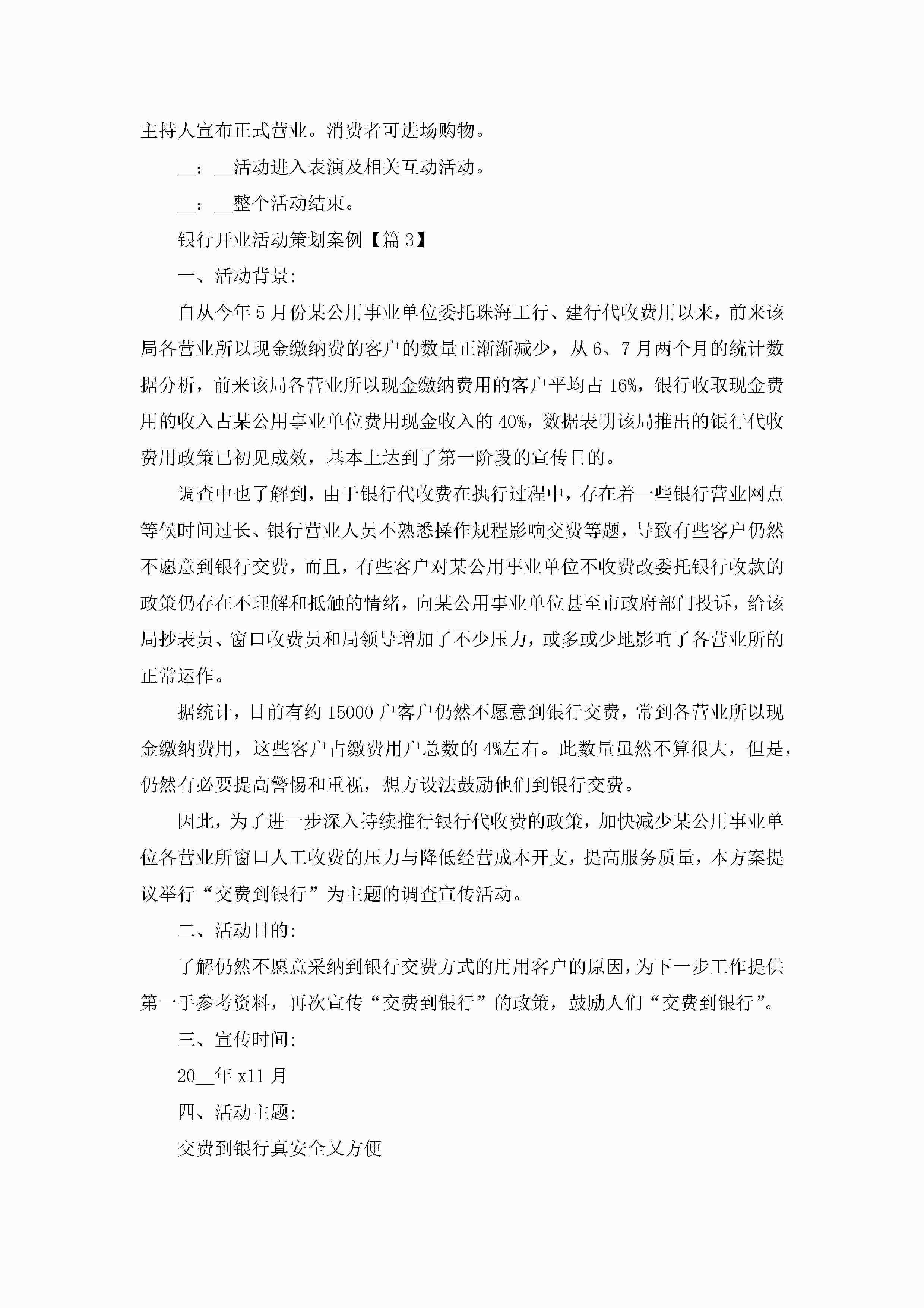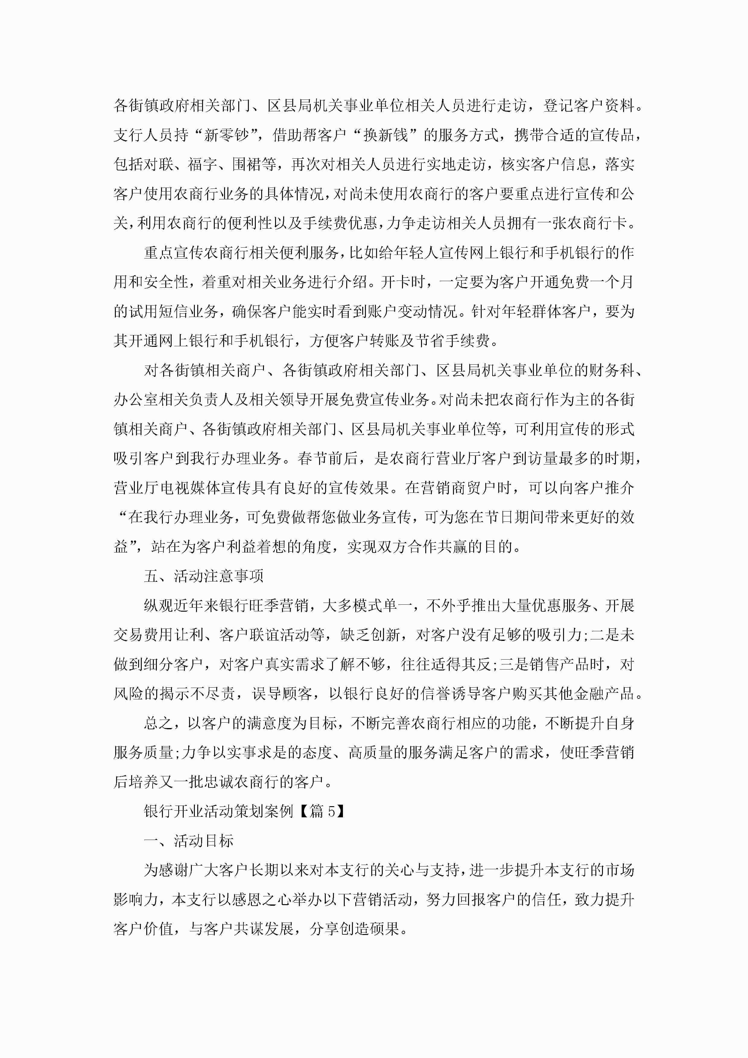 银行开业活动策划案例范文5篇jugei3月23日 01:54发布关注273 银行开业活动策划案例范文5篇此内容为付费资源,请付费后查看¥10.9 单篇文档限时特惠¥15个人会员开通企业会员开通立即下载无需登陆!可直接快捷下载单个模板付费资源© 版权声明THE ENDWord模板# 实用文档# 策划书# 活动策划# 银行开业活动策划案例 如有问题,可点击最底部“联系我们”联系客服 分享QQ空间微博QQ好友海报分享复制链接收藏
