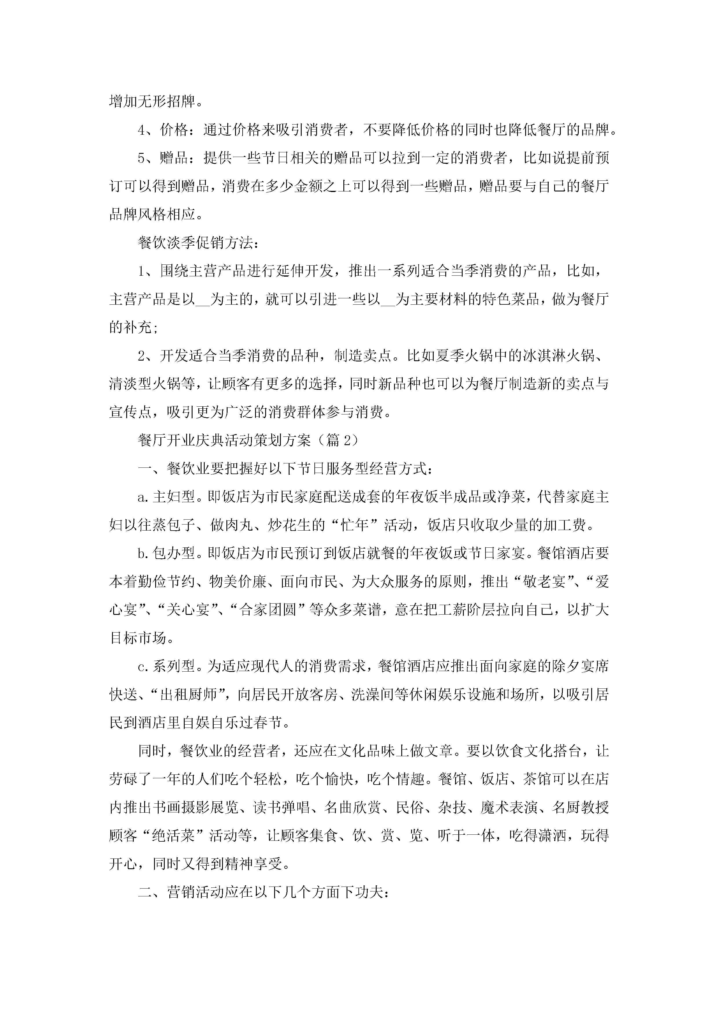 餐厅开业庆典活动策划方案范文5篇(实用)jugei3月23日 01:54发布关注203 餐厅开业庆典活动策划方案范文5篇(实用)此内容为付费资源,请付费后查看¥10.9 单篇文档限时特惠¥15个人会员开通企业会员开通立即下载无需登陆!可直接快捷下载单个模板付费资源© 版权声明THE ENDWord模板# 实用文档# 策划书# 活动策划# 餐厅开业庆典活动策划方案 如有问题,可点击最底部“联系我们”联系客服 分享QQ空间微博QQ好友海报分享复制链接收藏