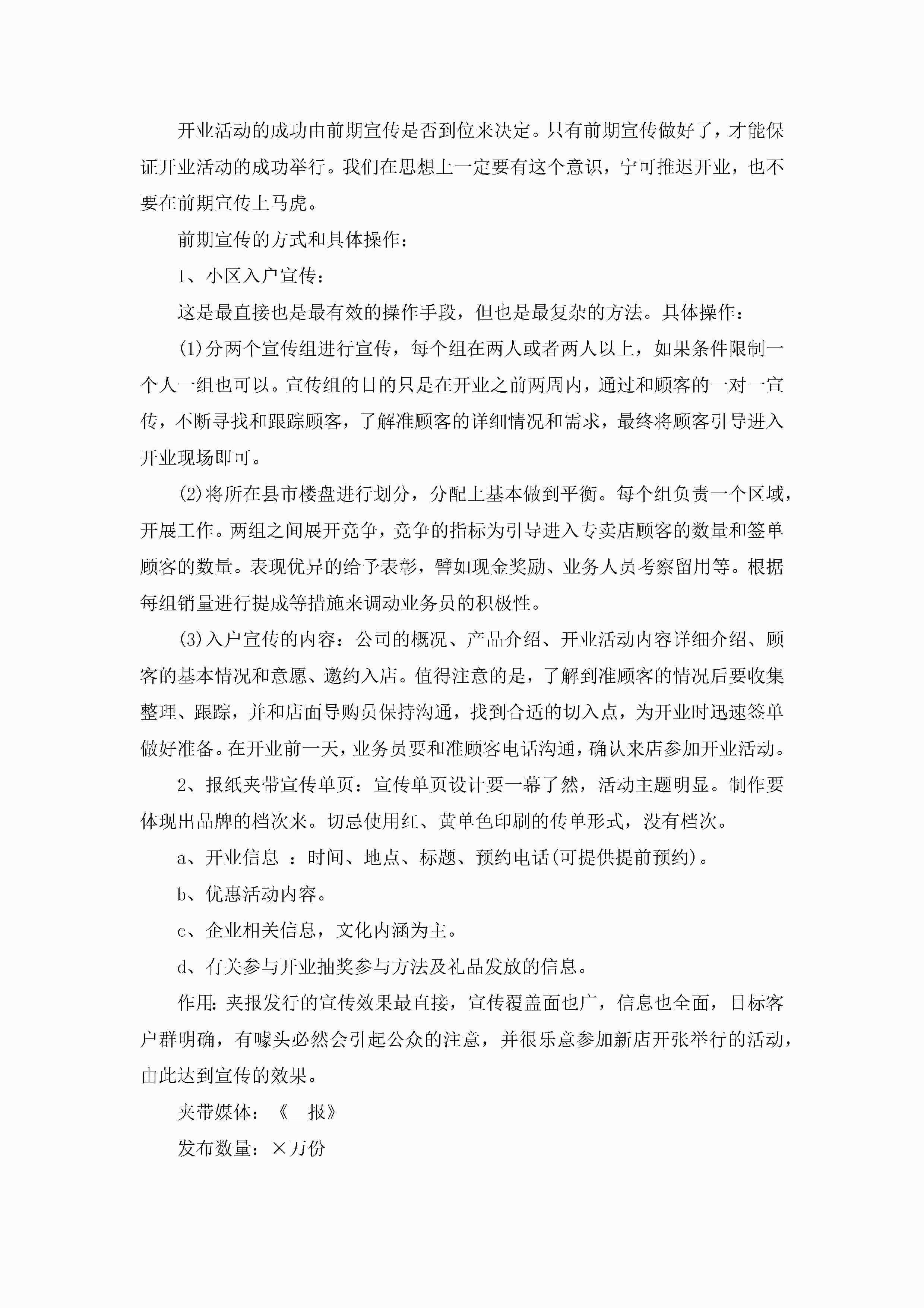 店铺开业营销活动策划范文5篇(精选)jugei3月23日 01:54发布关注211 店铺开业营销活动策划范文5篇(精选)此内容为付费资源,请付费后查看¥10.9 单篇文档限时特惠¥15个人会员开通企业会员开通立即下载无需登陆!可直接快捷下载单个模板付费资源© 版权声明THE ENDWord模板# 实用文档# 策划书# 工作文档# 活动策划 如有问题,可点击最底部“联系我们”联系客服 分享QQ空间微博QQ好友海报分享复制链接收藏