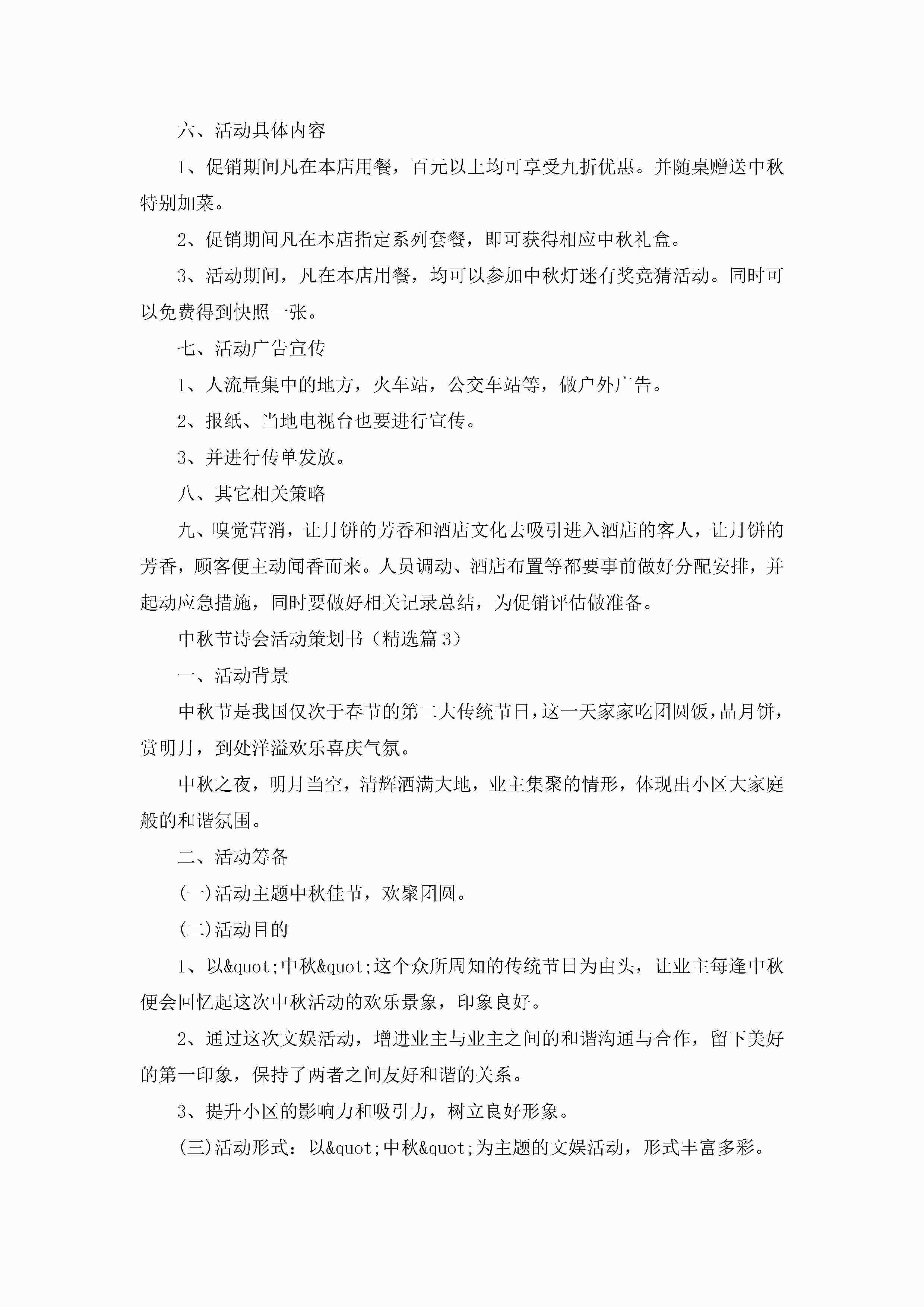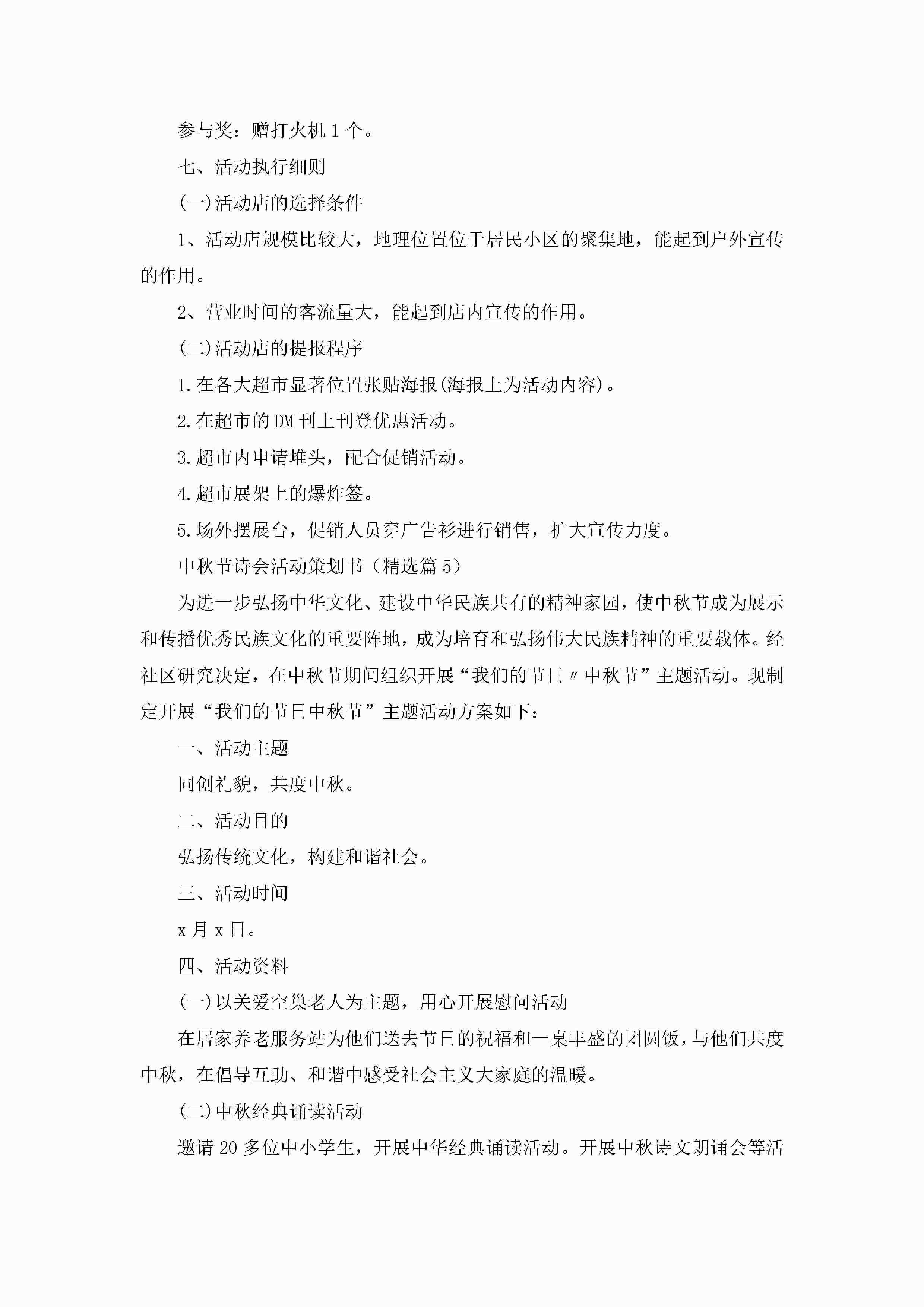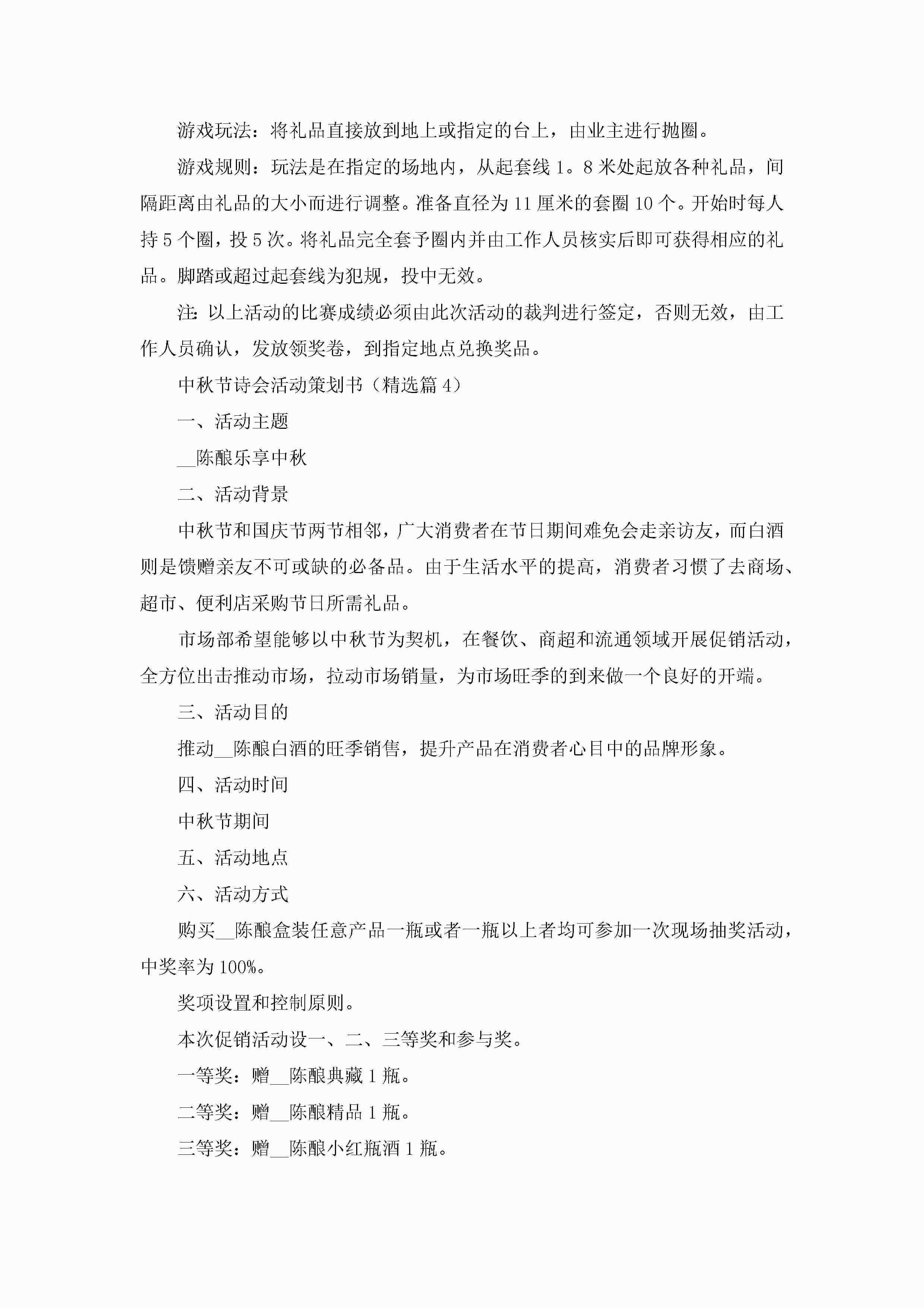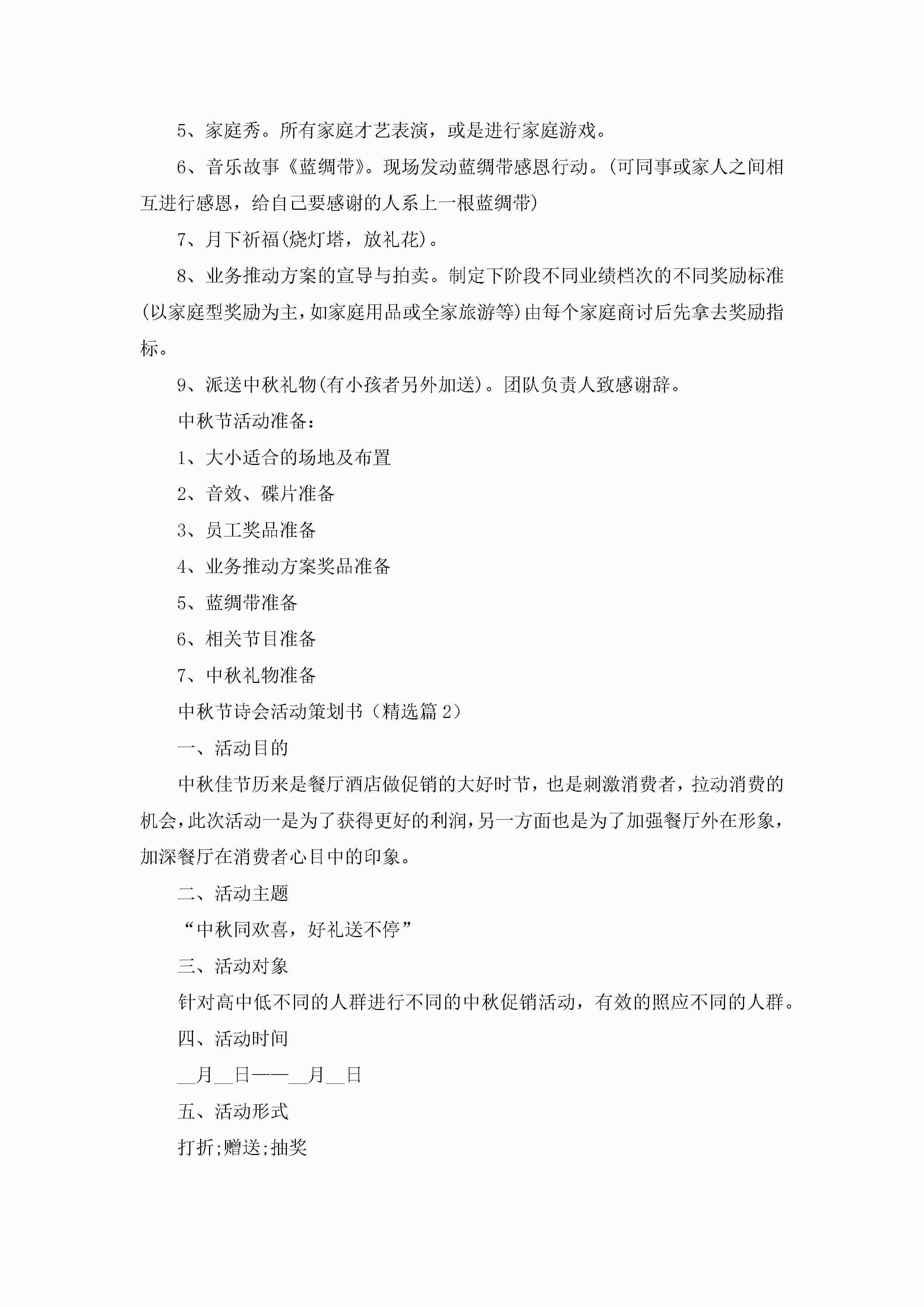 中秋节诗会活动策划书范文5篇(精选)jugei3月23日 01:54发布关注304 中秋节诗会活动策划书范文5篇(精选)此内容为付费资源,请付费后查看¥10.9 单篇文档限时特惠¥15个人会员开通企业会员开通立即下载无需登陆!可直接快捷下载单个模板付费资源© 版权声明THE ENDWord模板# 实用文档# 策划书# 活动策划# 中秋节诗会活动策划书 如有问题,可点击最底部“联系我们”联系客服 分享QQ空间微博QQ好友海报分享复制链接收藏