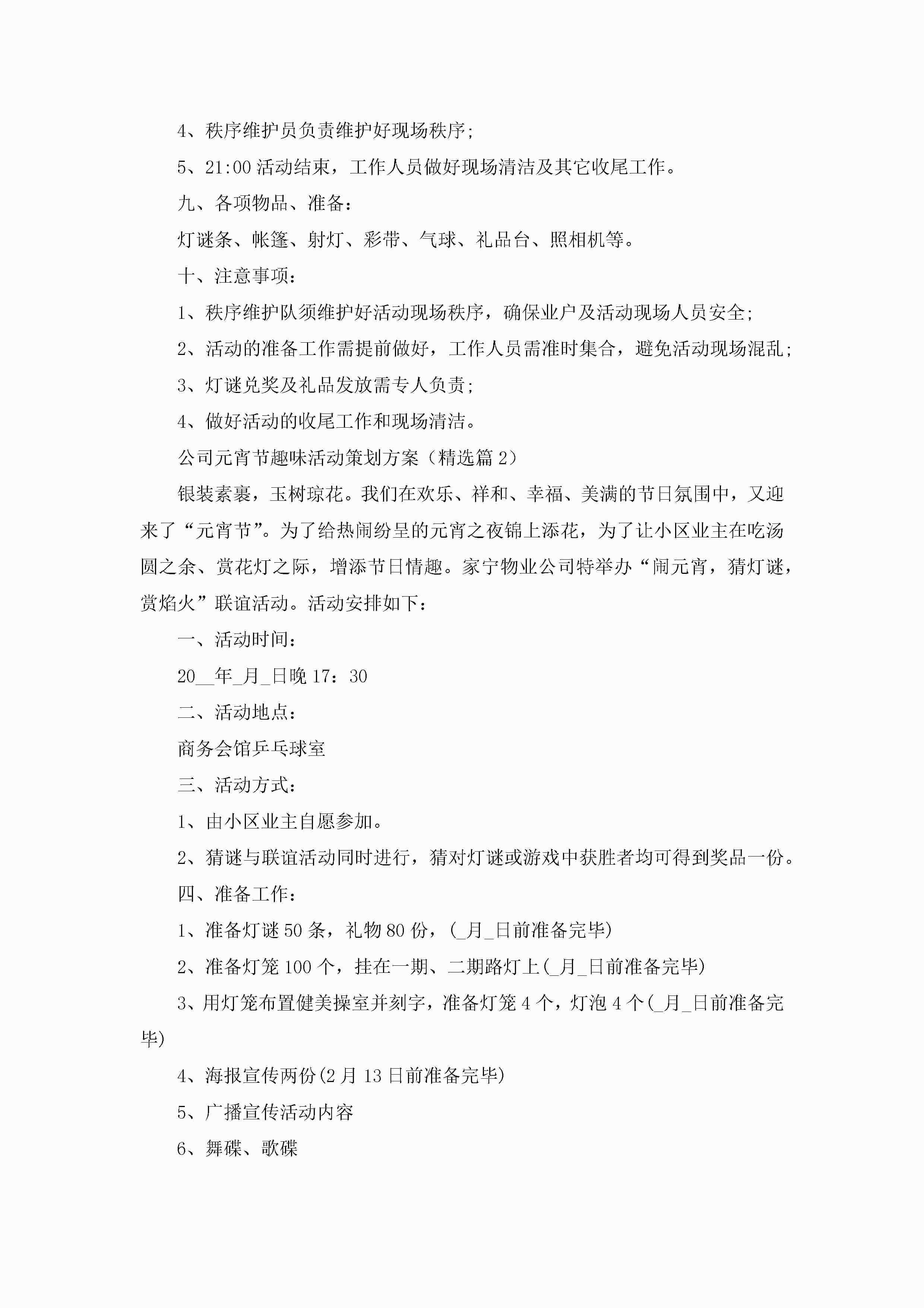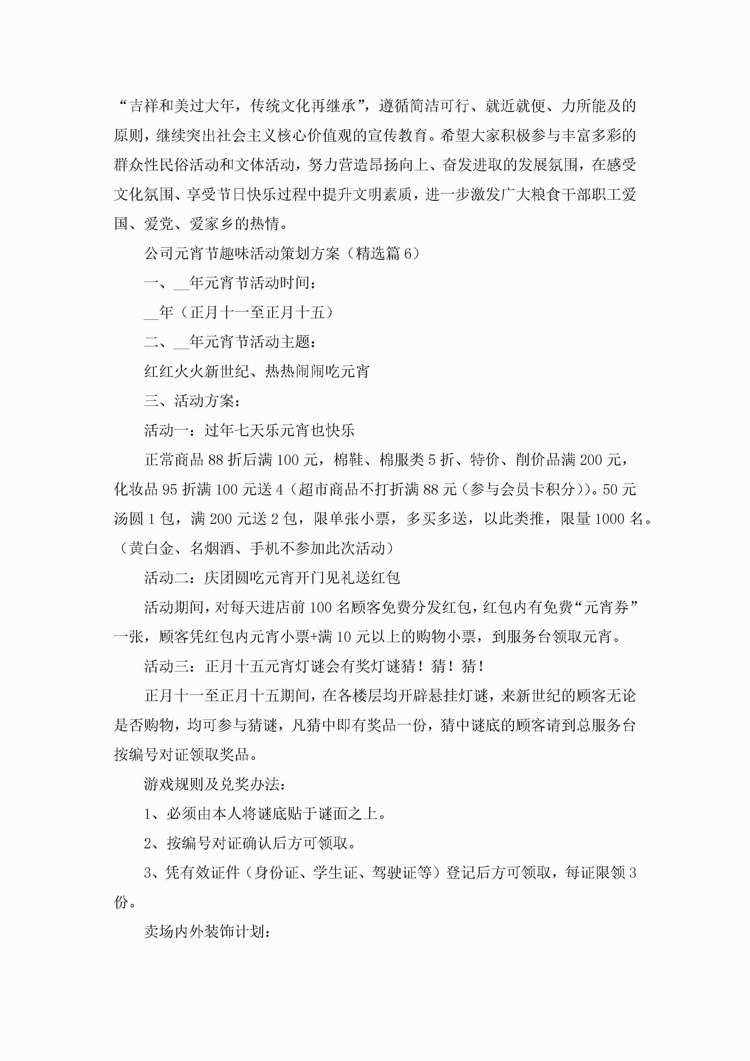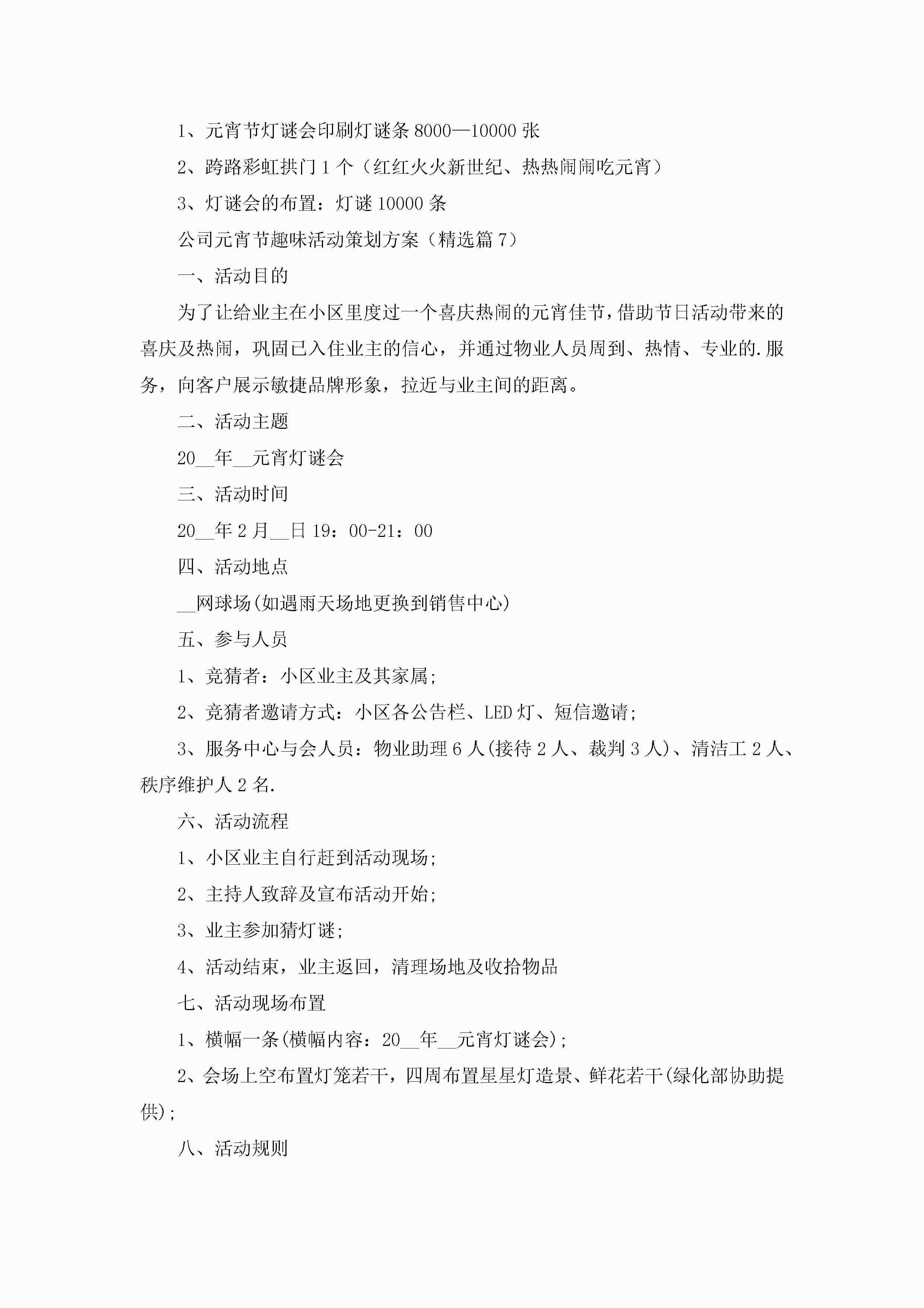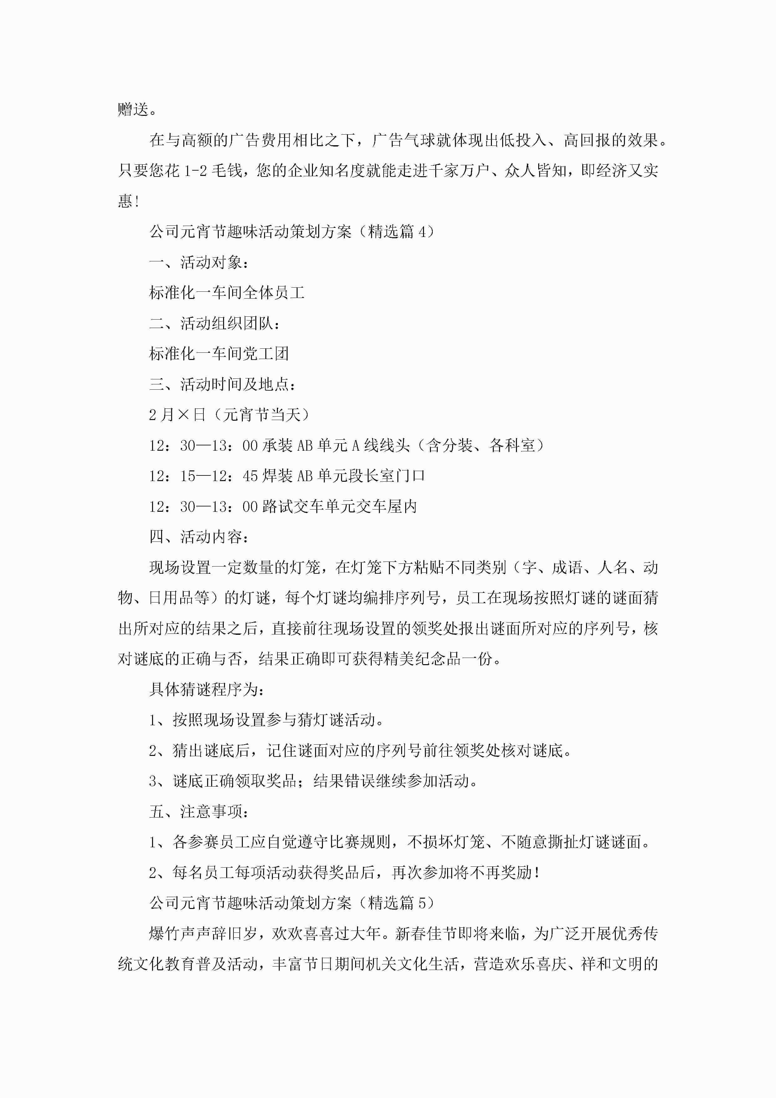 公司元宵节趣味活动策划方案最新7篇jugei3月23日 01:54发布关注252 公司元宵节趣味活动策划方案最新7篇此内容为付费资源,请付费后查看¥10.9 单篇文档限时特惠¥15个人会员开通企业会员开通立即下载无需登陆!可直接快捷下载单个模板付费资源© 版权声明THE ENDWord模板# 实用文档# 策划书# 工作文档# 活动策划 如有问题,可点击最底部“联系我们”联系客服 分享QQ空间微博QQ好友海报分享复制链接收藏