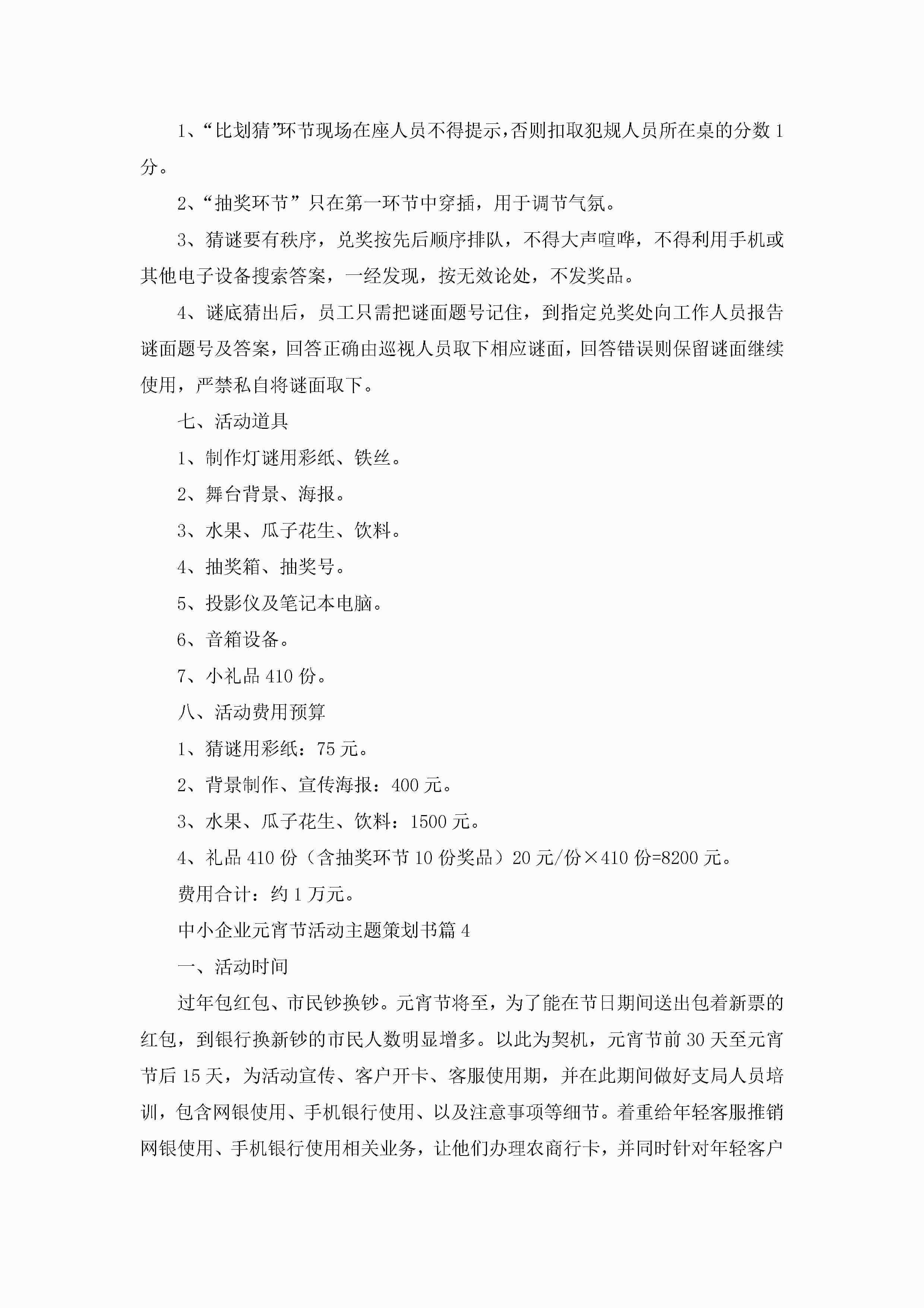 2023中小企业元宵节活动主题策划书(7篇)jugei3月23日 01:54发布关注298 2023中小企业元宵节活动主题策划书(7篇)此内容为付费资源,请付费后查看¥10.9 单篇文档限时特惠¥15个人会员开通企业会员开通立即下载无需登陆!可直接快捷下载单个模板付费资源© 版权声明THE ENDWord模板# 实用文档# 策划书# 工作文档# 活动策划 如有问题,可点击最底部“联系我们”联系客服 分享QQ空间微博QQ好友海报分享复制链接收藏