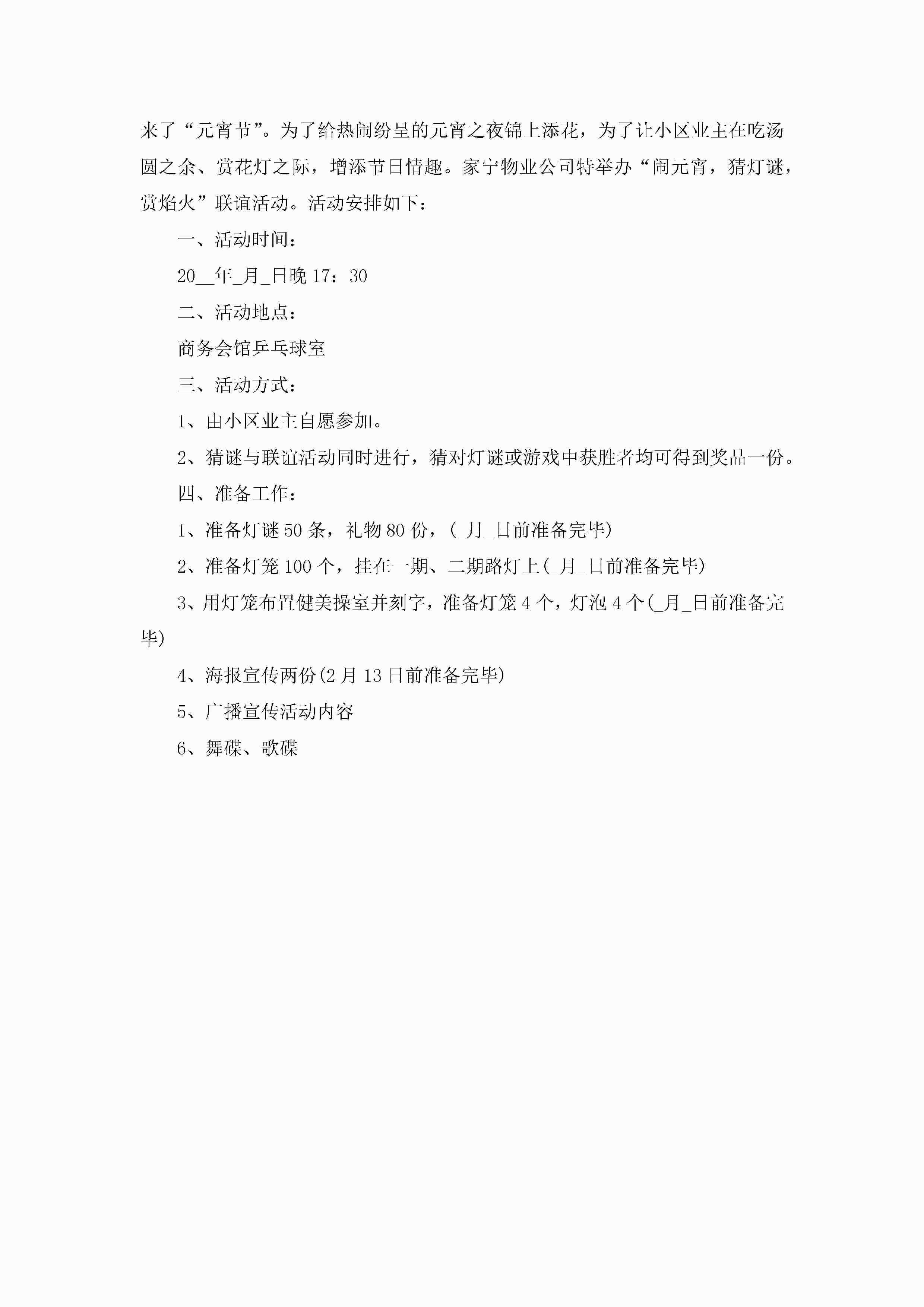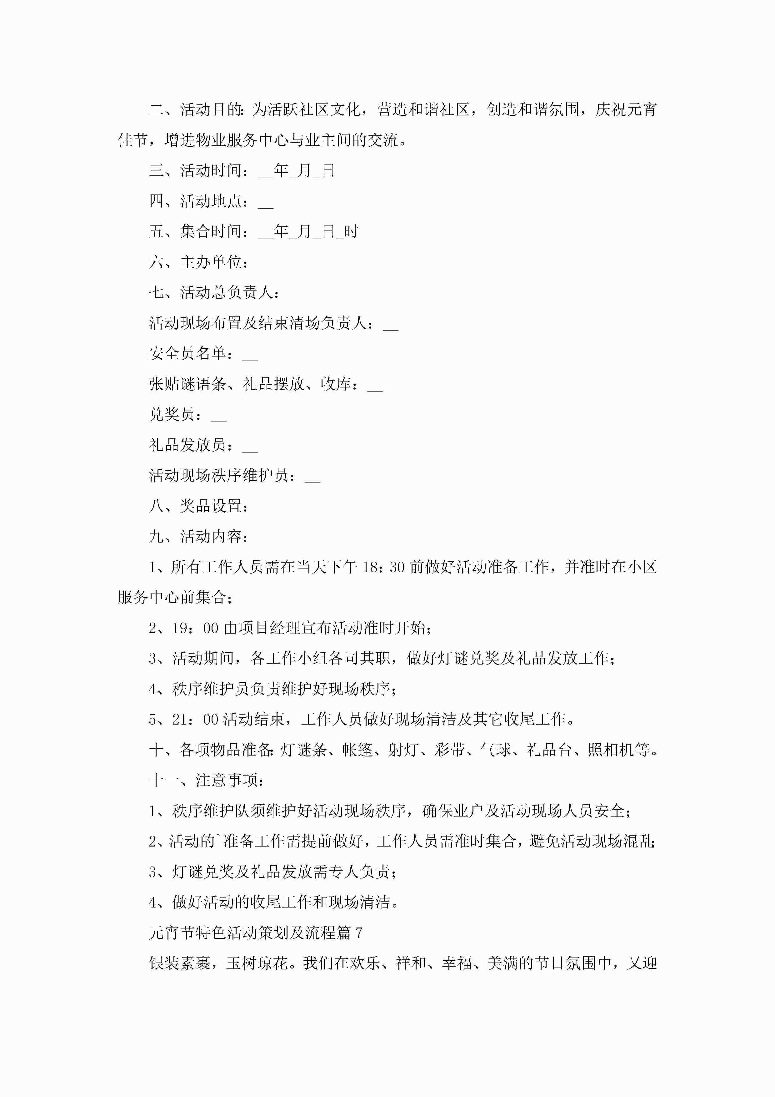 2023元宵节特色活动策划及流程(精选7篇)jugei3月23日 01:54发布关注222 2023元宵节特色活动策划及流程(精选7篇)此内容为付费资源,请付费后查看¥10.9 单篇文档限时特惠¥15个人会员开通企业会员开通立即下载无需登陆!可直接快捷下载单个模板付费资源© 版权声明THE ENDWord模板# 实用文档# 策划书# 工作文档# 活动策划 如有问题,可点击最底部“联系我们”联系客服 分享QQ空间微博QQ好友海报分享复制链接收藏