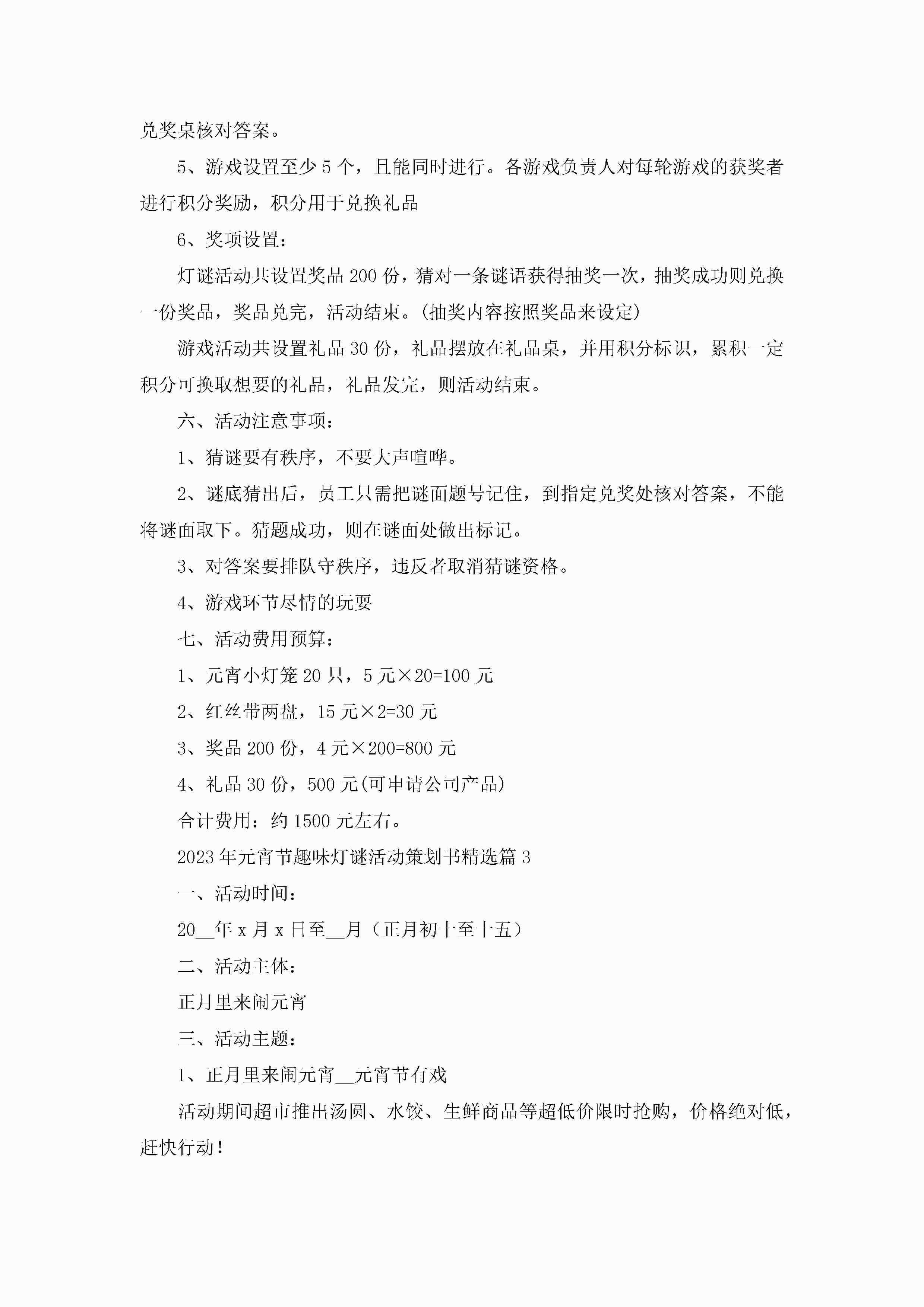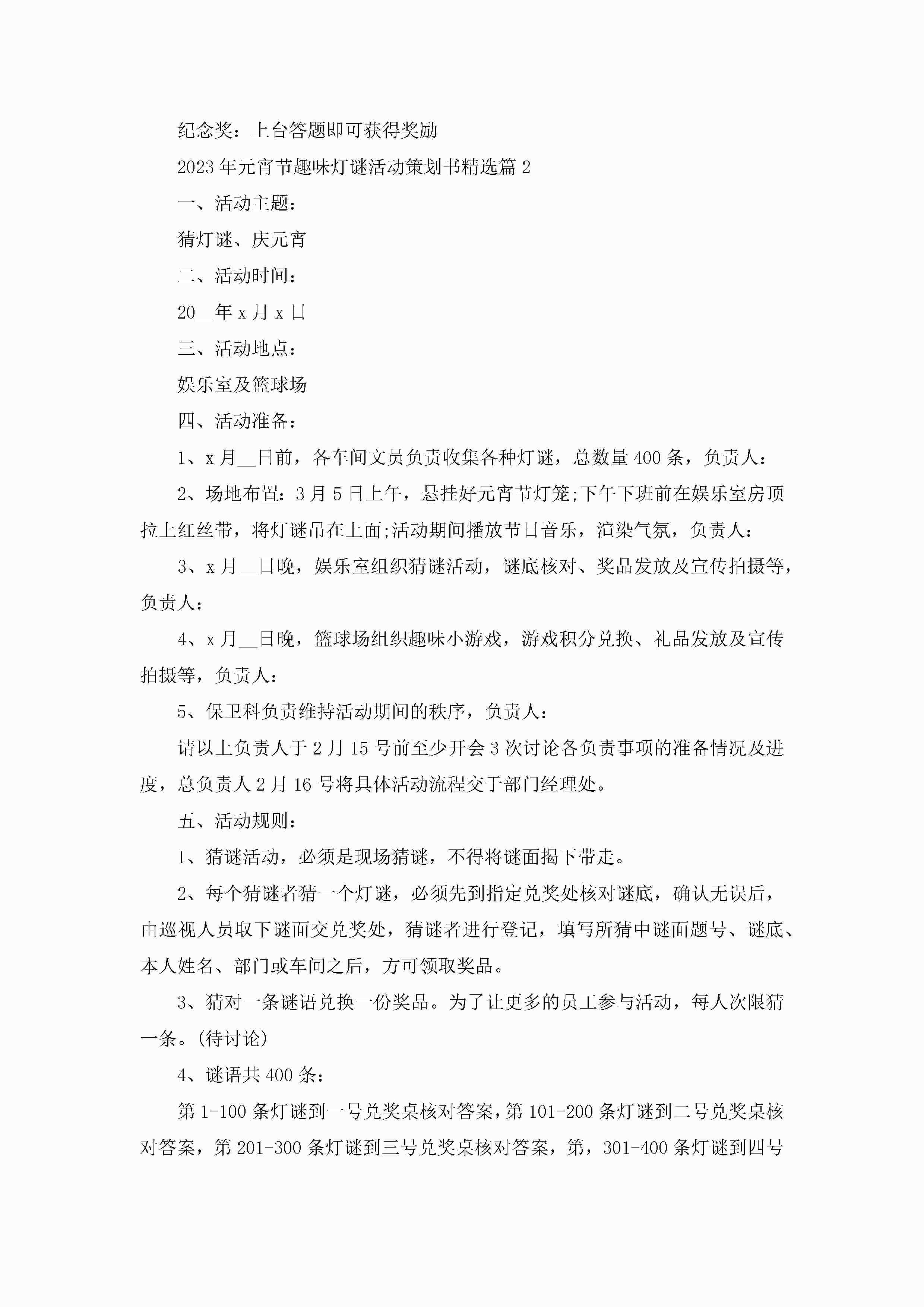 2023年元宵节趣味灯谜活动策划书(通用7篇)jugei3月23日 01:54发布关注215 2023年元宵节趣味灯谜活动策划书(通用7篇)此内容为付费资源,请付费后查看¥10.9 单篇文档限时特惠¥15个人会员开通企业会员开通立即下载无需登陆!可直接快捷下载单个模板付费资源© 版权声明THE ENDWord模板# 实用文档# 策划书# 工作文档# 活动策划 如有问题,可点击最底部“联系我们”联系客服 分享QQ空间微博QQ好友海报分享复制链接收藏