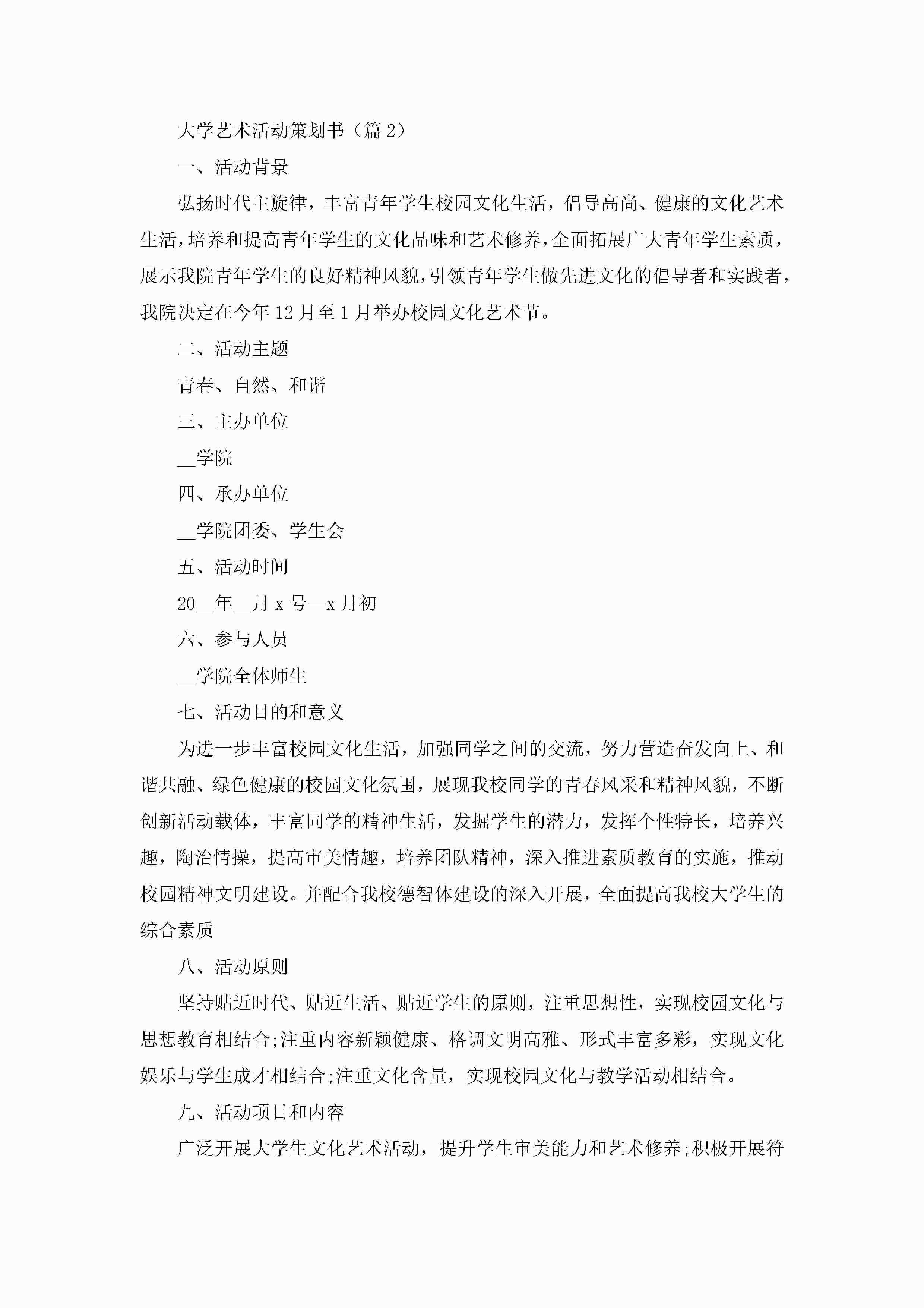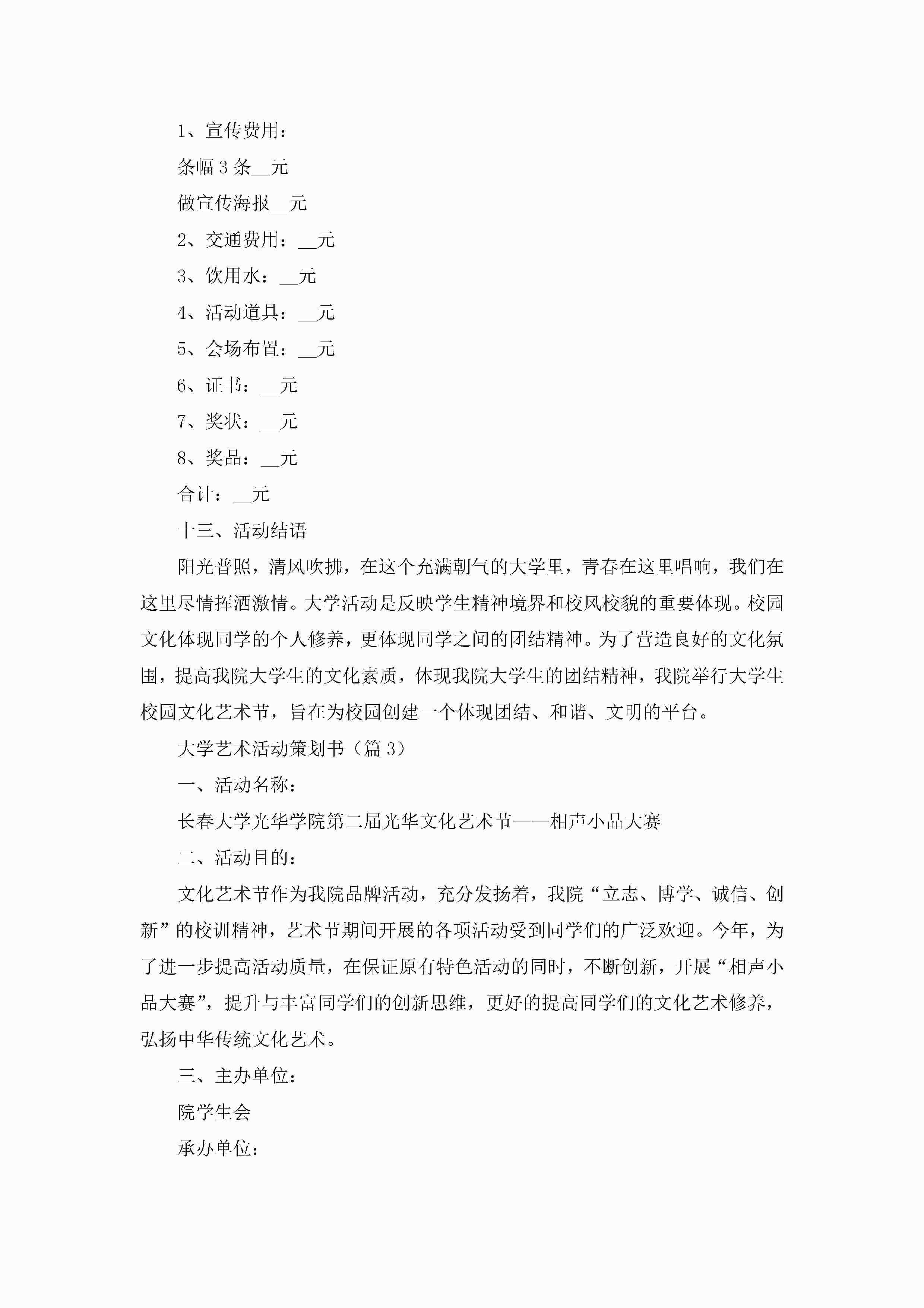 大学艺术活动策划书5篇jugei3月23日 01:54发布关注208 大学艺术活动策划书5篇此内容为付费资源,请付费后查看¥10.9 单篇文档限时特惠¥15个人会员开通企业会员开通立即下载无需登陆!可直接快捷下载单个模板付费资源© 版权声明THE ENDWord模板# 实用文档# 策划书# 工作文档# 活动策划 如有问题,可点击最底部“联系我们”联系客服 分享QQ空间微博QQ好友海报分享复制链接收藏