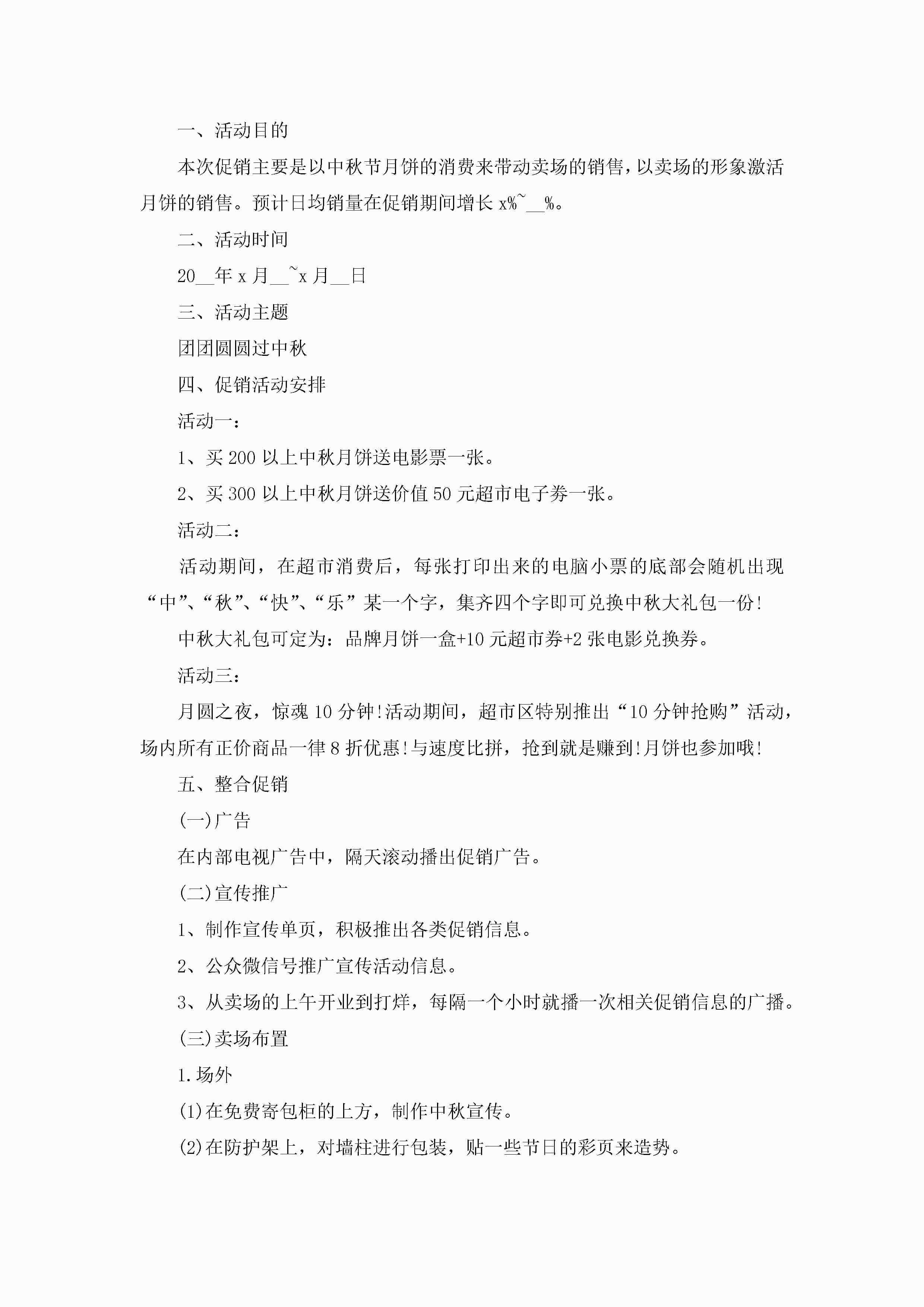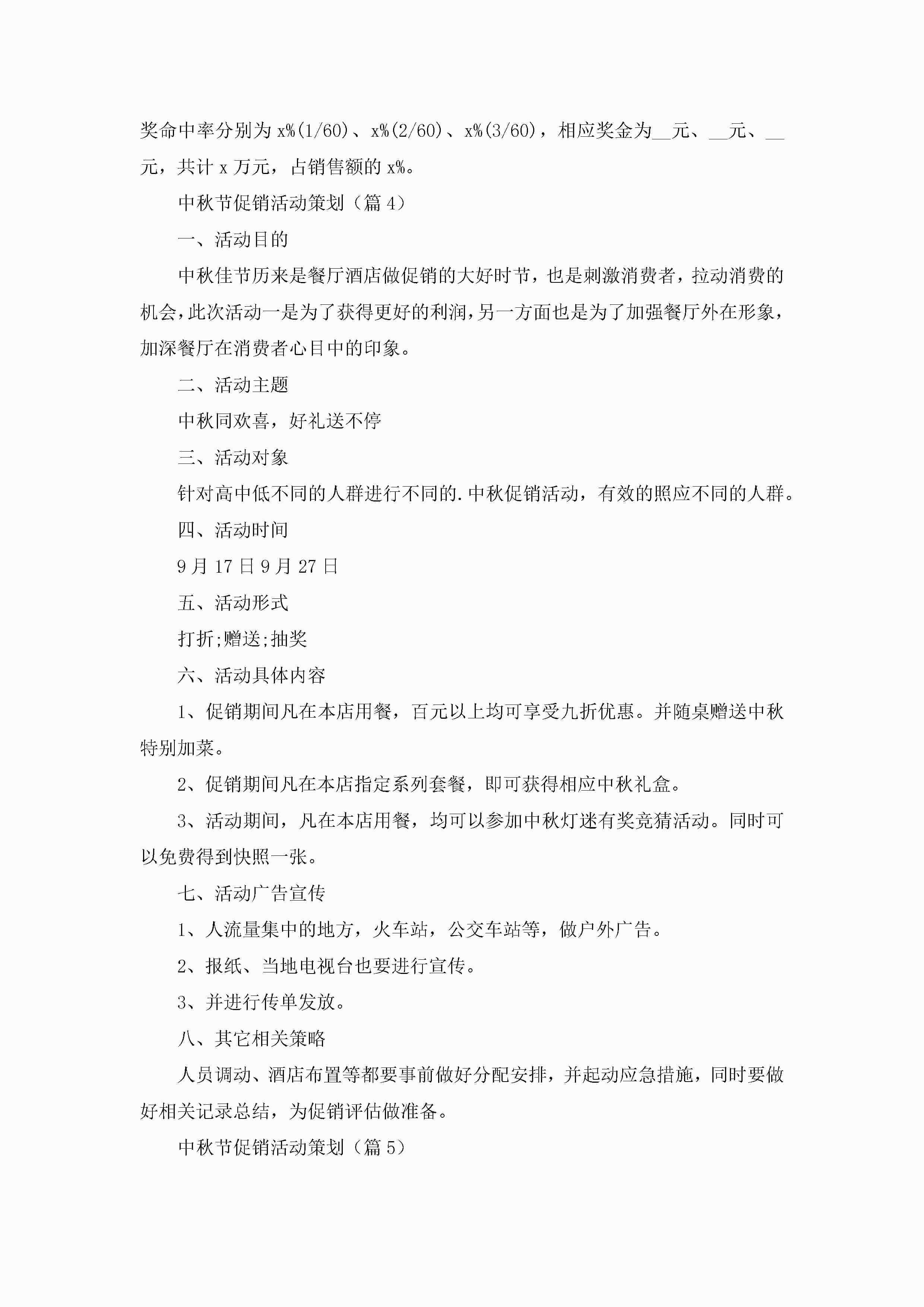 中秋节促销活动策划5篇jugei3月23日 01:54发布关注273 中秋节促销活动策划5篇此内容为付费资源,请付费后查看¥10.9 单篇文档限时特惠¥15个人会员开通企业会员开通立即下载无需登陆!可直接快捷下载单个模板付费资源© 版权声明THE ENDWord模板# 实用文档# 策划书# 工作文档# 活动策划 如有问题,可点击最底部“联系我们”联系客服 分享QQ空间微博QQ好友海报分享复制链接收藏