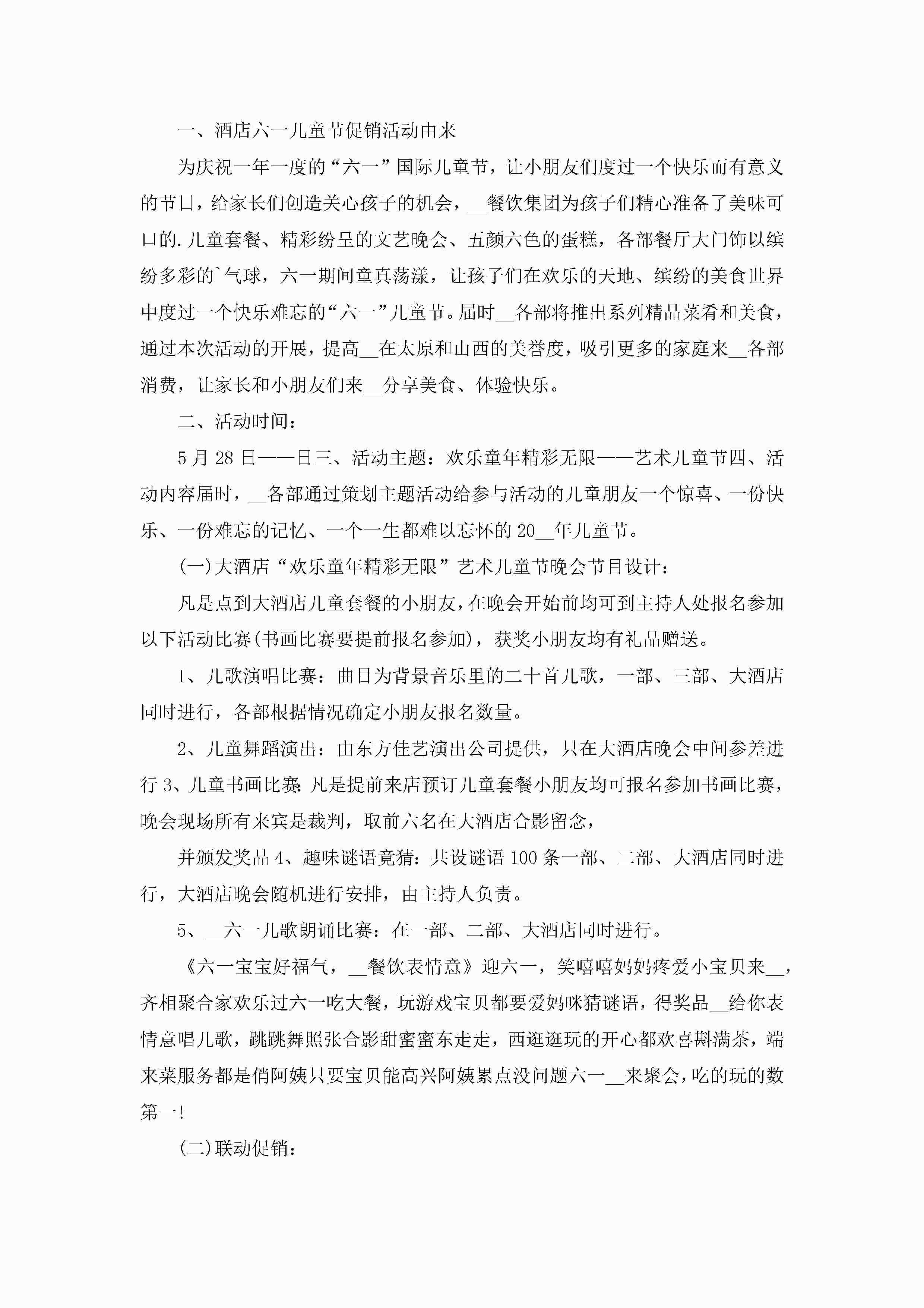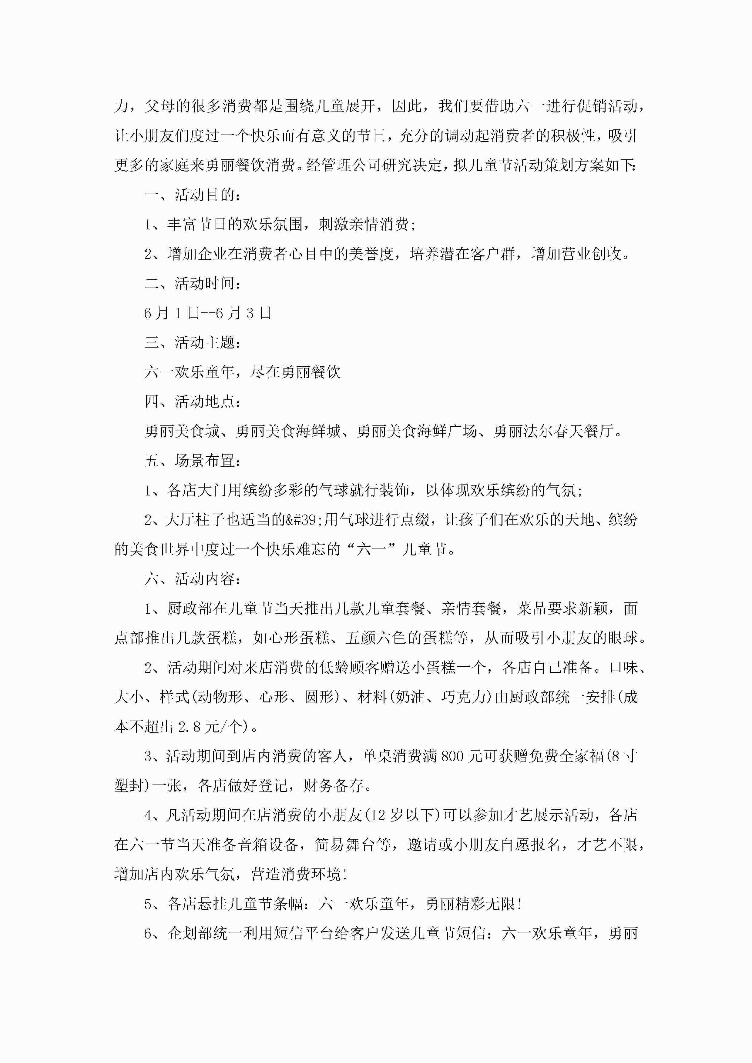 餐饮儿童节活动策划方案5篇jugei3月23日 01:54发布关注275 餐饮儿童节活动策划方案5篇此内容为付费资源,请付费后查看¥10.9 单篇文档限时特惠¥15个人会员开通企业会员开通立即下载无需登陆!可直接快捷下载单个模板付费资源© 版权声明THE ENDWord模板# 实用文档# 策划书# 活动策划# 餐饮儿童节活动策划方案 如有问题,可点击最底部“联系我们”联系客服 分享QQ空间微博QQ好友海报分享复制链接收藏